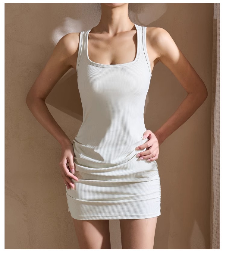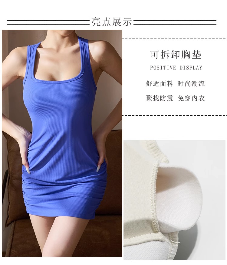 跃牌【禅语梵心】运动背心连衣裙缩褶显瘦带胸垫网球裙跑步健身舞蹈瑜伽服LTK5166