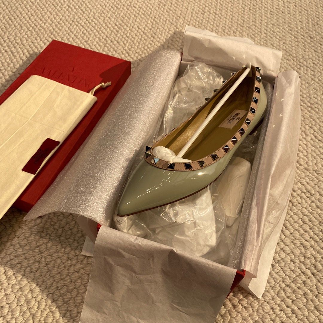 599💰代购级【Valentino】— 华伦天奴爆款铆钉平底鞋,样子迷人优雅,这款缺可以满足对舒适度的需求,气场稳赢高跟鞋,它能百搭的驾驭各种场合,整体看上去,简约而不简单的风格的,十分温婉甜美~