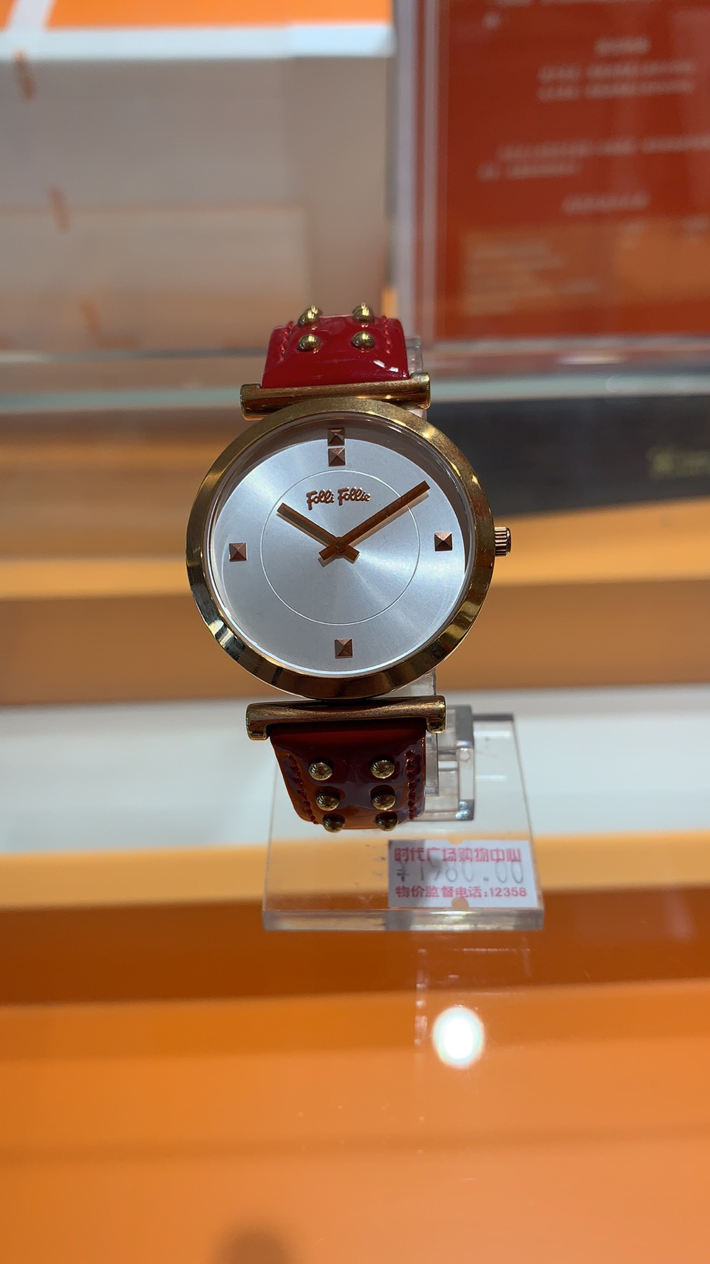 芙丽芙丽/Folli Follie 亮面双排铆钉红色表