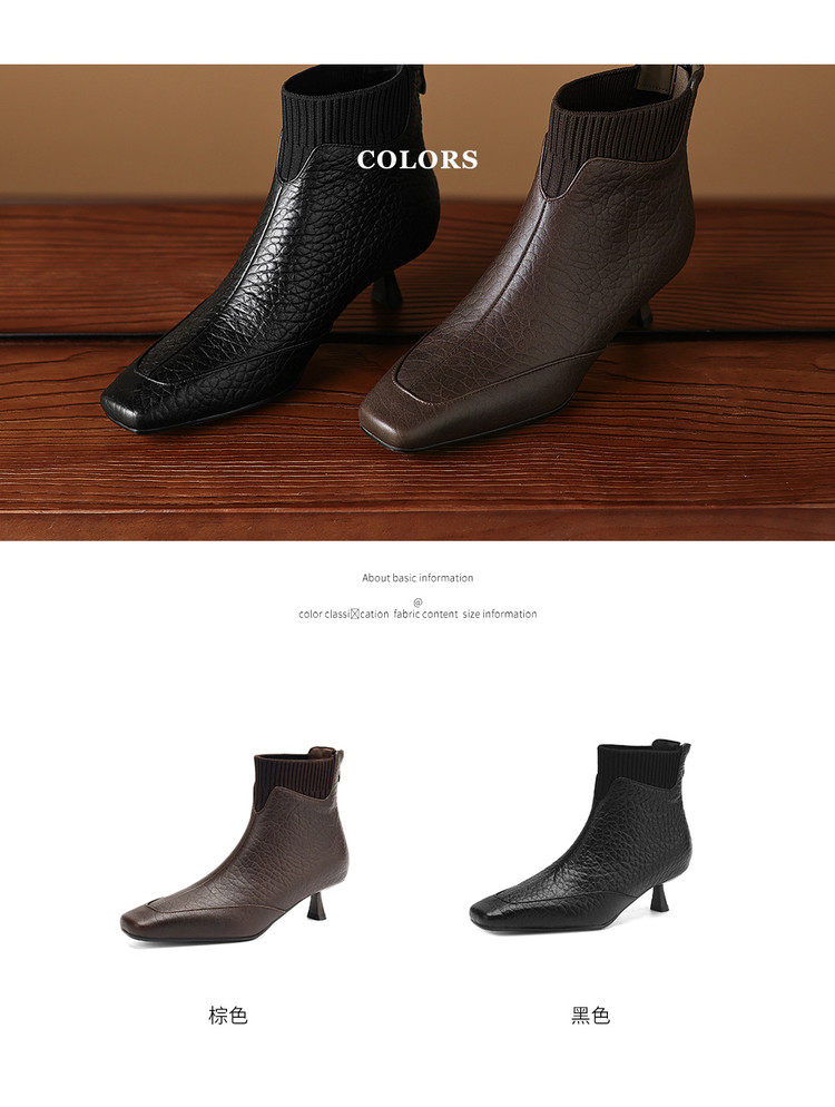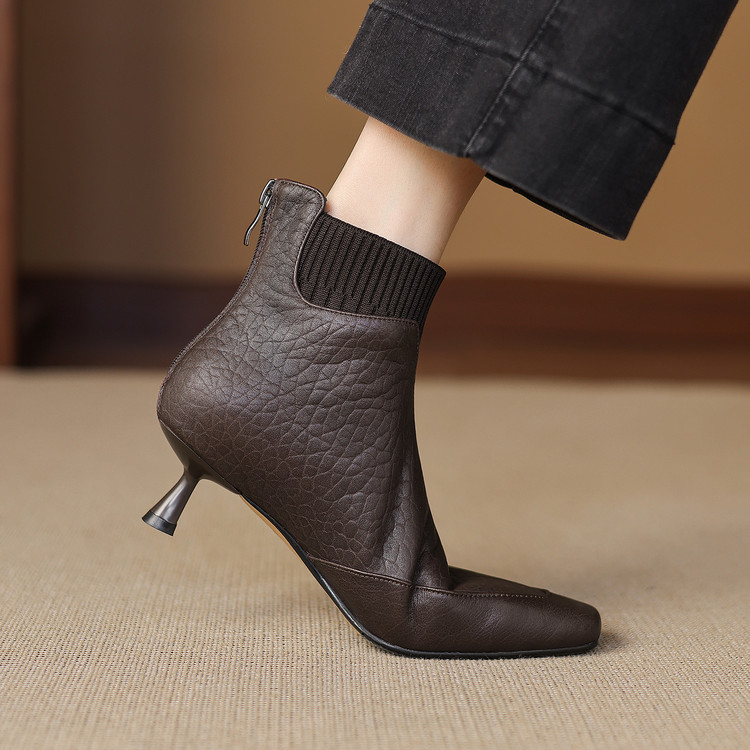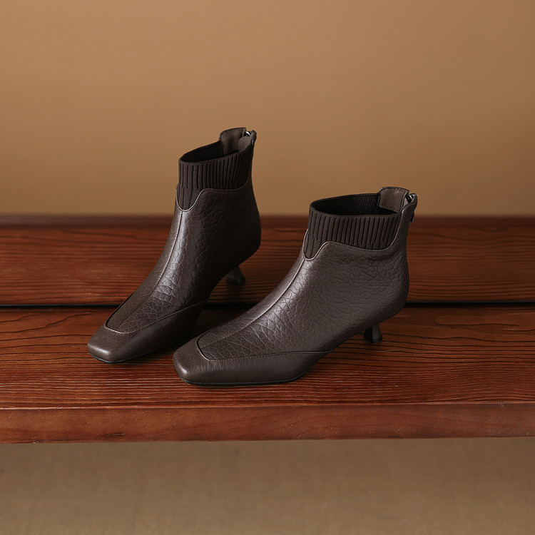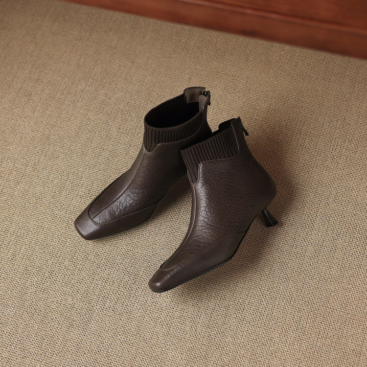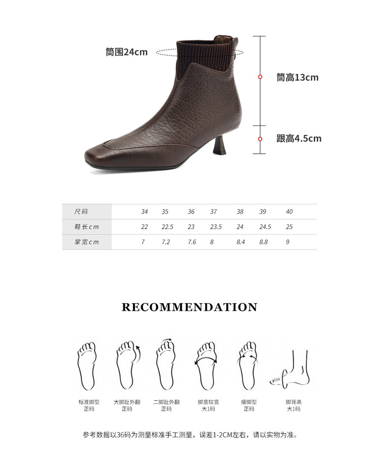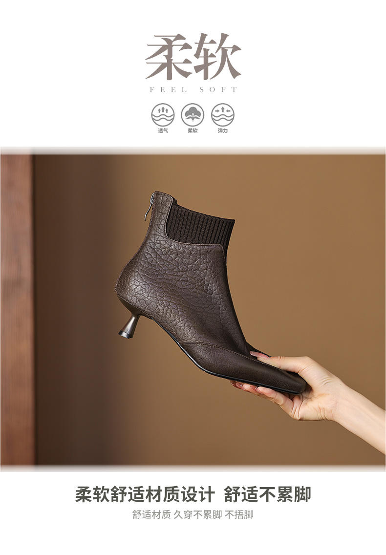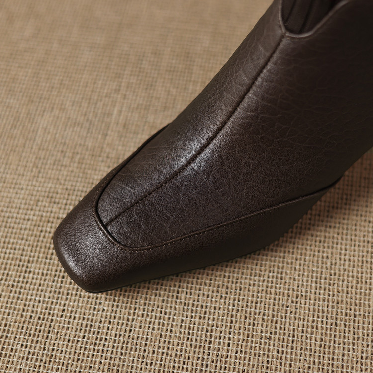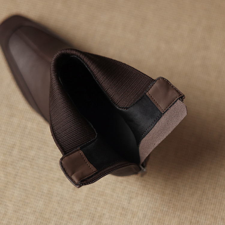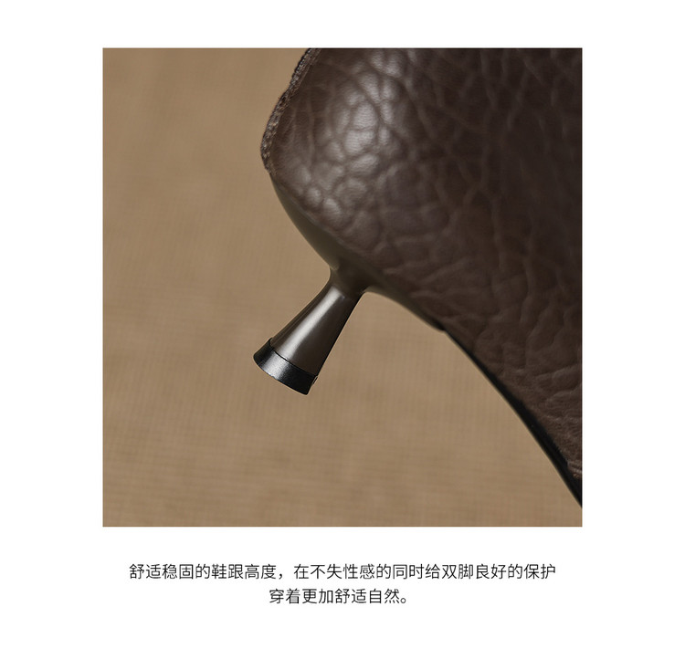 【预售5天】4.5cm牛皮尖头短靴女秋冬棕色切尔西靴子新款细跟弹力瘦瘦靴DMJFG&9558F