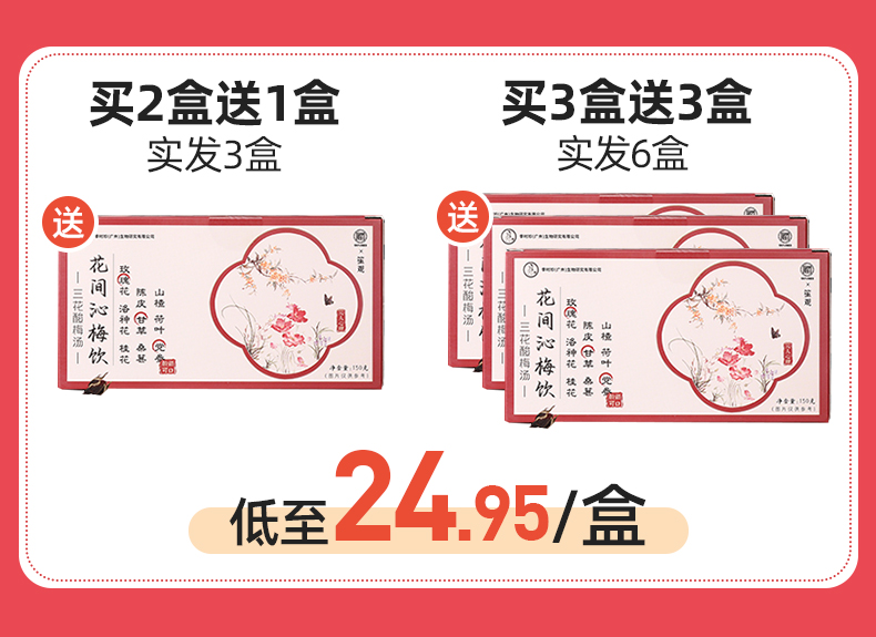 【买2送1 买3送3】李时珍李氏纲目 花间沁梅饮(三花酸梅汤)150g/盒 消夏冰饮 沁人心脾