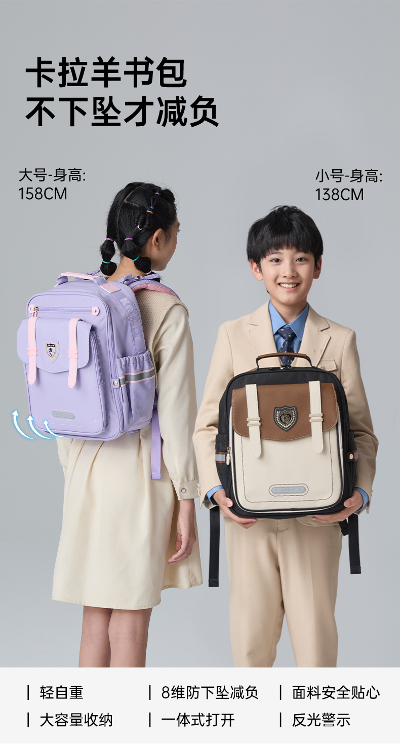 【老爸评测联名款】卡拉羊小学生1-6年级ProMax8维减负防下坠减负书包飞扬系列CX2269+2521