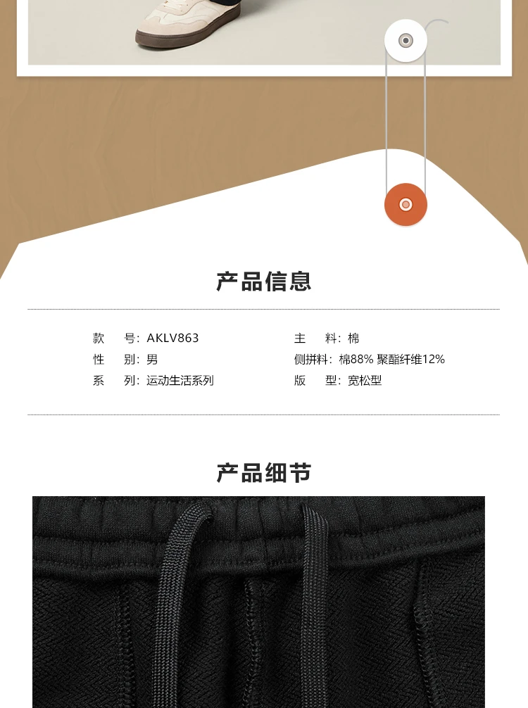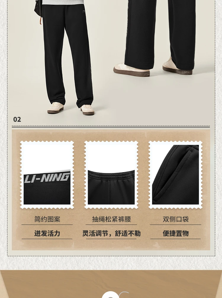 【肖战同款】李宁男女同款直筒宽松卫裤AKLV863