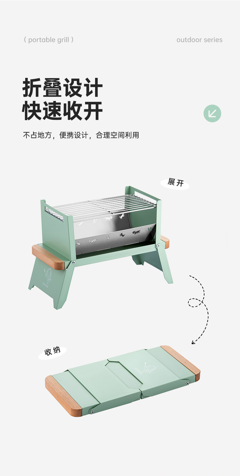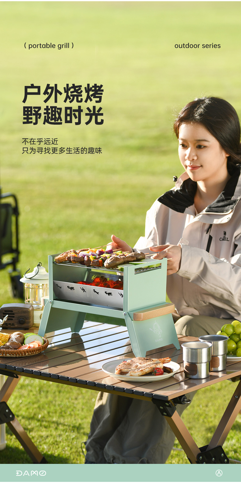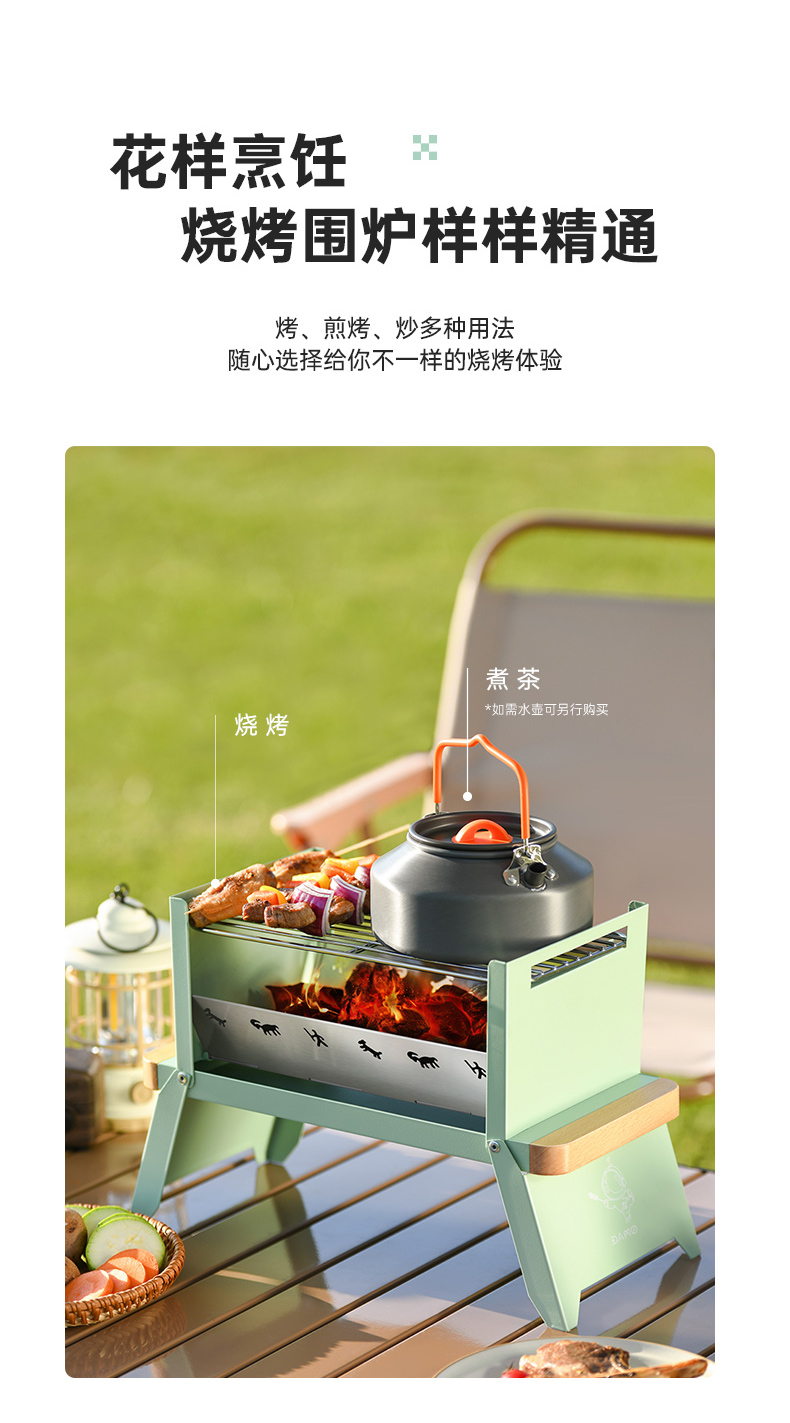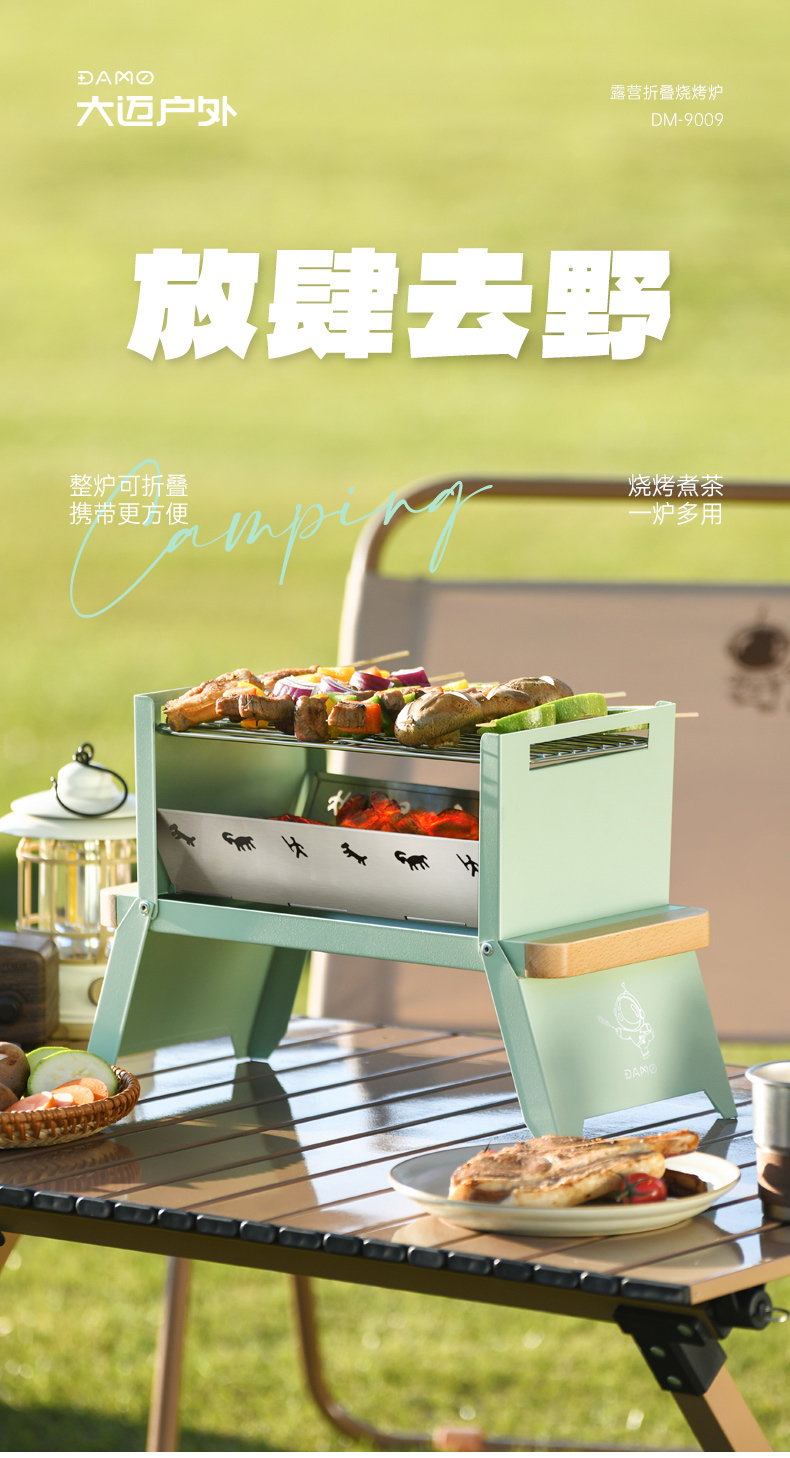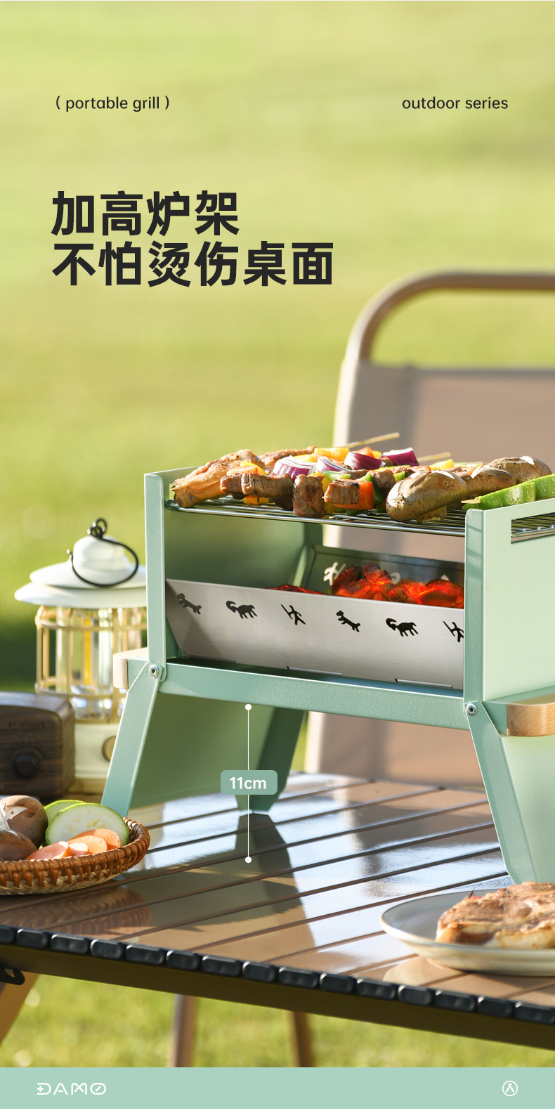 【烧烤煮茶 快速折叠 加高不烫桌面】大迈 便携可折叠露营烧烤炉-松石绿