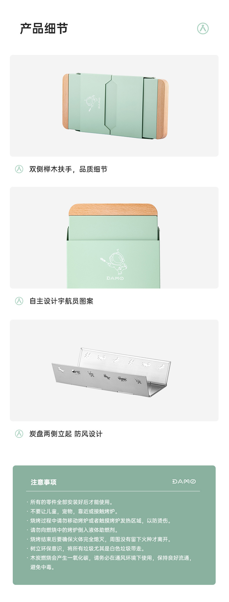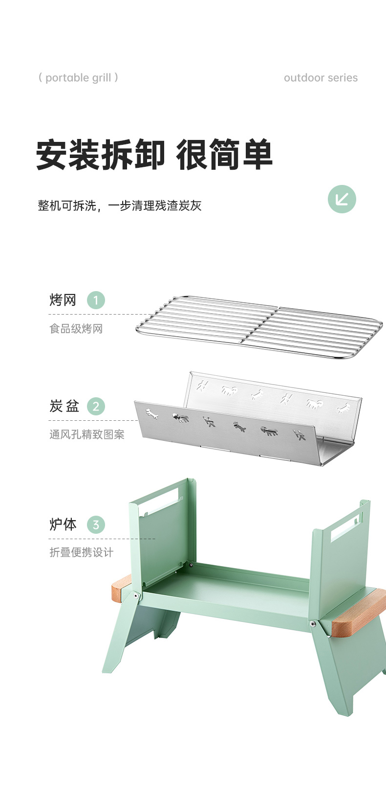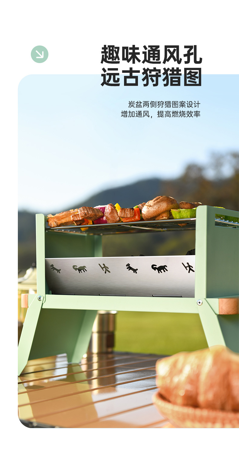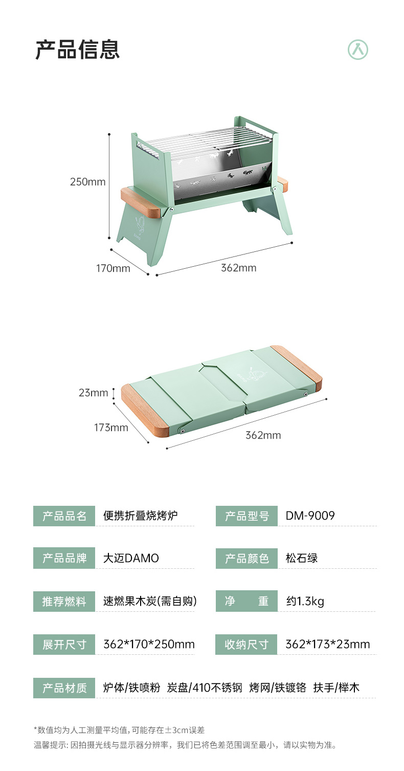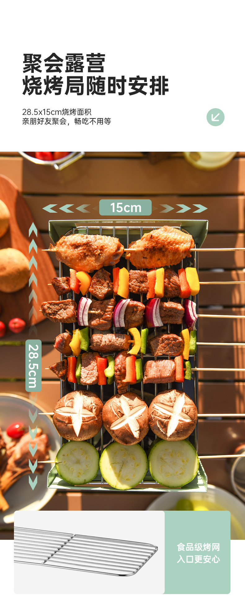 【烧烤煮茶 快速折叠 加高不烫桌面】大迈 便携可折叠露营烧烤炉-松石绿