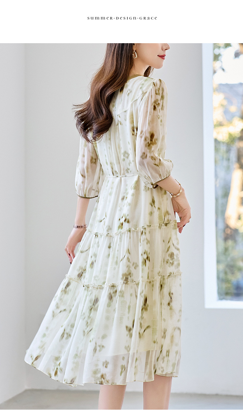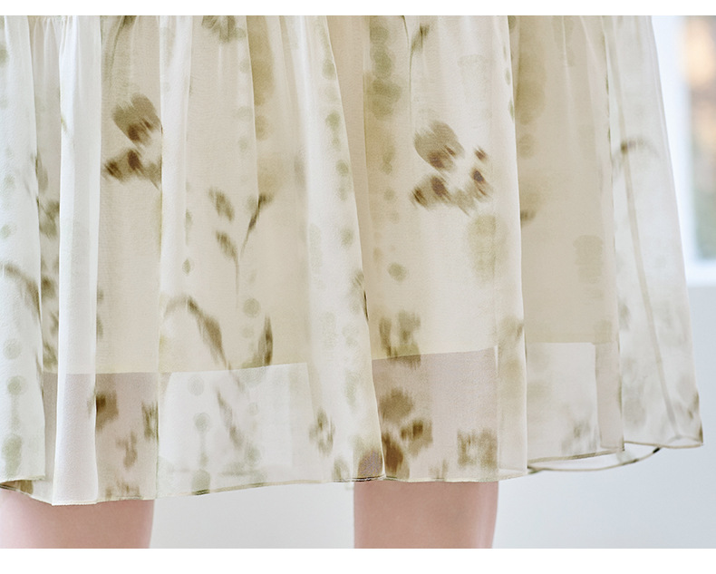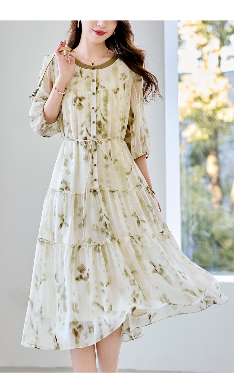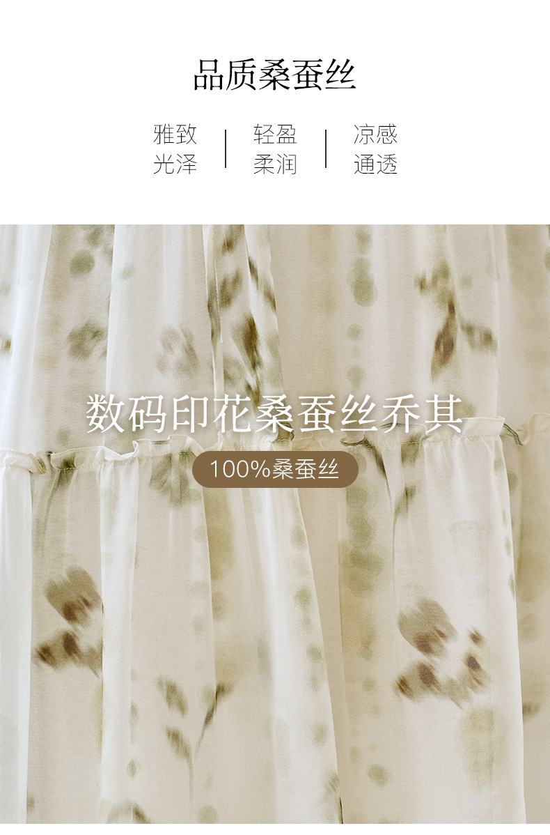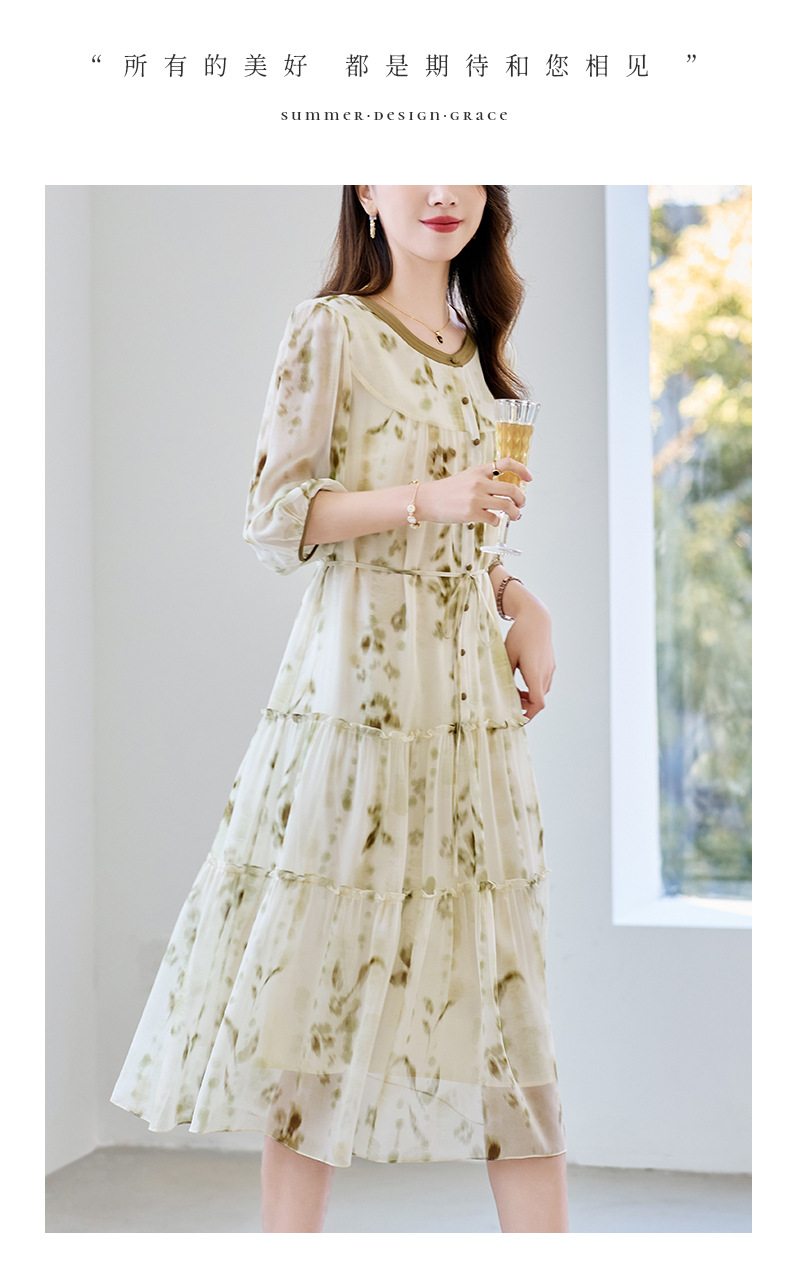 SM 82496900乔其真丝连衣裙时尚印花系带收腰桑蚕丝裙 商品图3