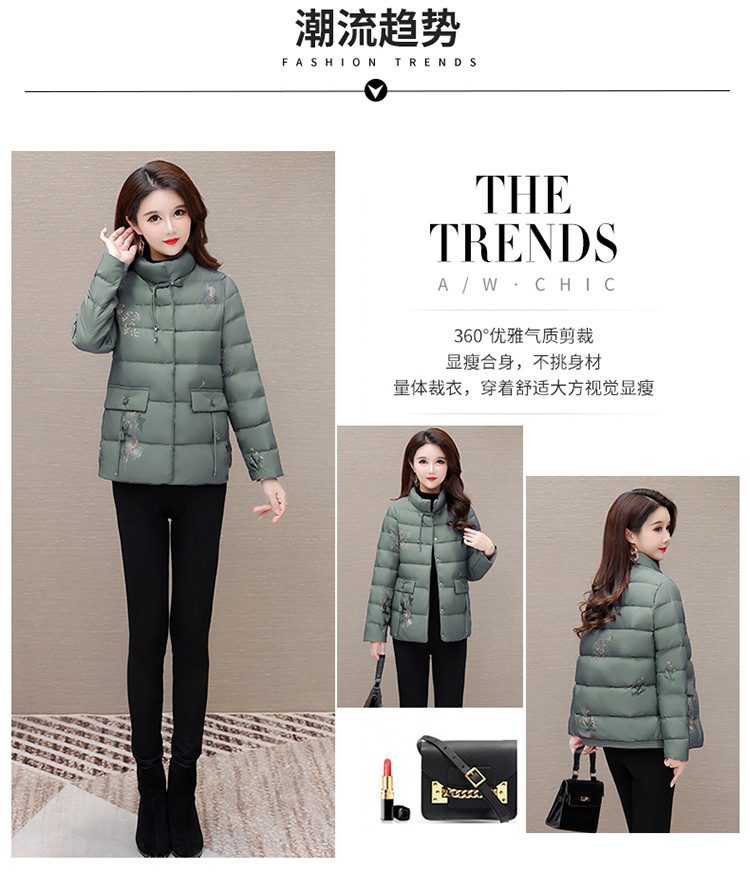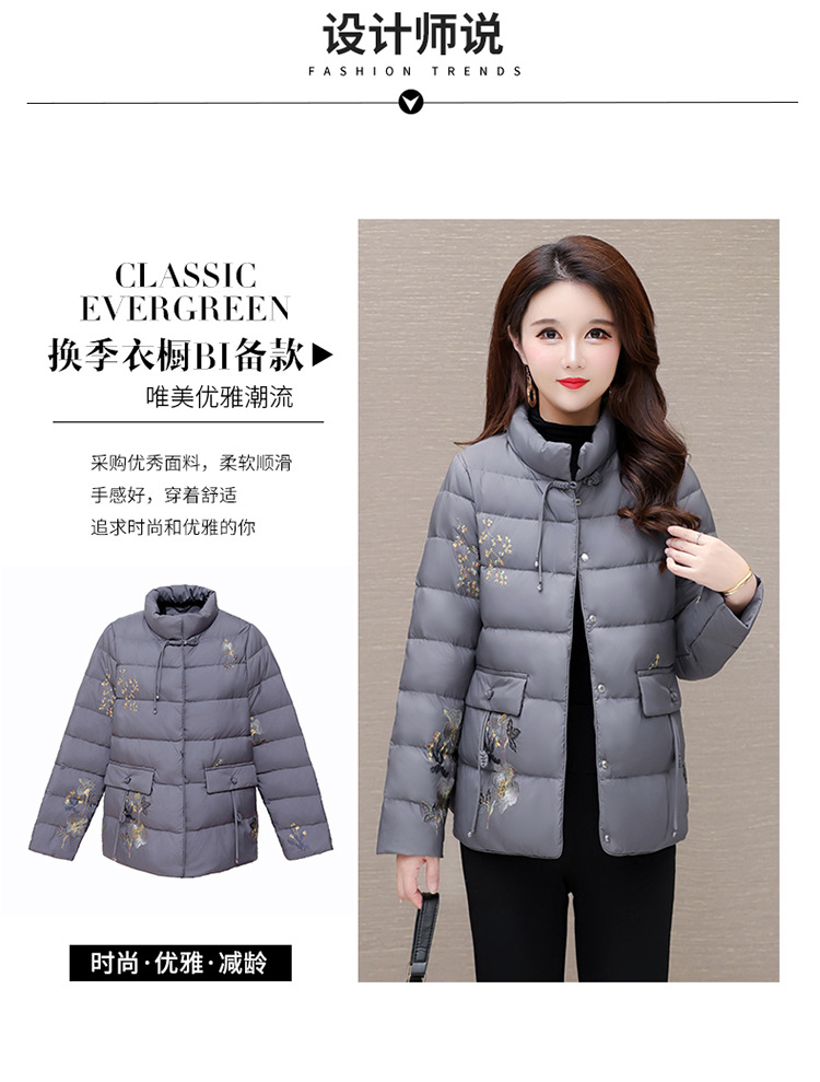 QYM 1215CX58国风刺绣羽绒服妈妈轻薄新中式保暖外套