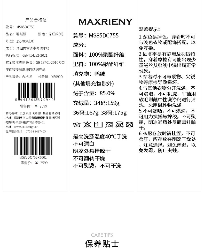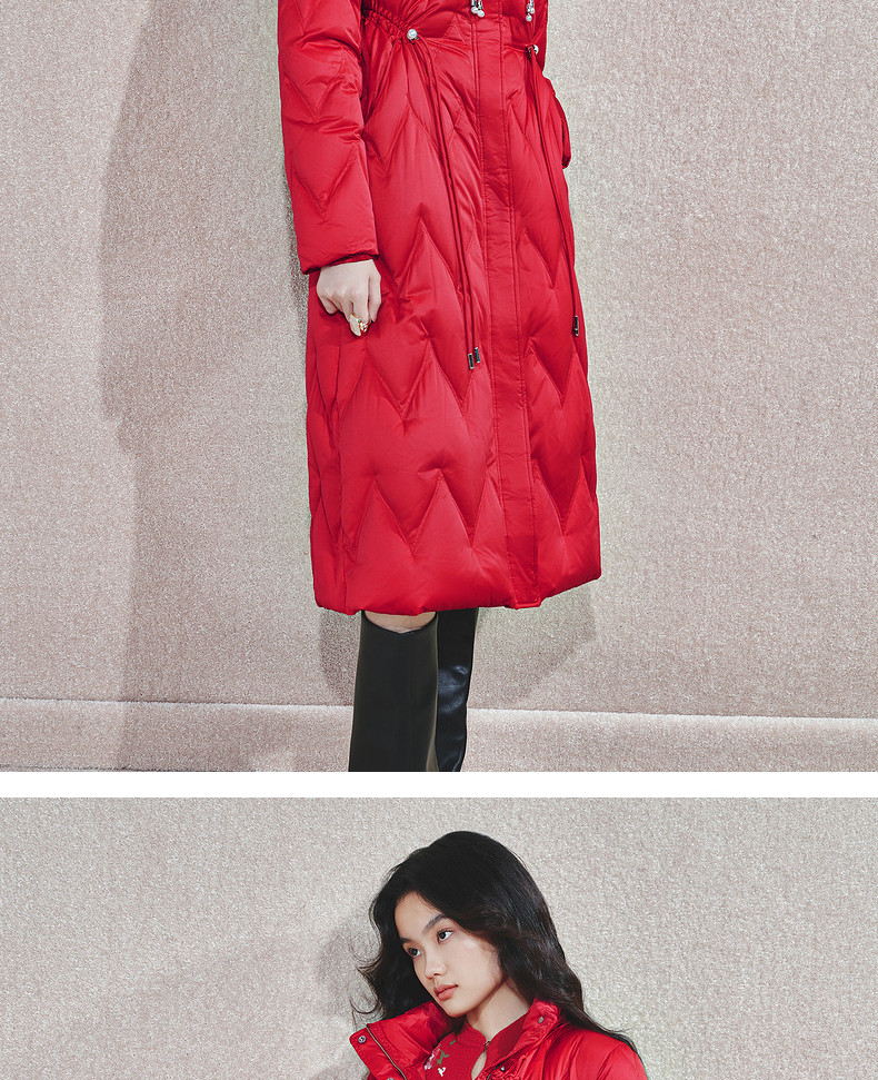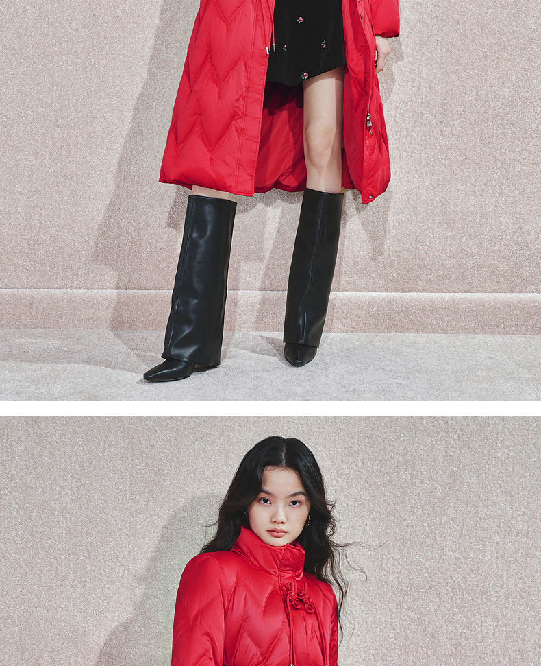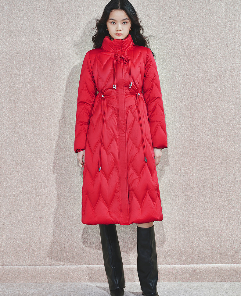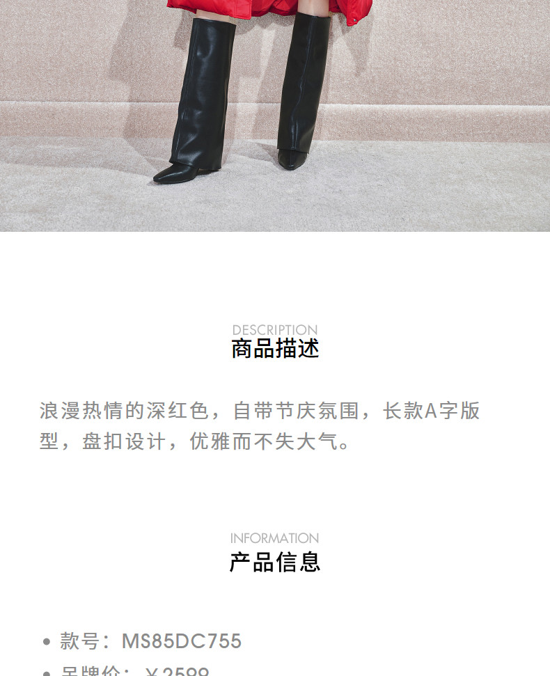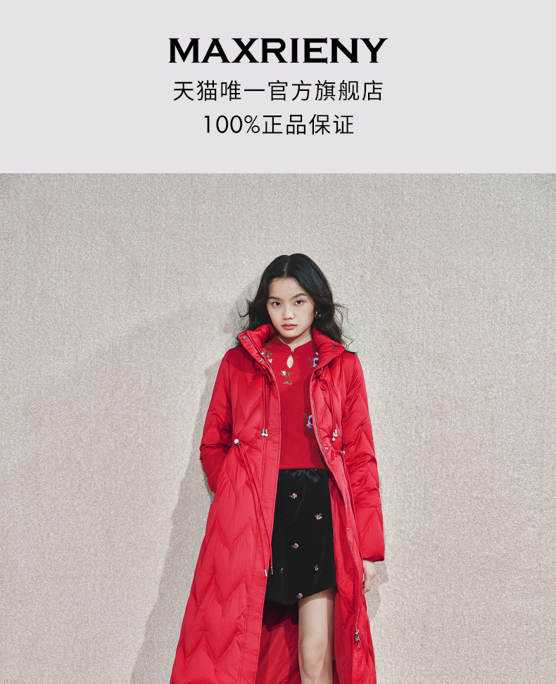 玛克门店发货:MAXRIENY中式盘扣红色羽绒服(货号:MS85DC755)