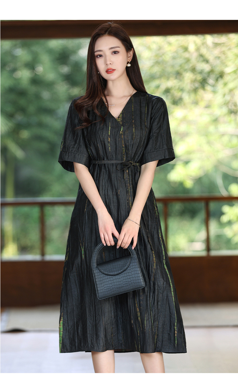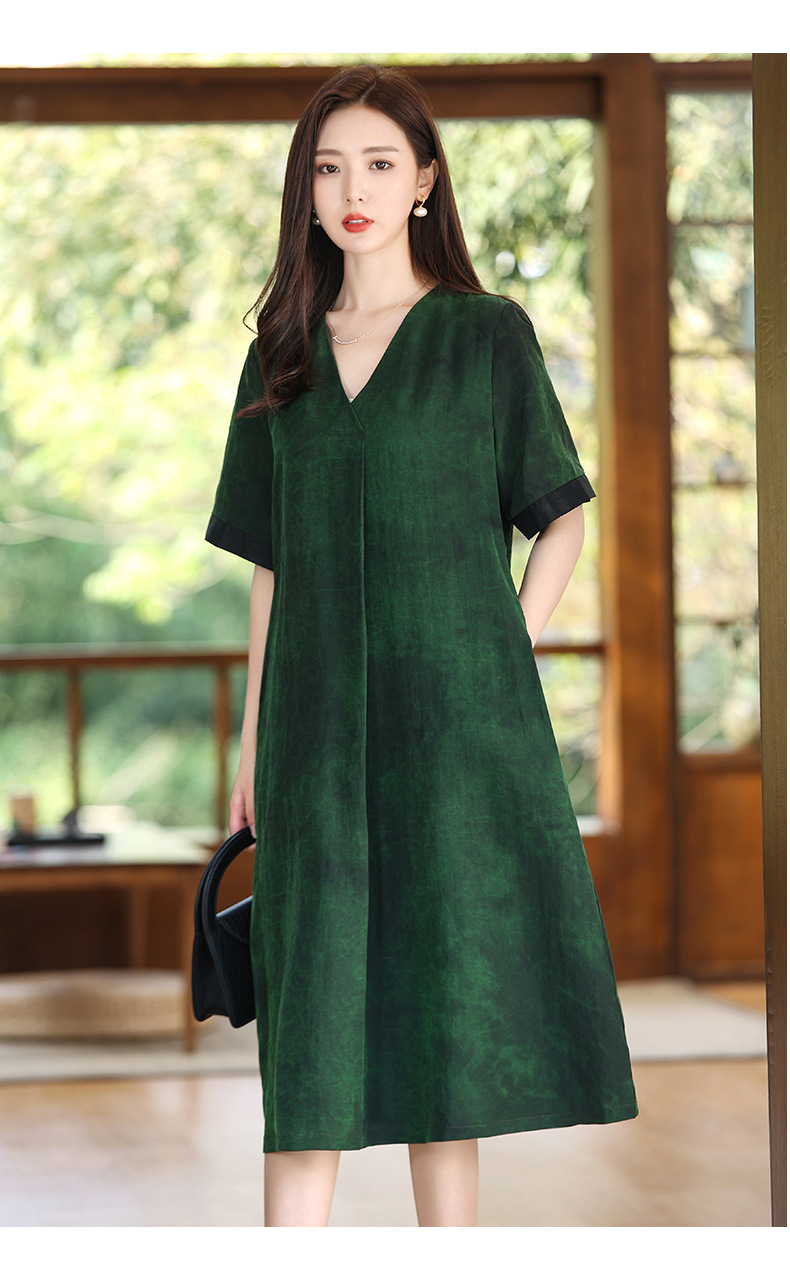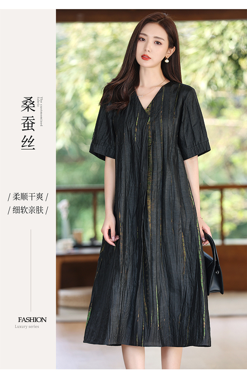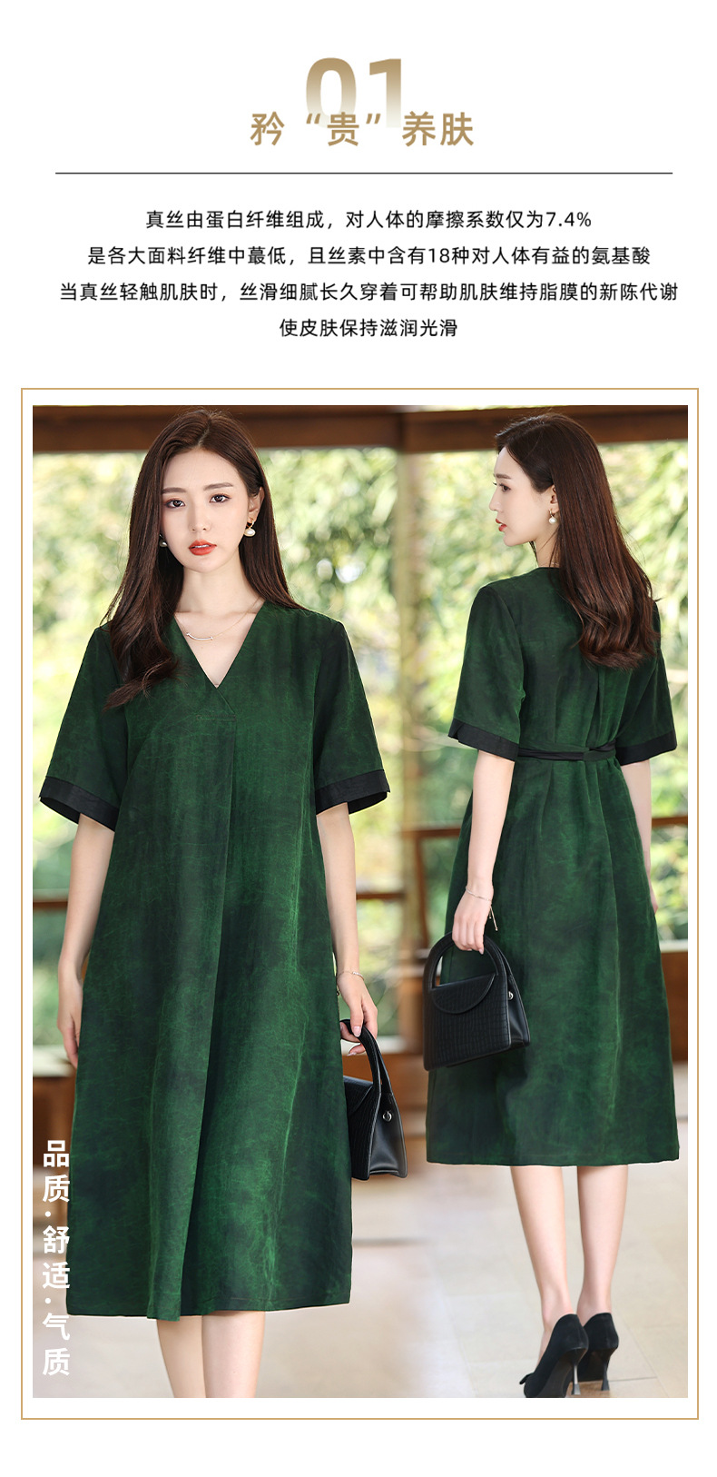 ASE-QX311 V领气质百搭时尚真丝连衣裙