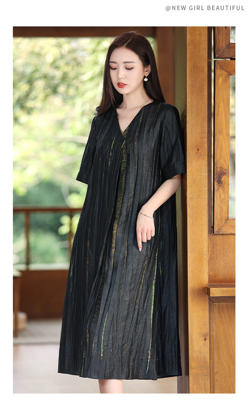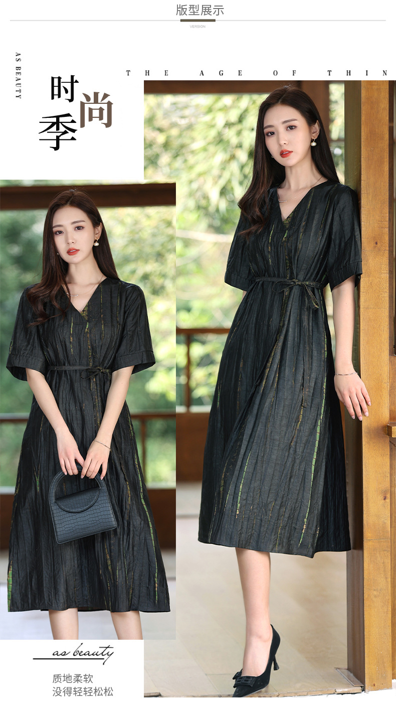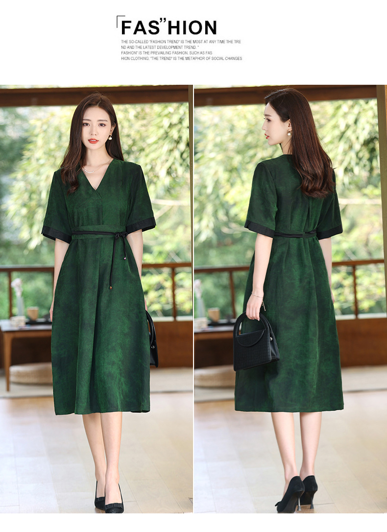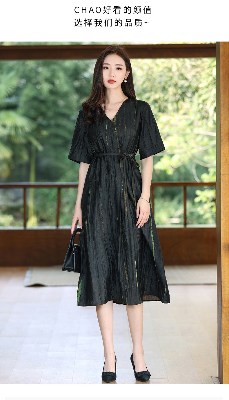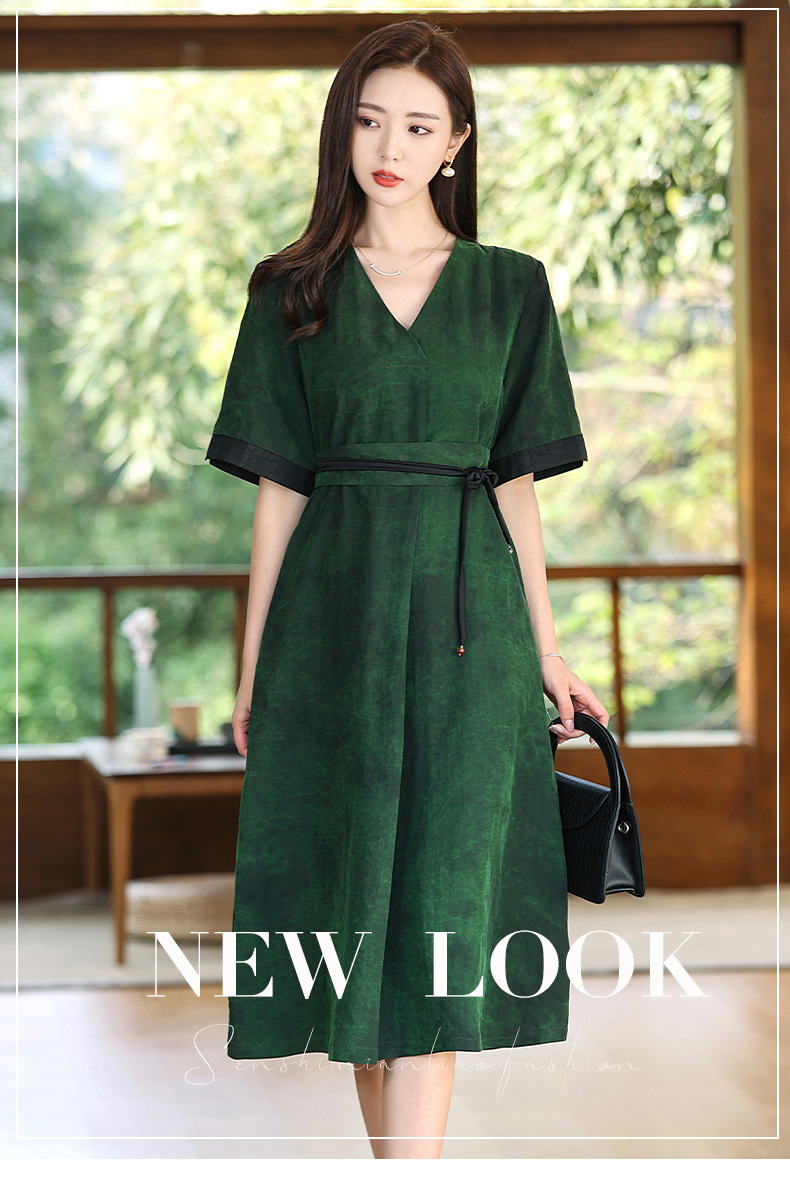 ASE-QX311 V领气质百搭时尚真丝连衣裙