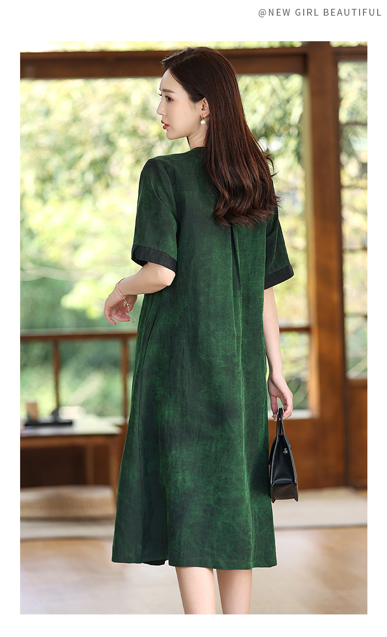 上海旗袍厂ASE-6635水墨气质真丝连衣裙