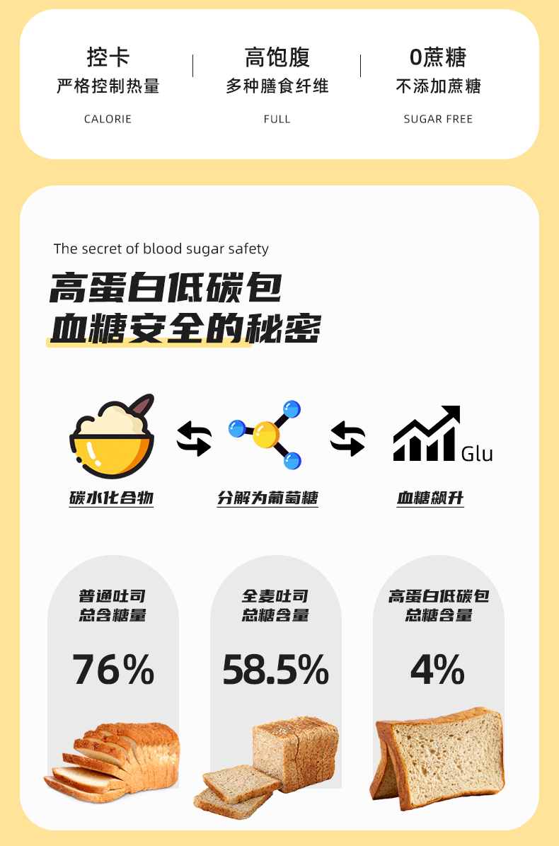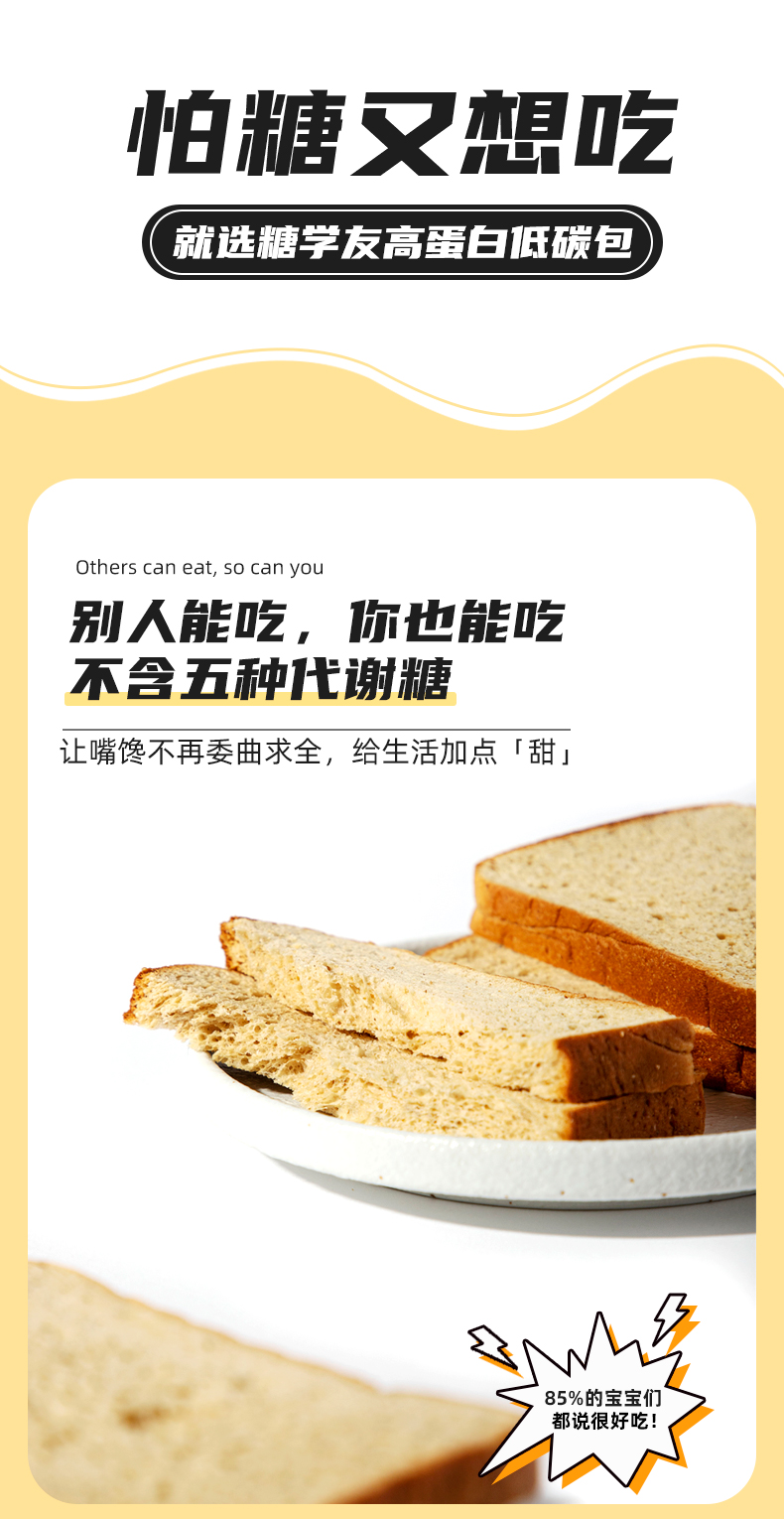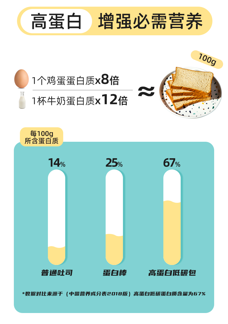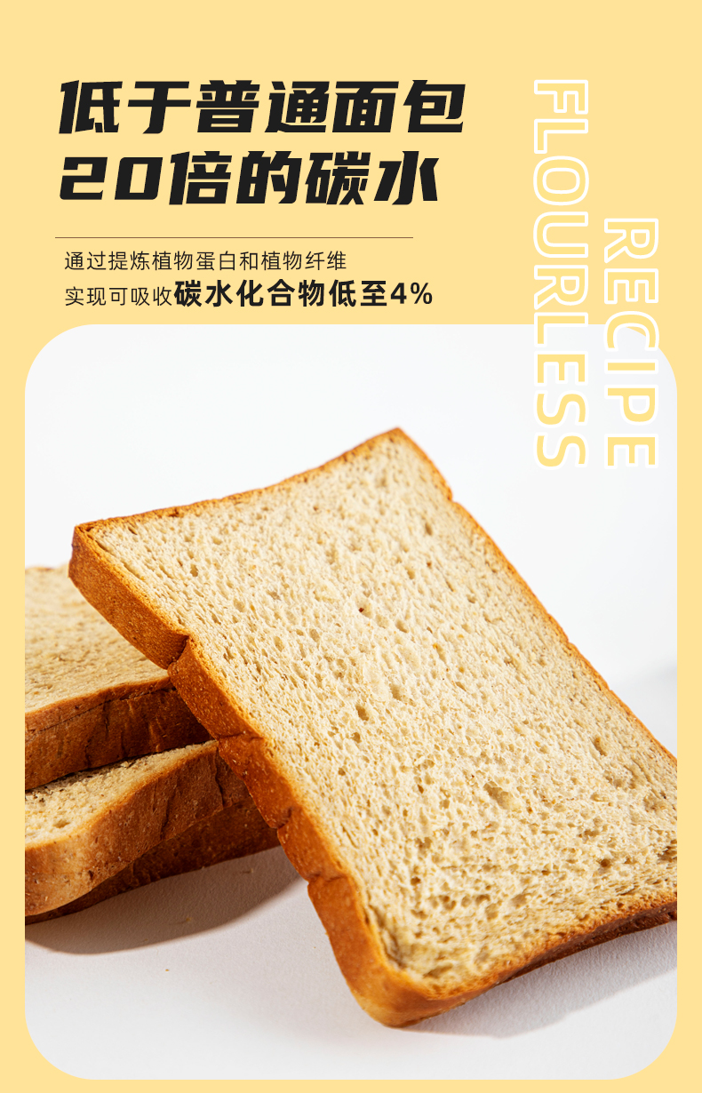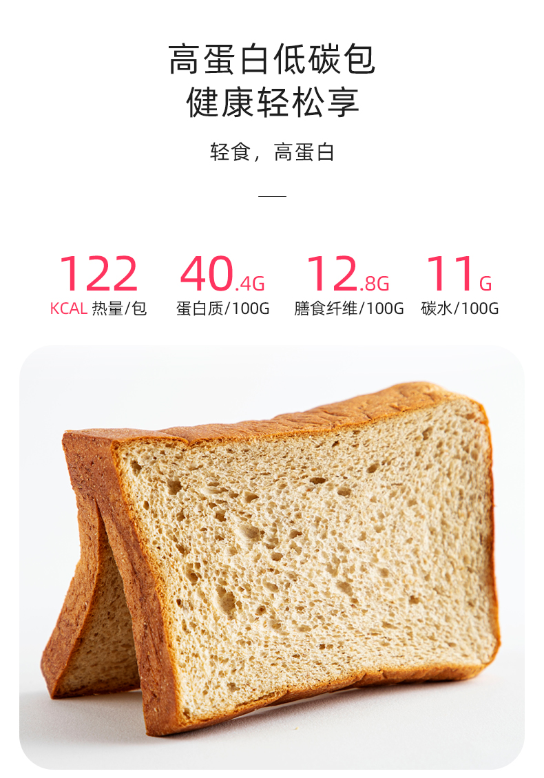 这款白面包吐司,可以用来作为低碳水的主食。不升糖,常温保存,小袋包装方便携带。