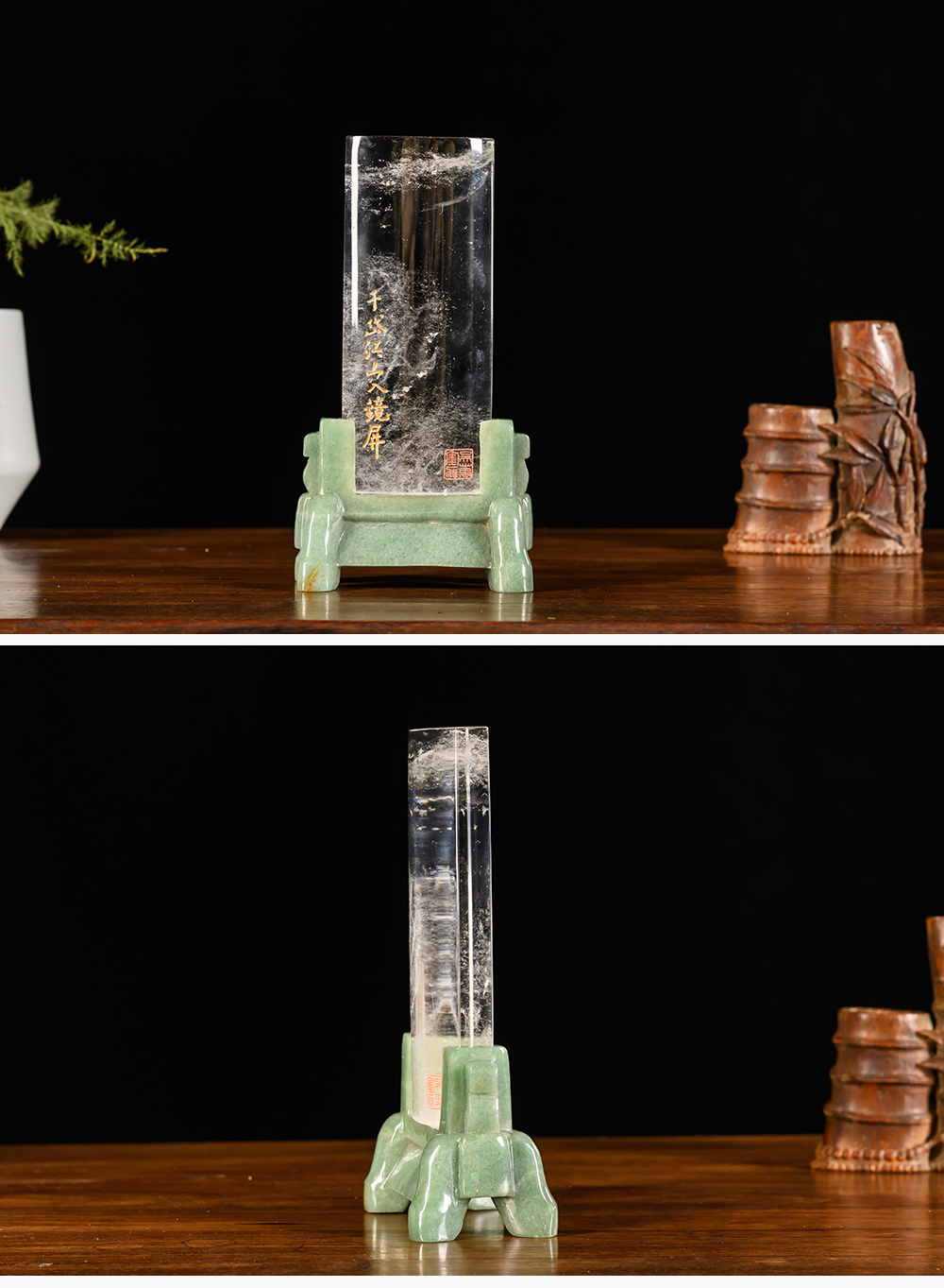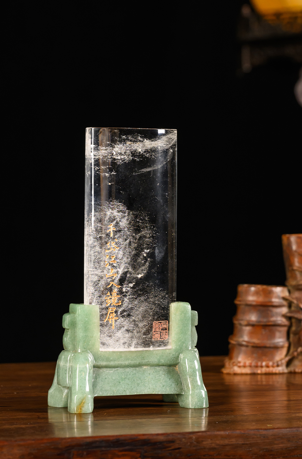 清 水晶诗文砚屏