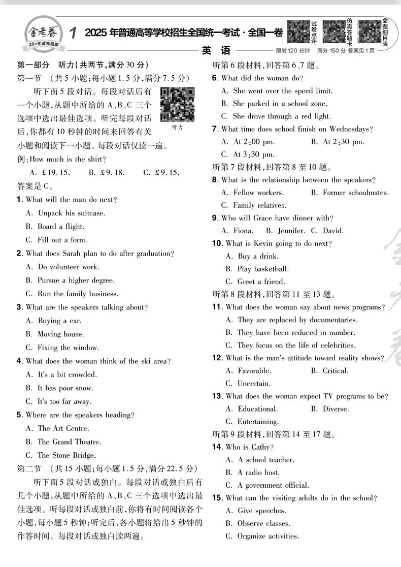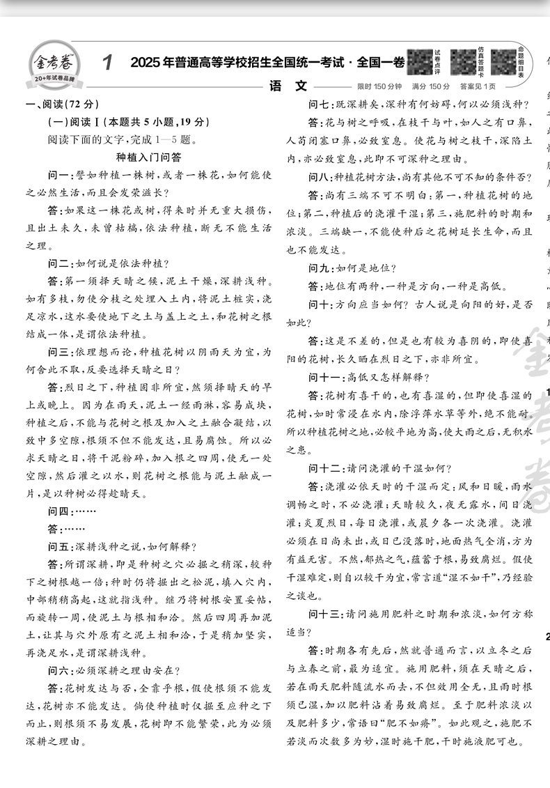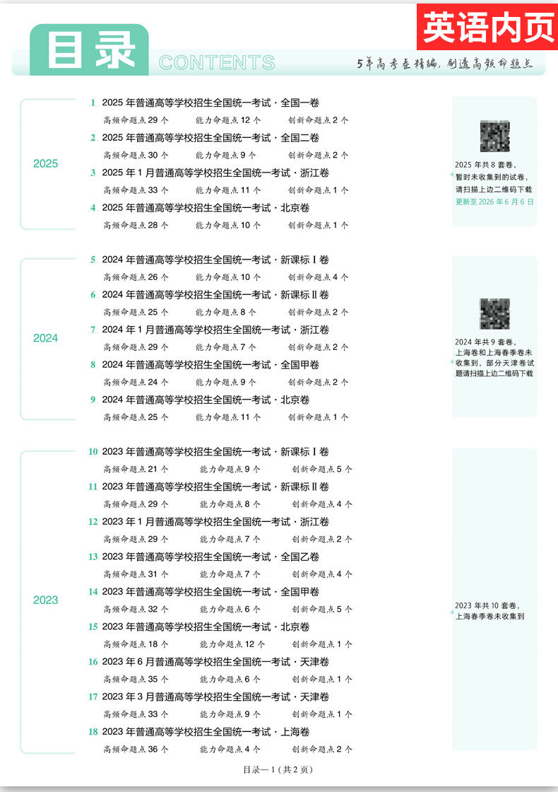 2026版金考卷5年高考真题汇编详解天星金考卷特快专递高考真题卷