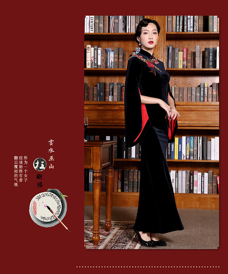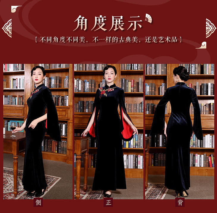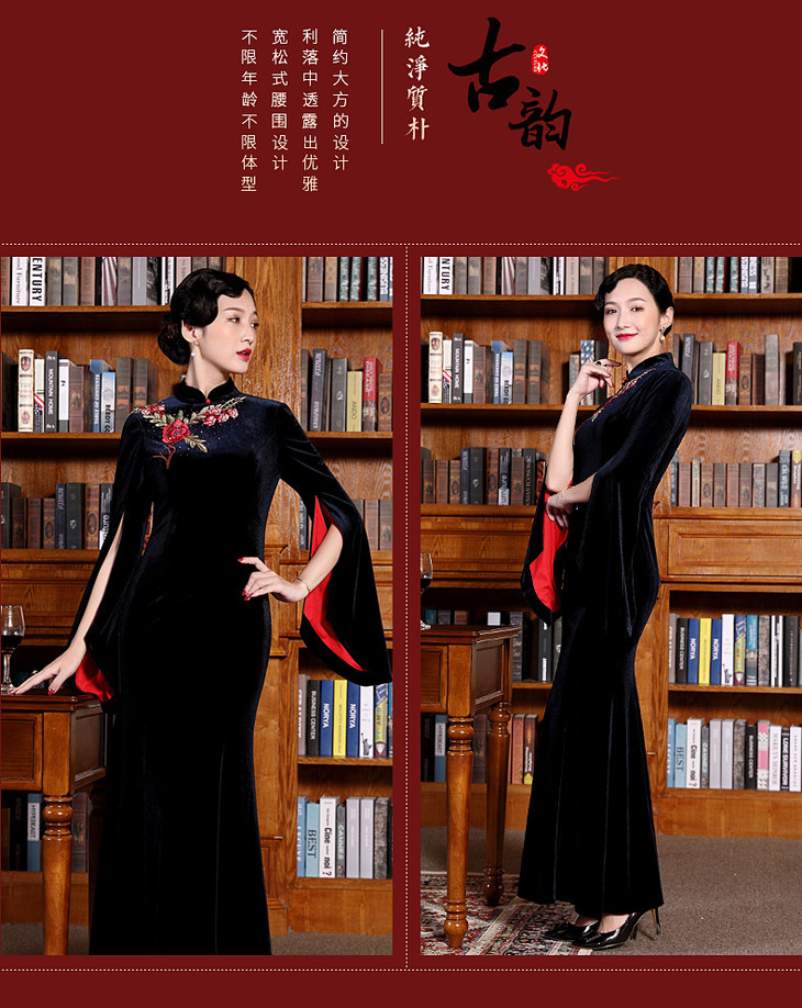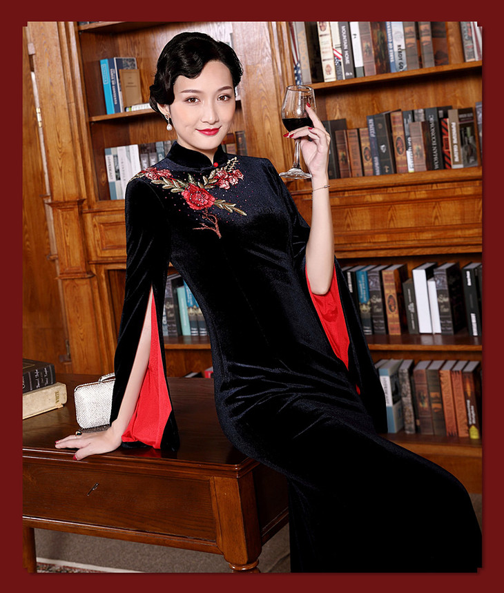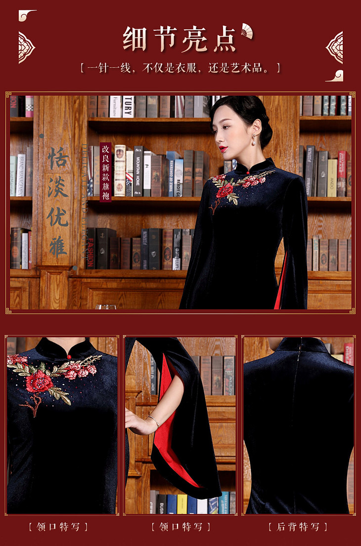 DLQ-A2167新款高端金丝绒绣花旗袍