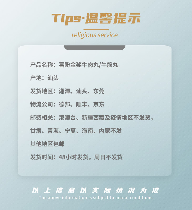 温馨提示:牛肉丸牛筋丸属于食品生鲜,非质量问题不能退换!