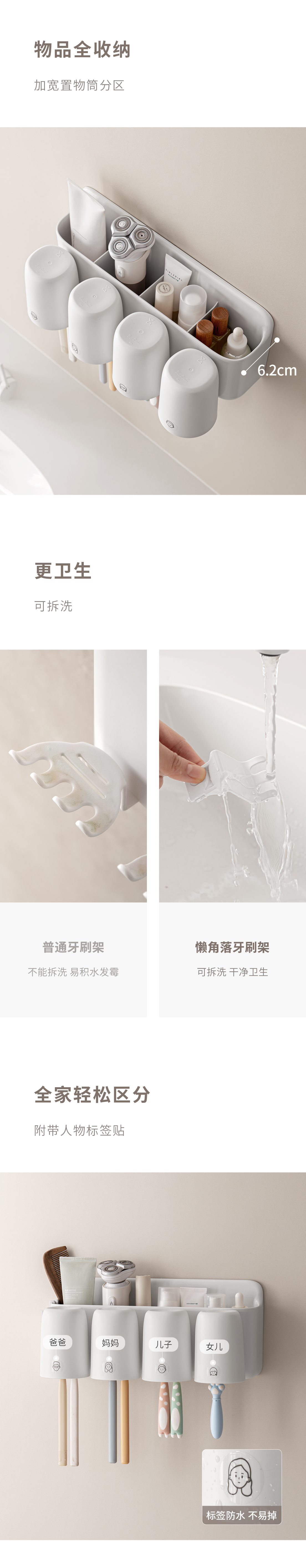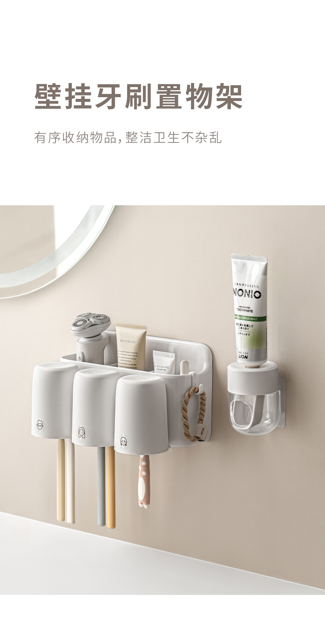 懒角落牙刷置物架牙杯壁挂式免打孔漱口杯子牙膏电动卫生间收纳