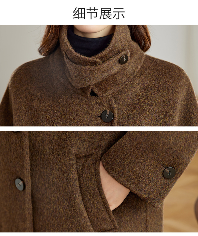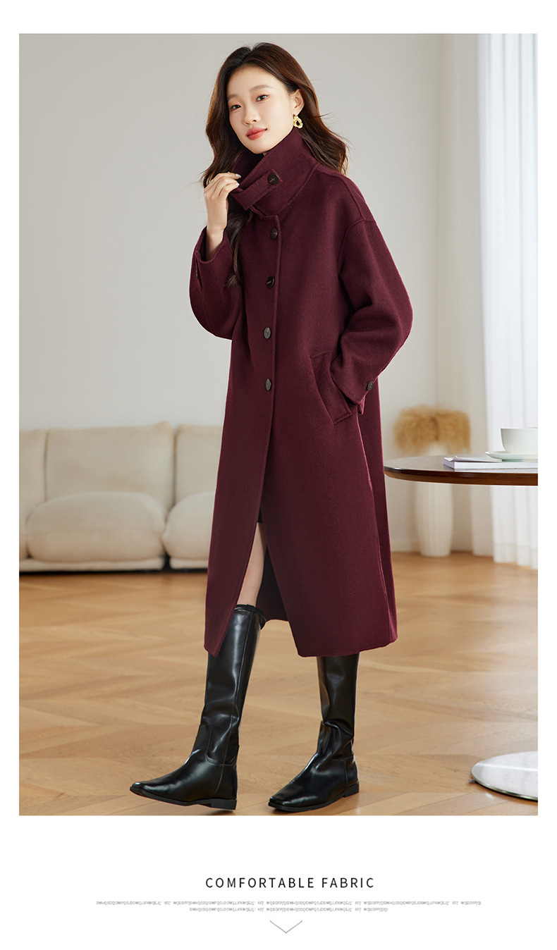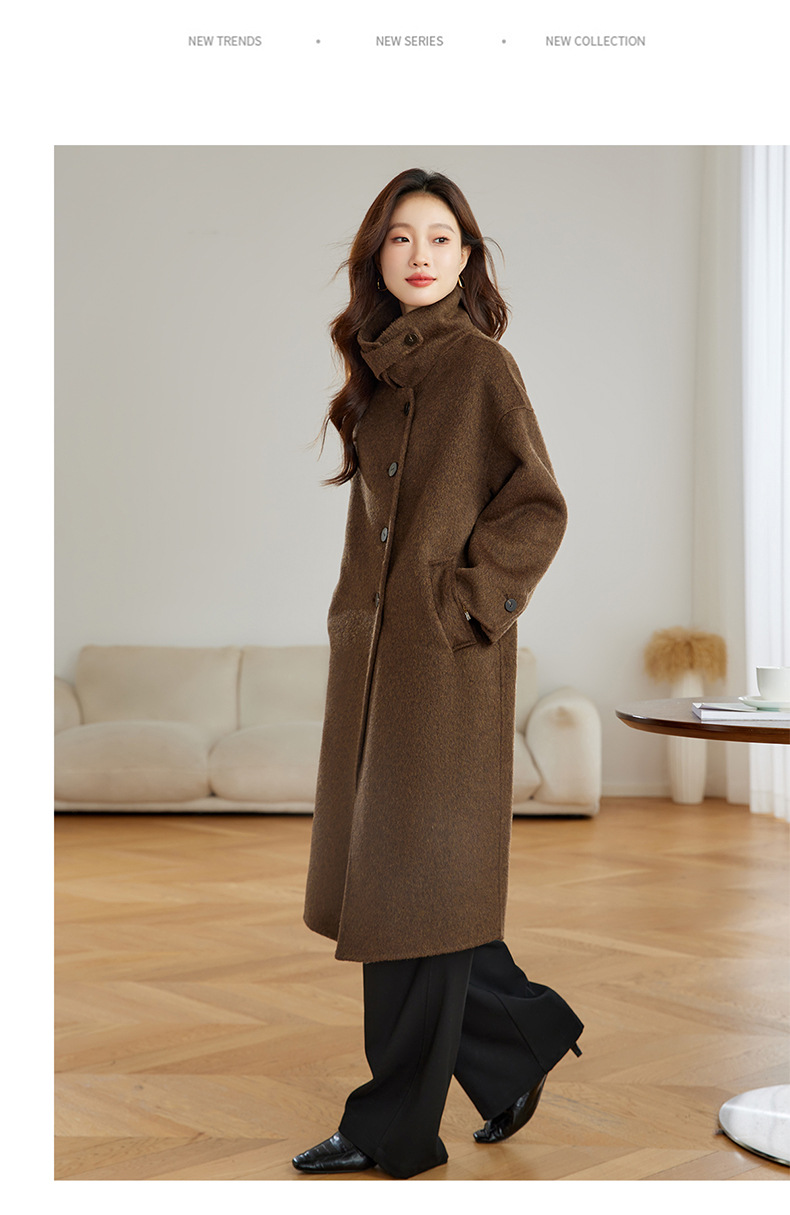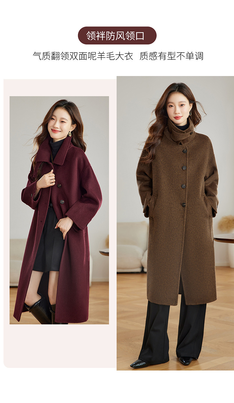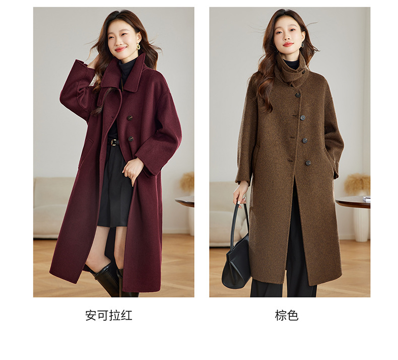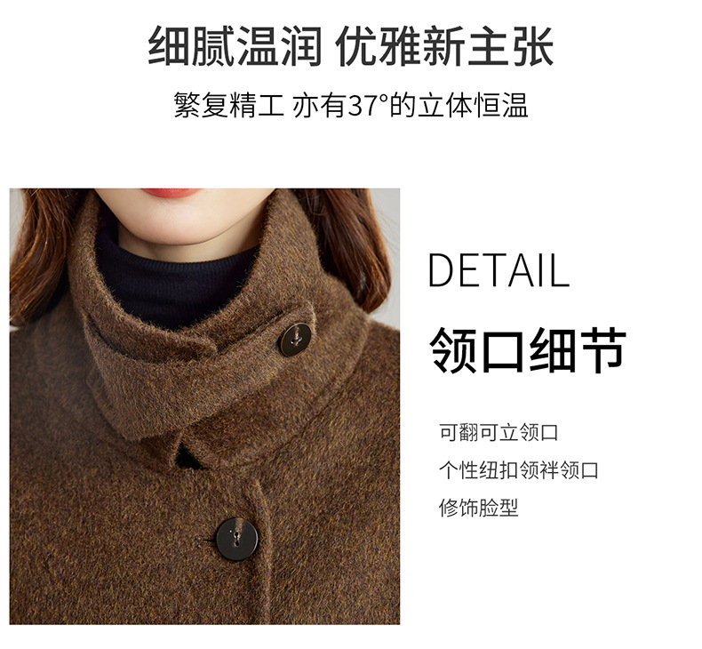 2024年秋冬季新款立领时尚咖色双面羊绒长款大衣ZYIF1125