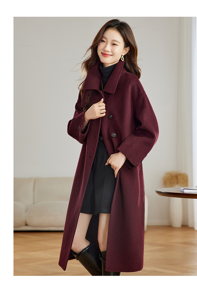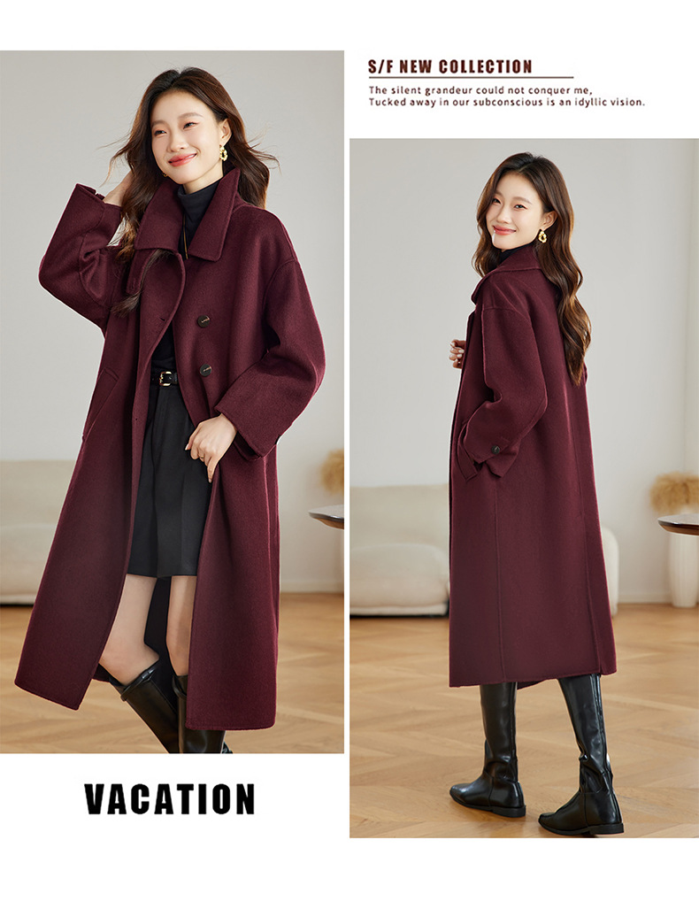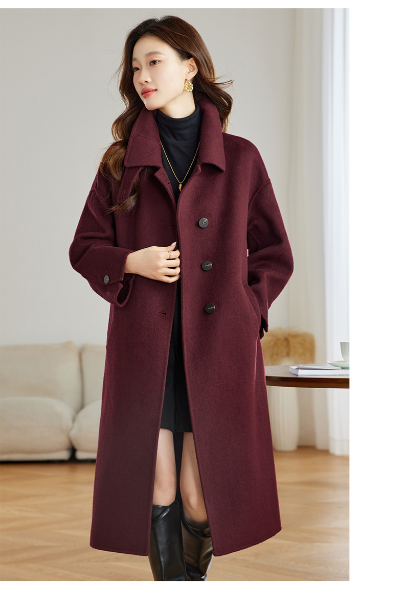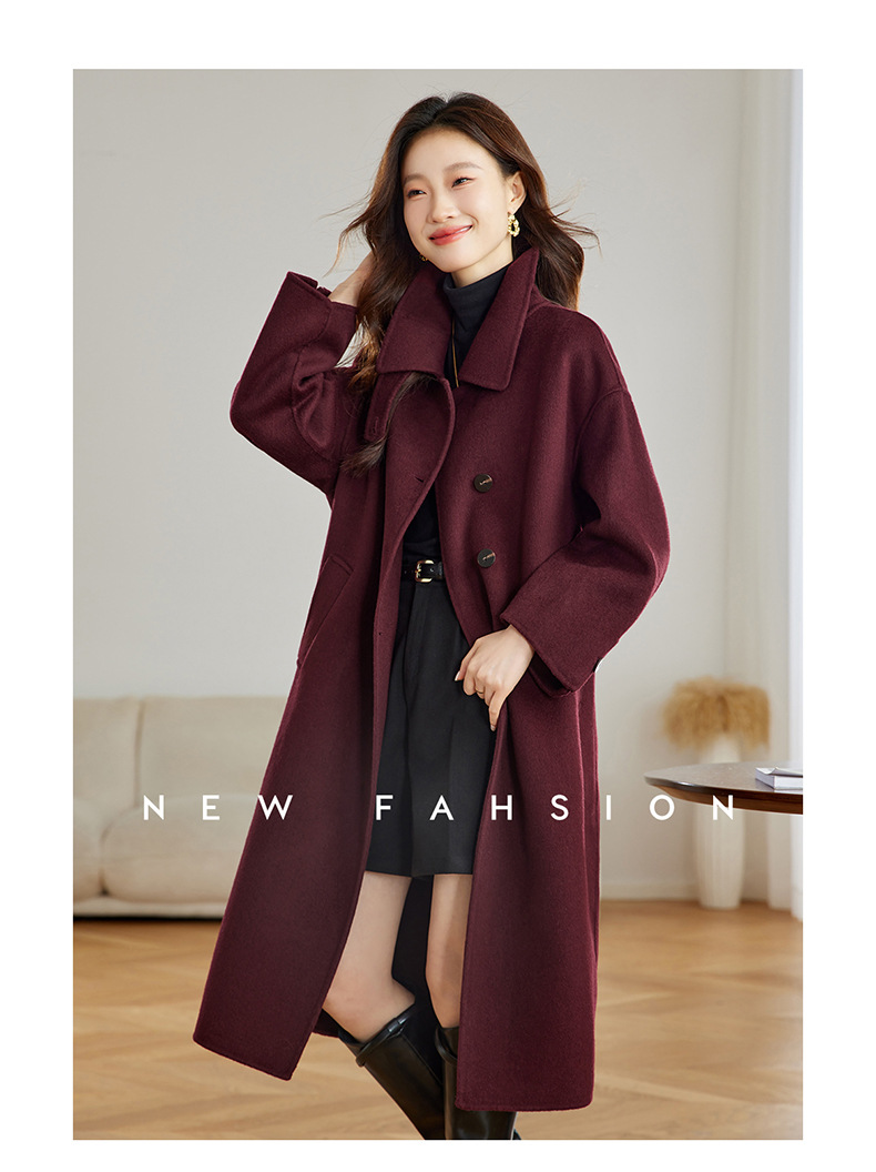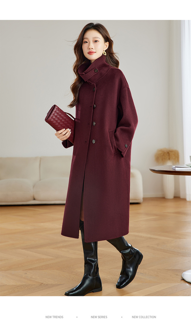 2024年秋冬季新款立领时尚咖色双面羊绒长款大衣ZYIF1125