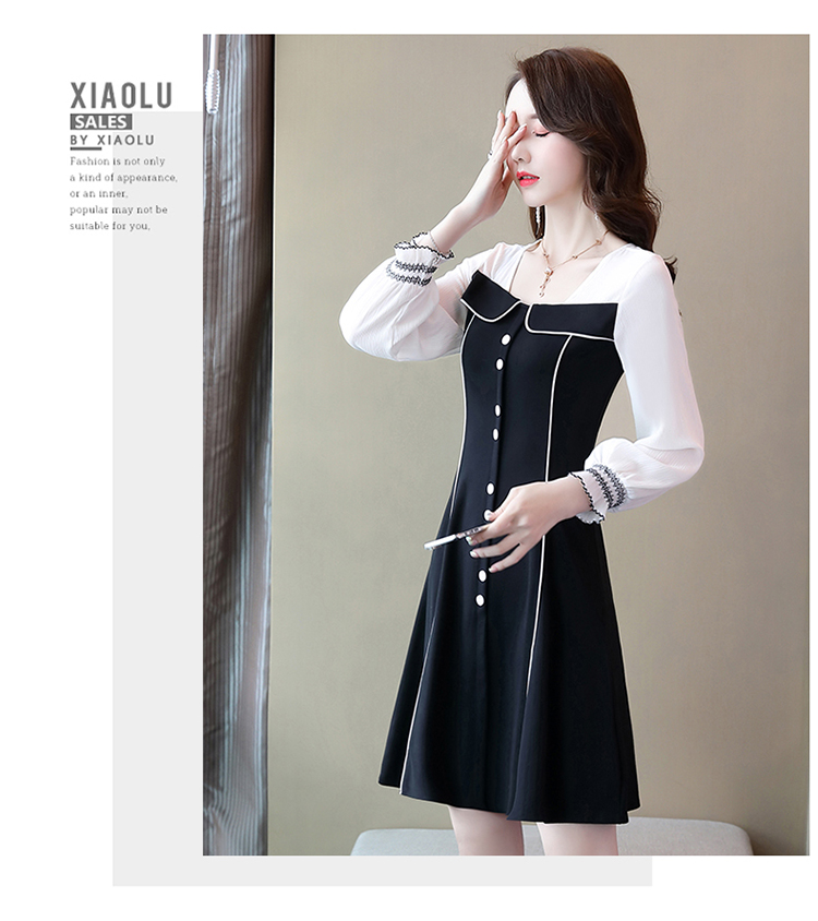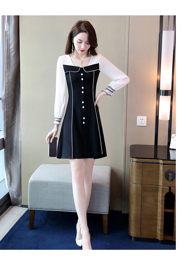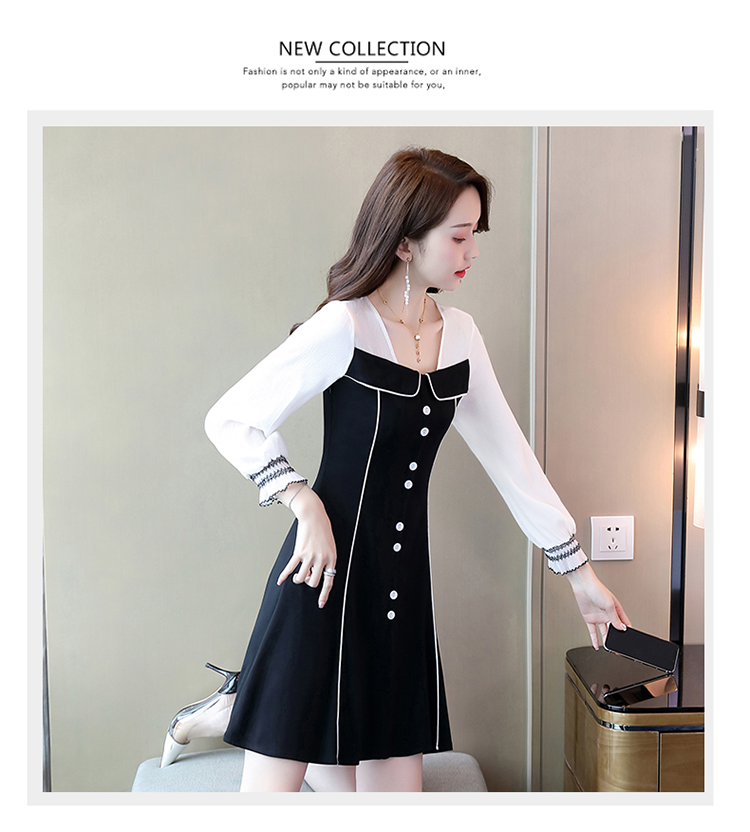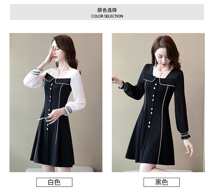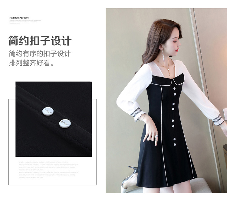 WZNH-CPYY9962小香风个性减龄舒适长袖拼色连衣裙