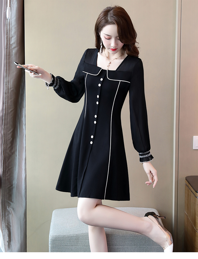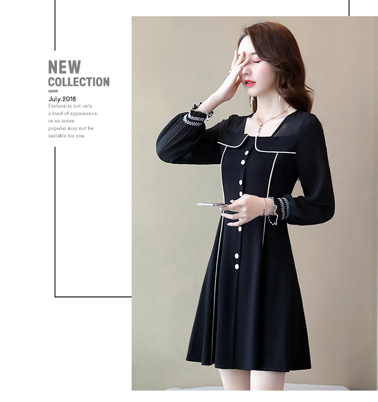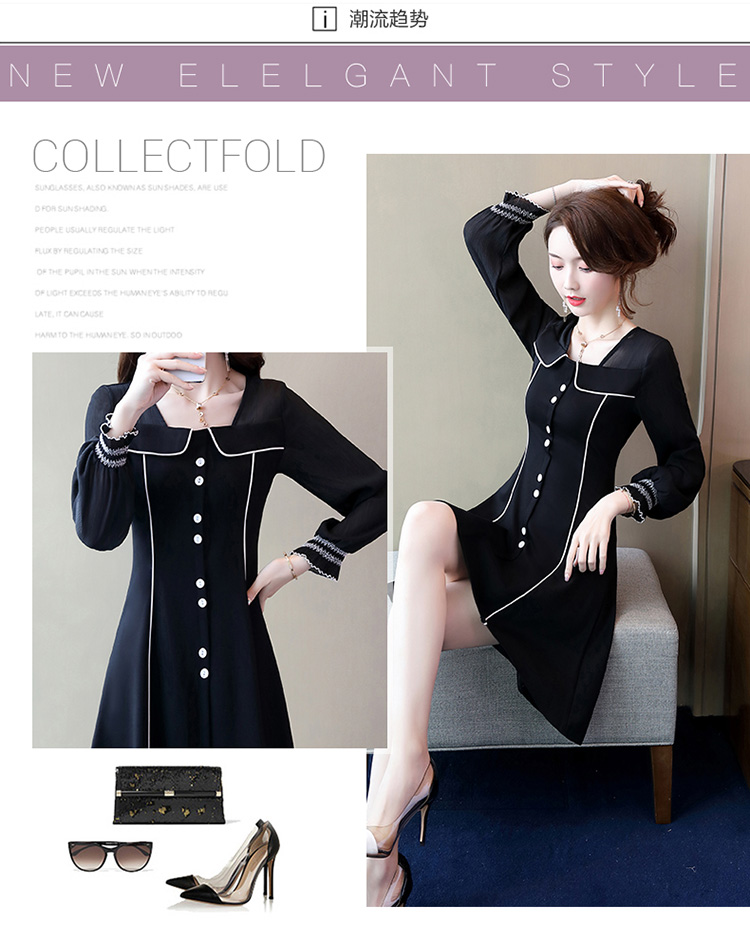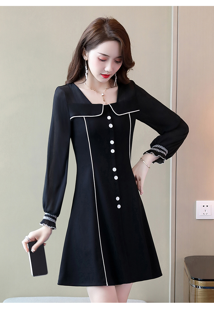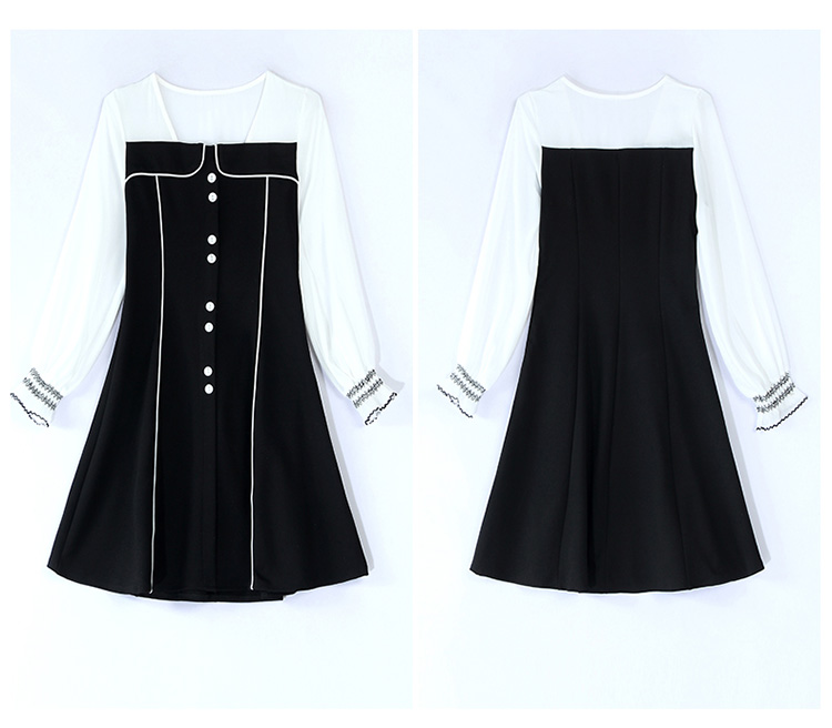 WZNH-CPYY9962小香风个性减龄舒适长袖拼色连衣裙