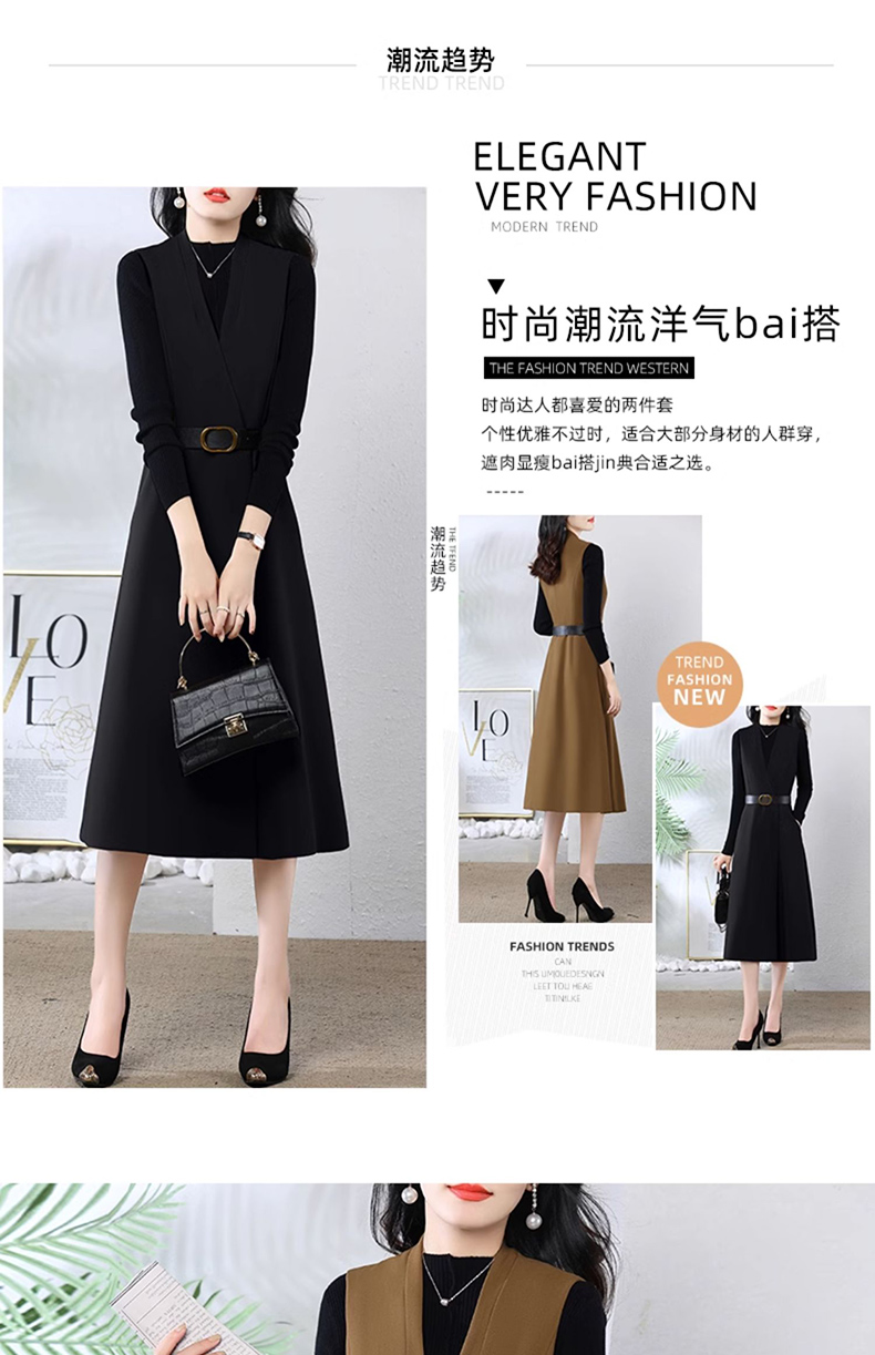 雀说 连衣裙春秋季时尚两件套装裙背带名媛时尚显瘦连衣裙冬3ZF-121806