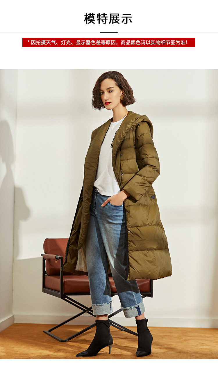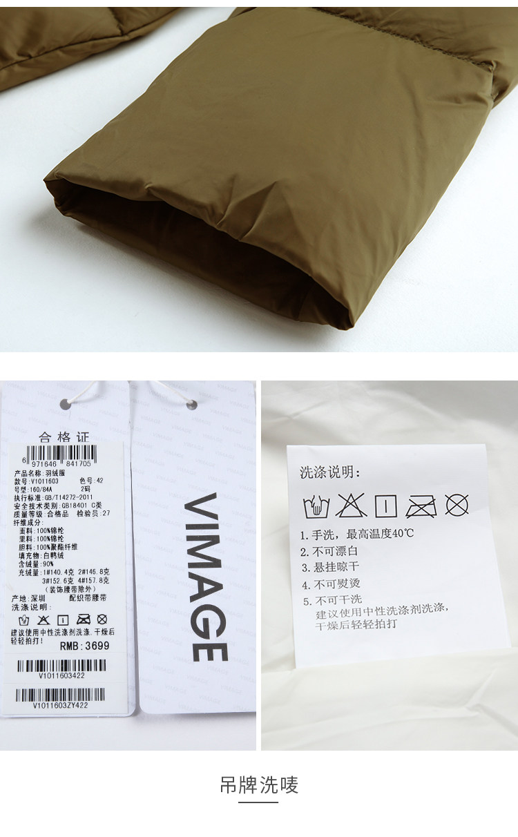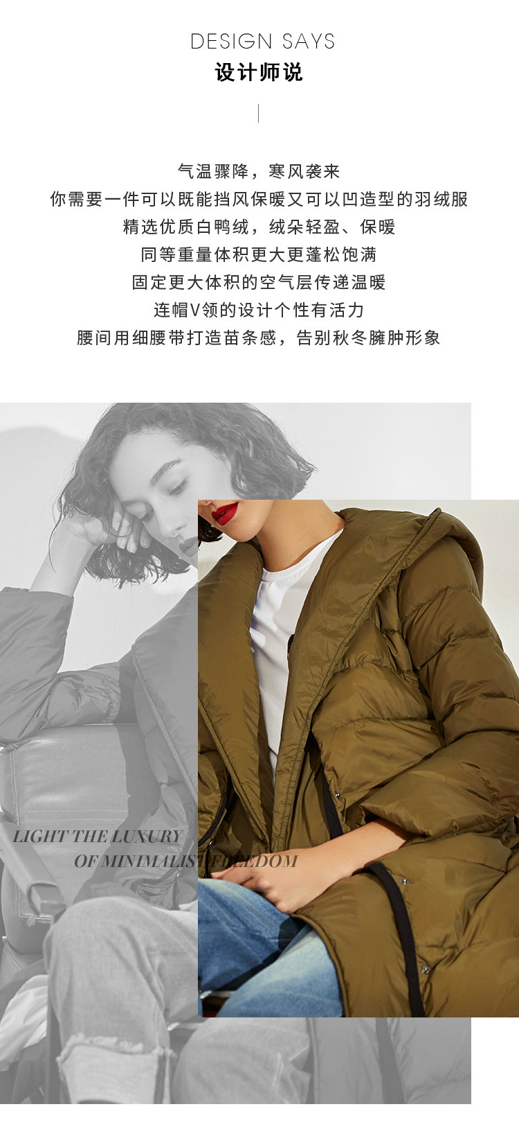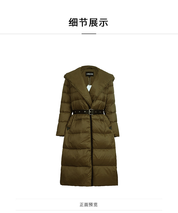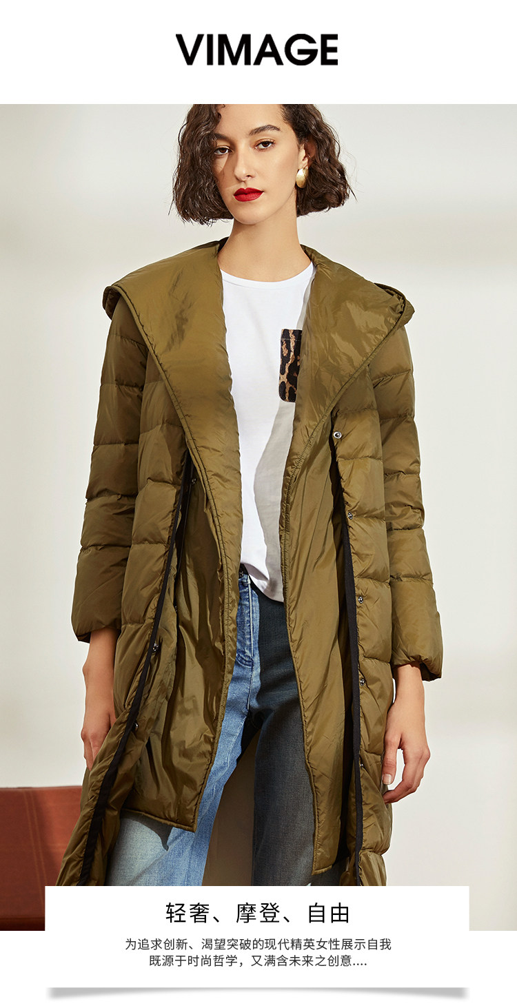 VIMAGE纬漫纪冬季新款时尚纯色收腰连帽加厚羽绒服中长款女V1011603
