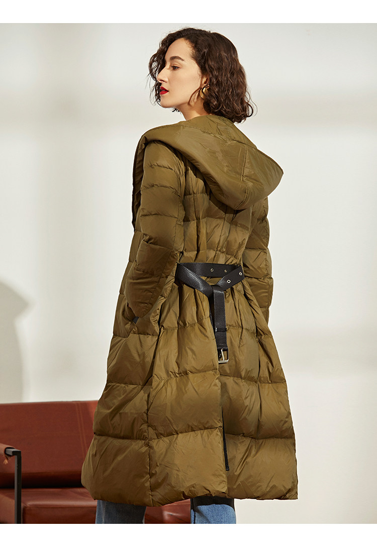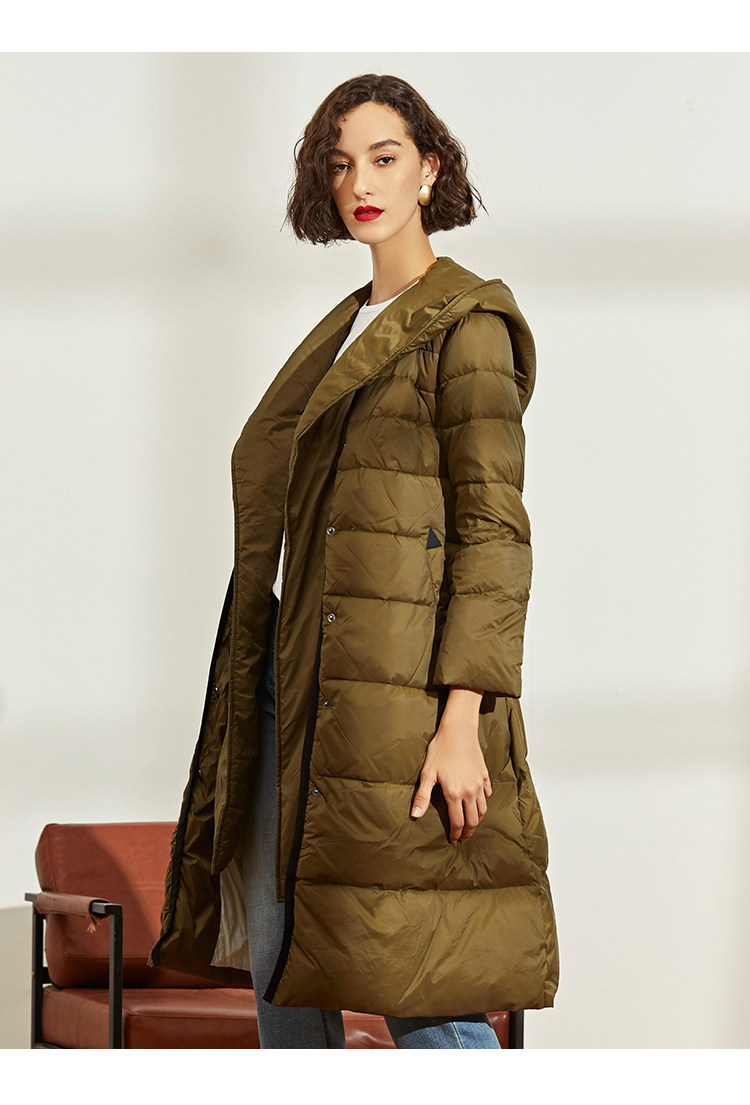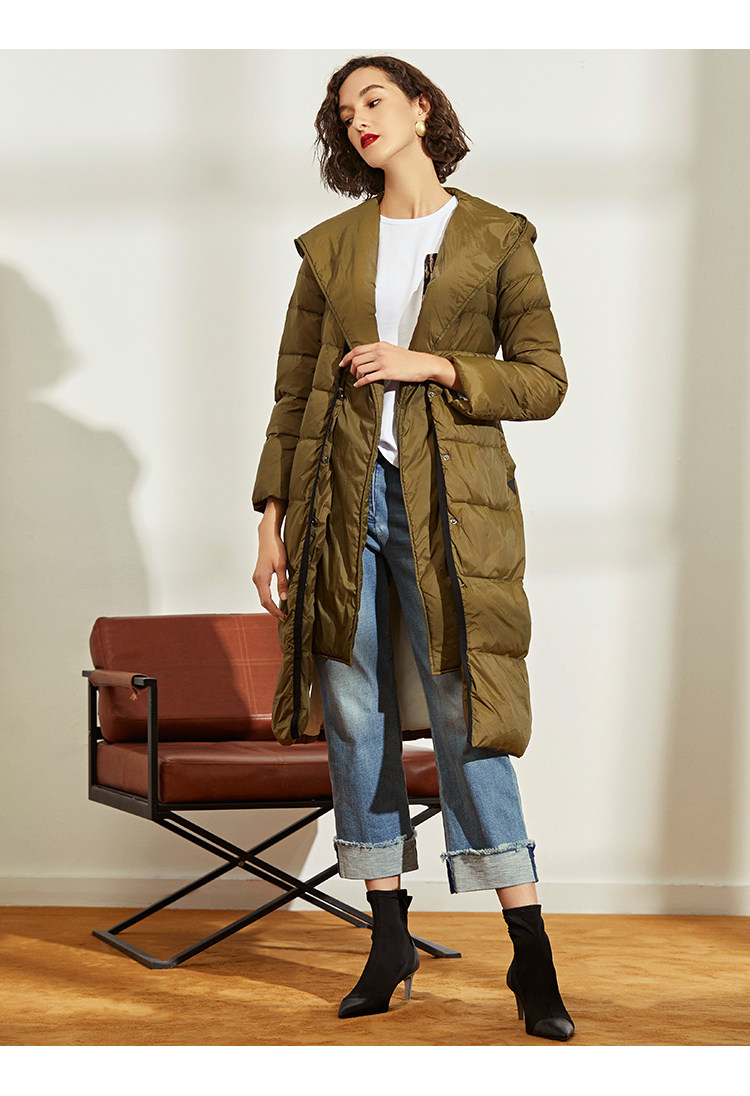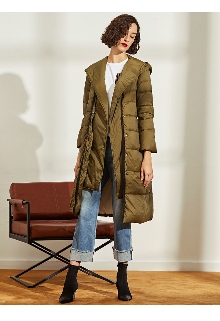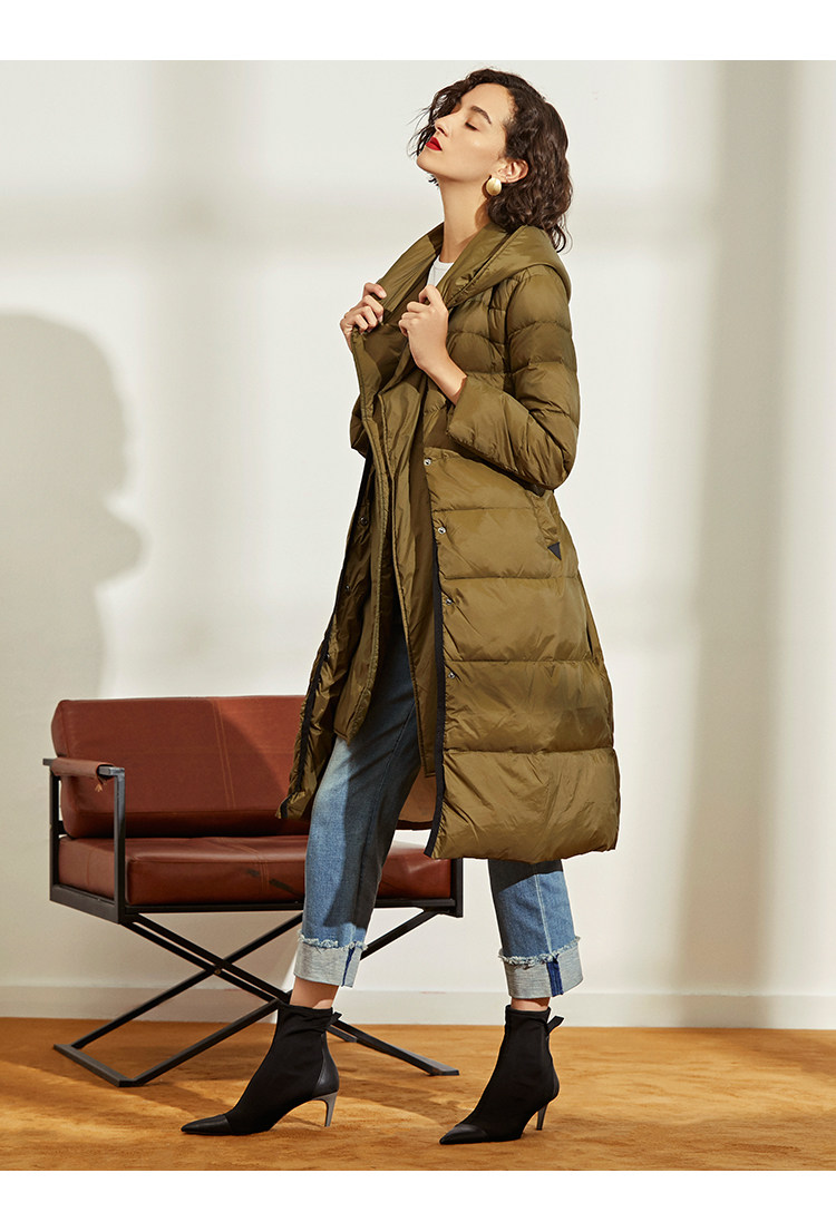 VIMAGE纬漫纪冬季新款时尚纯色收腰连帽加厚羽绒服中长款女V1011603