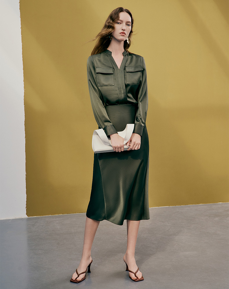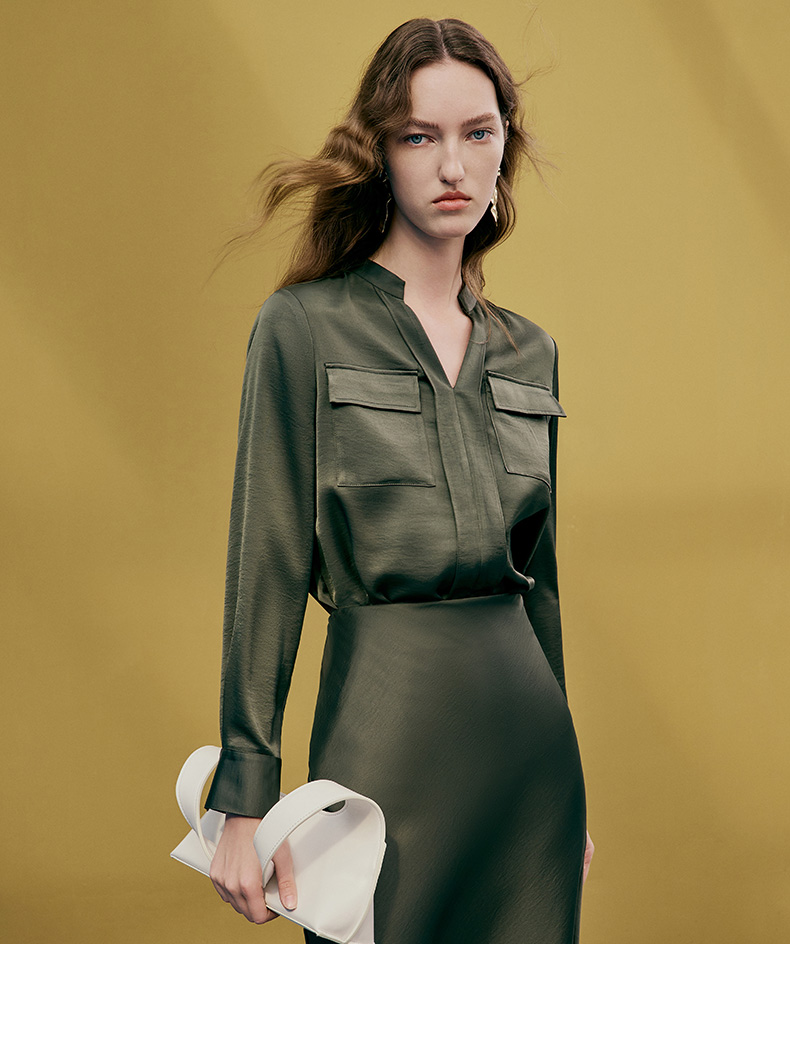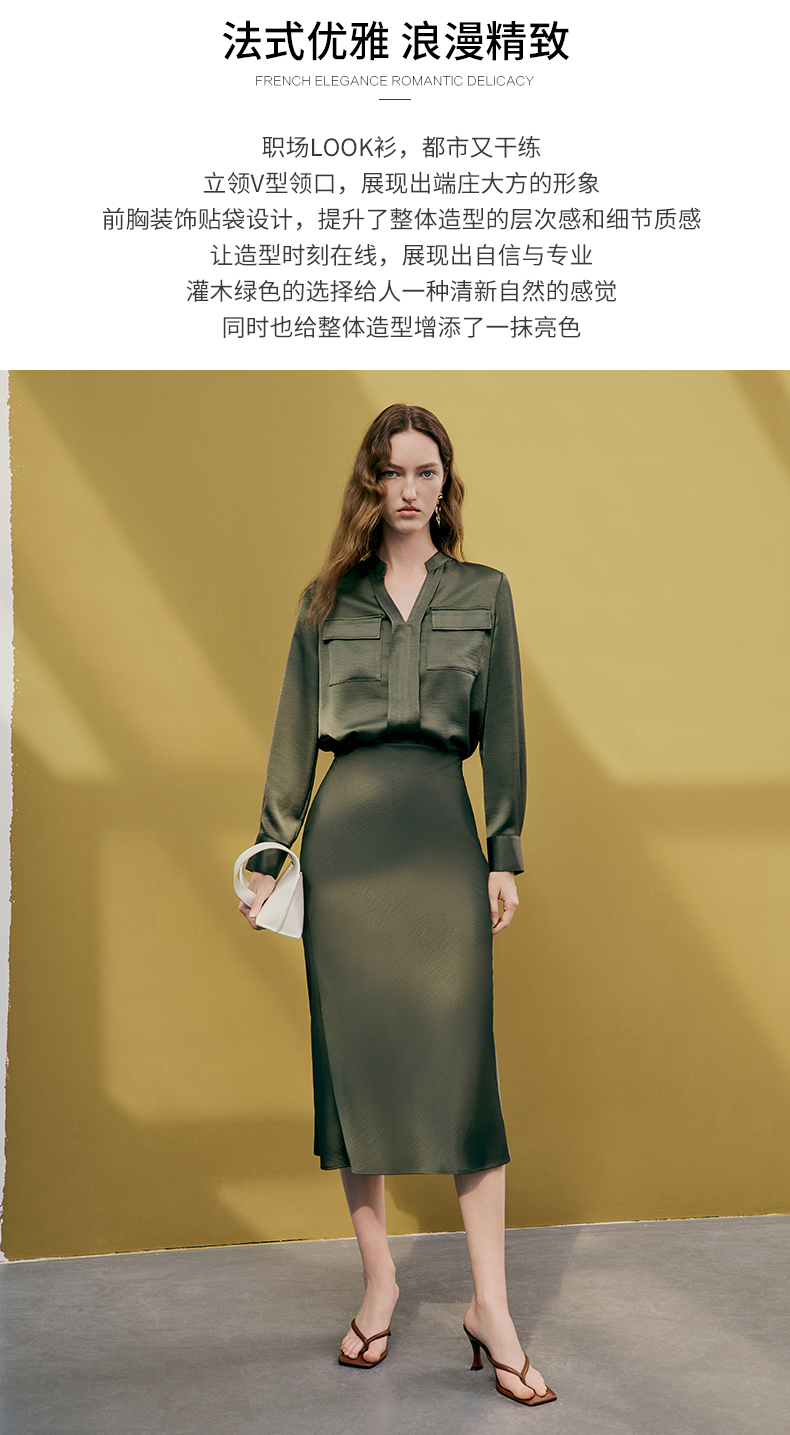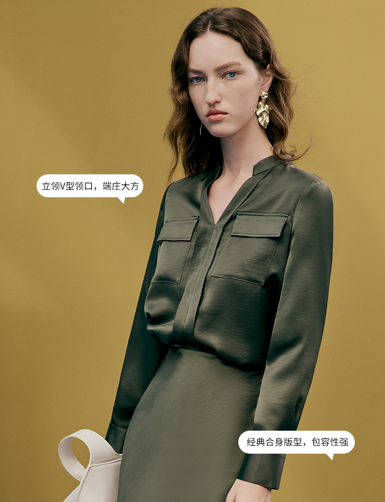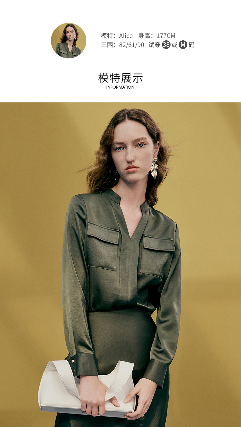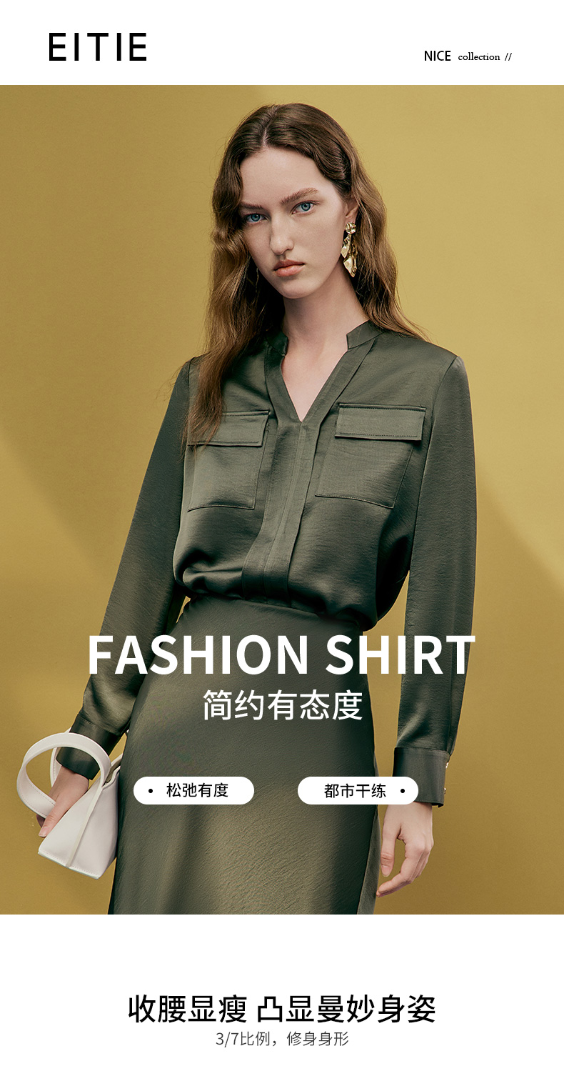 EITIE爱特爱春季新款V领洋气舒适气质衬衣衬衫7313010