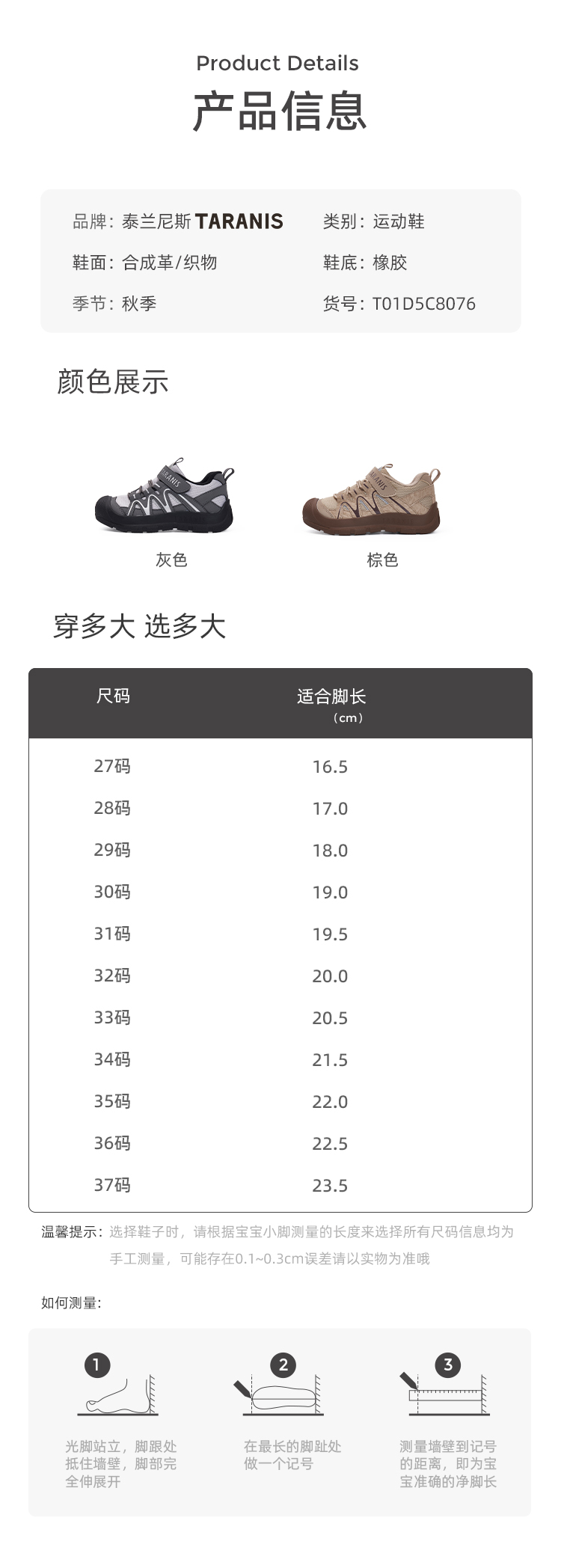 【新品】泰兰尼斯秋季中大童时尚舒适包头防踢男童运动鞋T01D5C8076