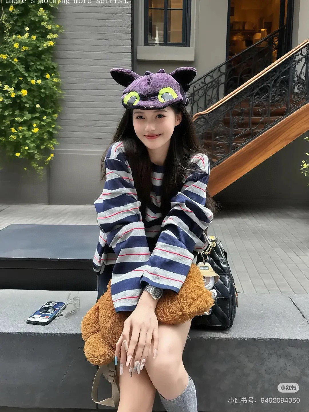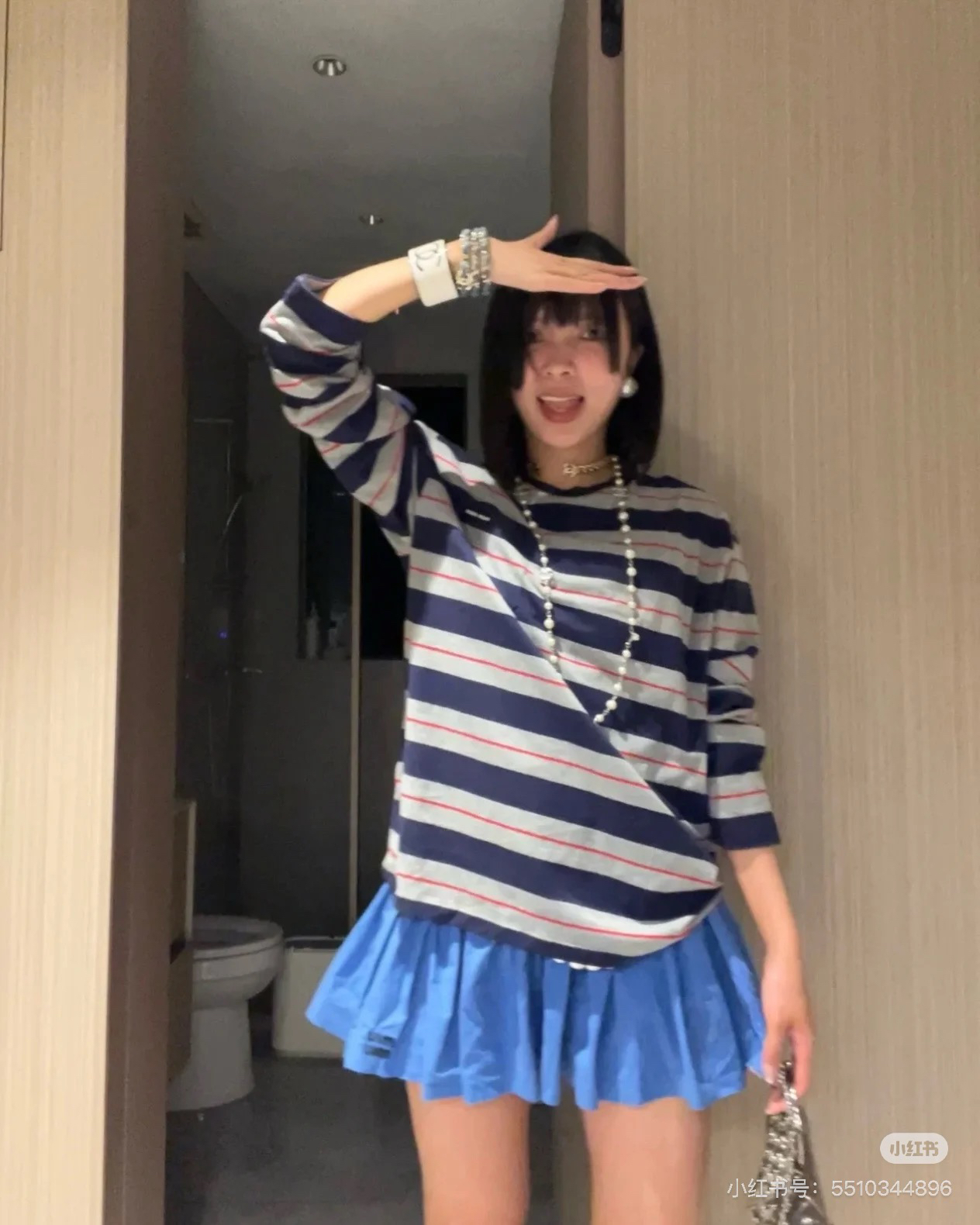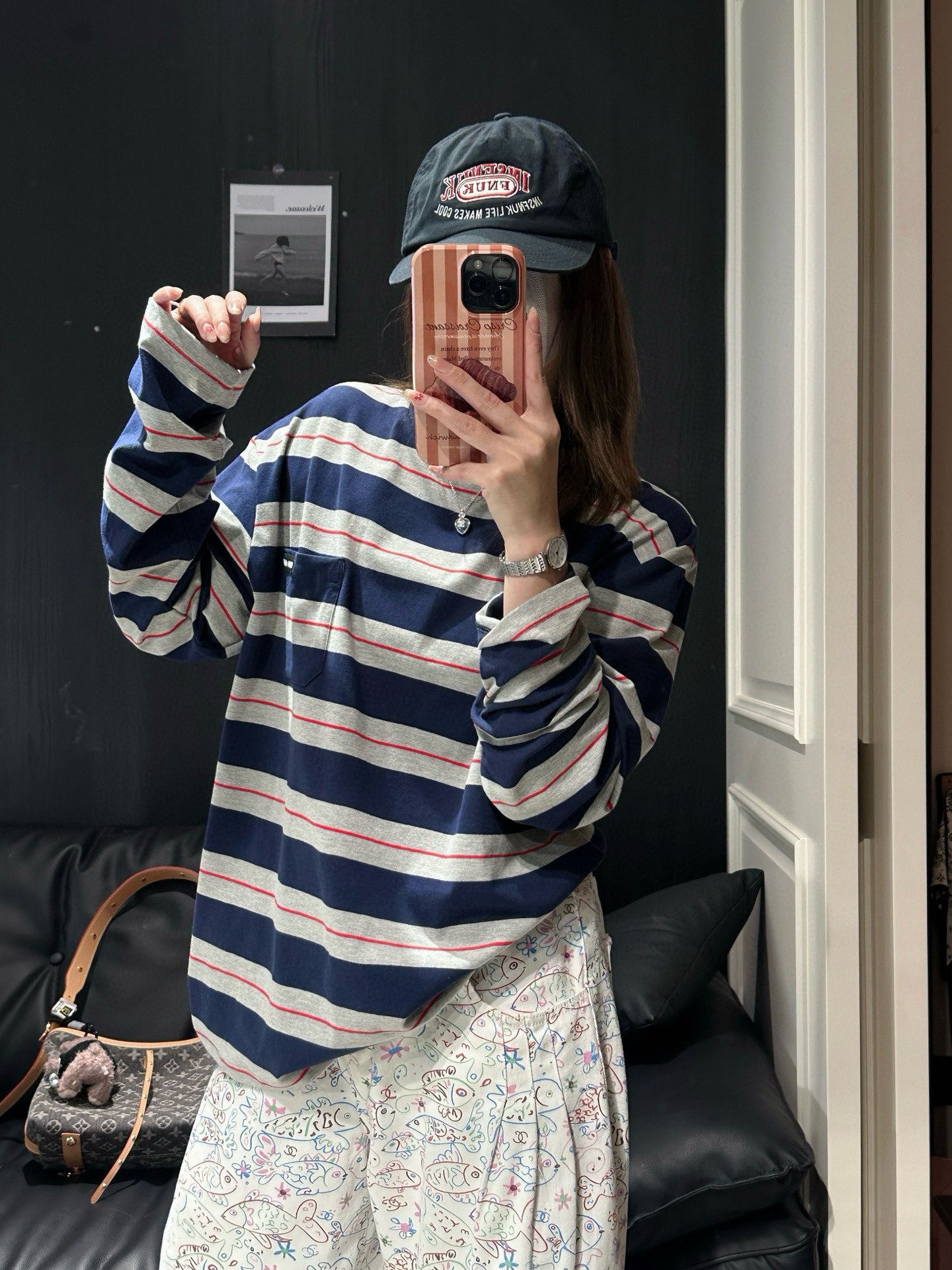 简洁大方中又不失时尚感,一件上身就能摆脱单调,剪裁散发随性舒适的气氛,有些漫不经心的甜酷慵懒!条纹的秩序感让撞色也不会显得花哨,清新又复古的学院气息,很好看!