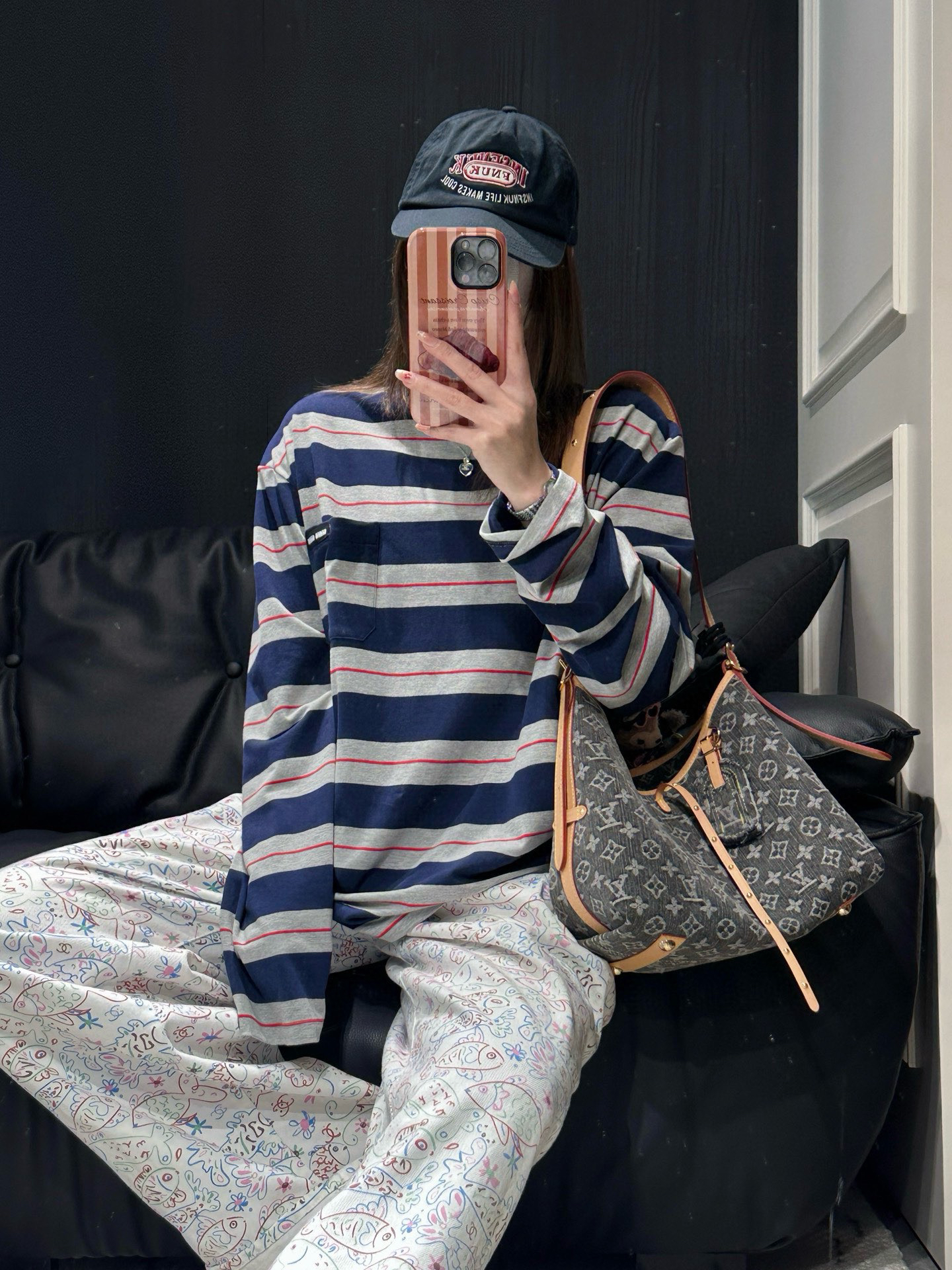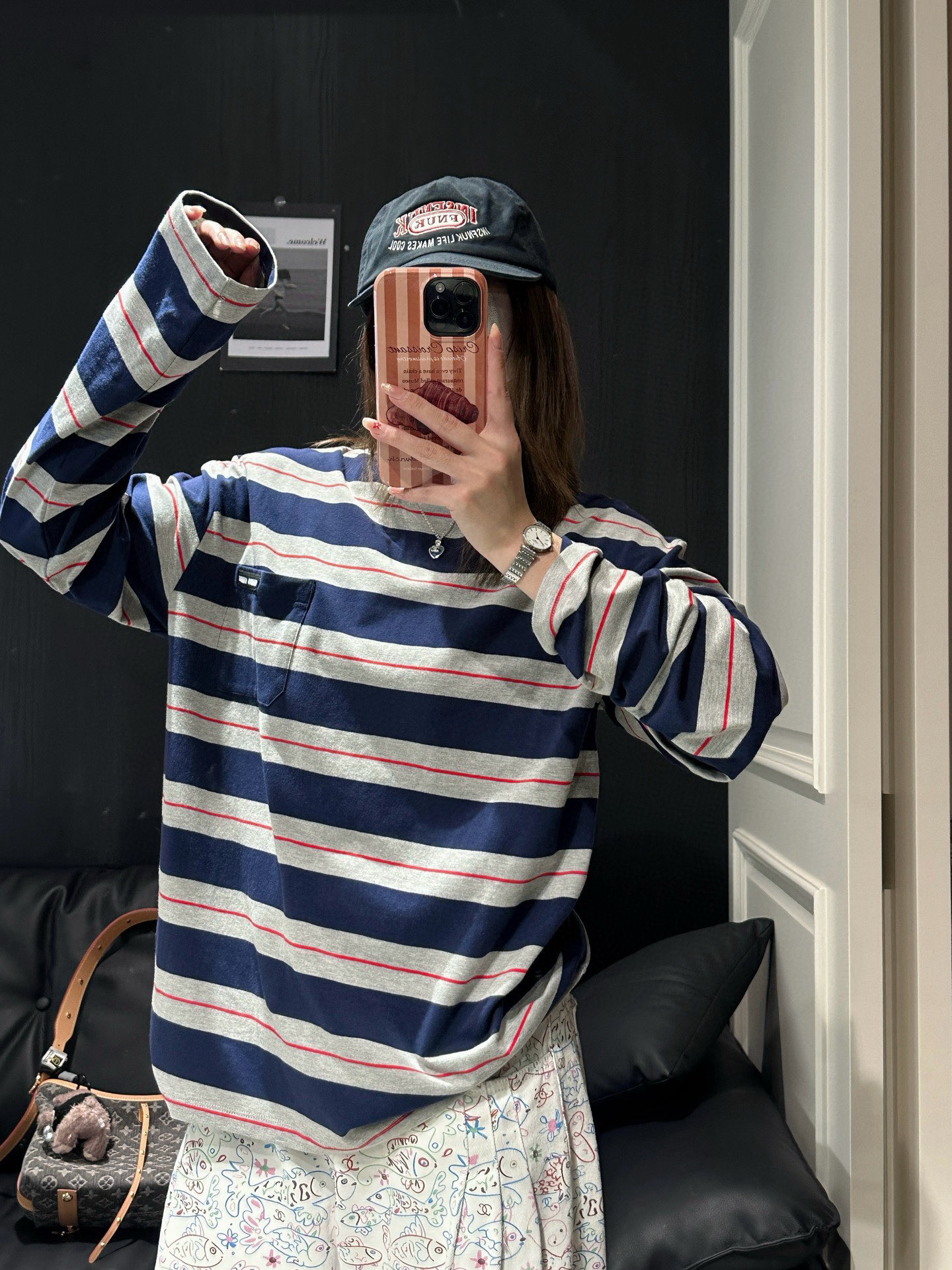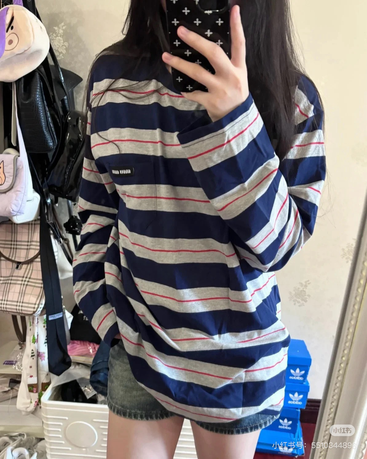 简洁大方中又不失时尚感,一件上身就能摆脱单调,剪裁散发随性舒适的气氛,有些漫不经心的甜酷慵懒!条纹的秩序感让撞色也不会显得花哨,清新又复古的学院气息,很好看!