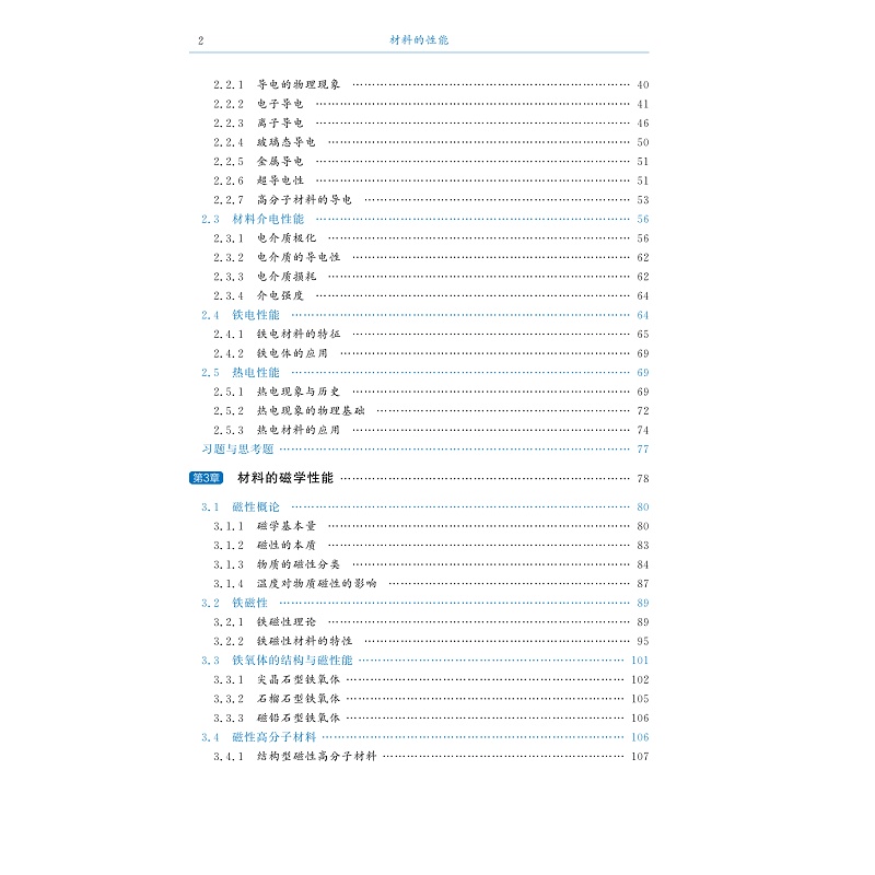 为及时体现材料科学的发展动态,并使其知识结构更为全面系统,同时结合第一版教材在课堂教学实践中收到的反馈和建议,我们对原有教材作了更新和完善。在热学性能章节,增加了材料的热稳定性;在电学性能章节,补充了材料极化和高分子材料导电机理等内容;在光学性能章节,完善了材料颜色与光的透射、散射、吸收等光学性能的关系。此外,为便于学生在学习过程中把握重点,本版采用双色印刷工艺,对书中的一些基本概念和重要内容做了突出显示。在修订过程中注重各种材料性能的共性和特性的平衡,使其更加适应培养“厚基础、宽口径” 的高素质本科生的需要。本教材适合高等院校 材料科学与工程专业本科生或研究生作为参考书使用。