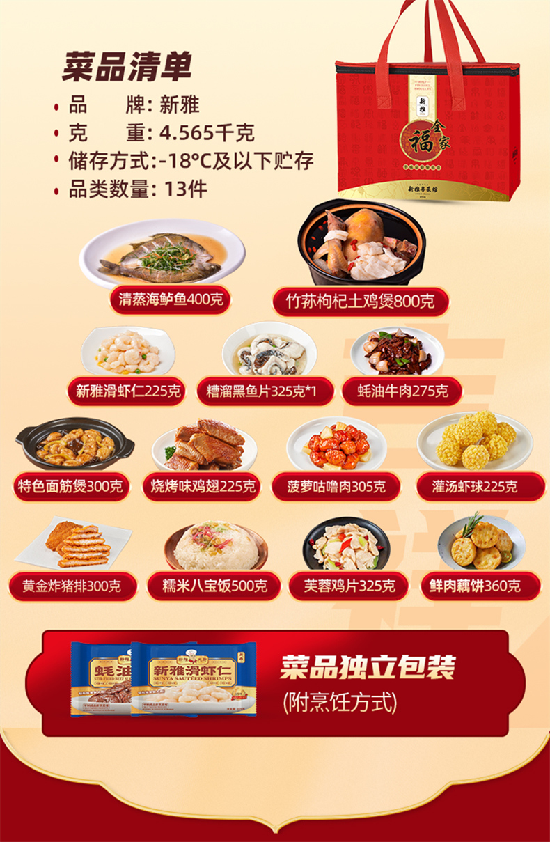 【直送到家】4.565KG新雅全家福 半成品礼盒 新鲜直达