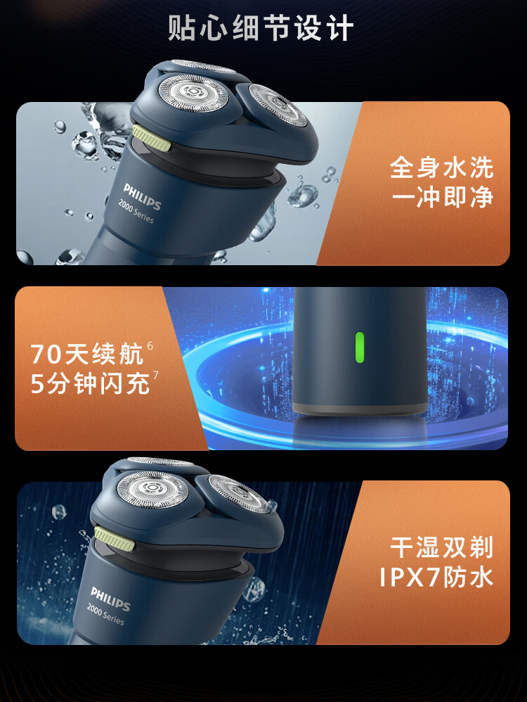飞利浦PHILIPS电动剃须刀旋风2系刮胡刀 6D自贴合刀头S2885