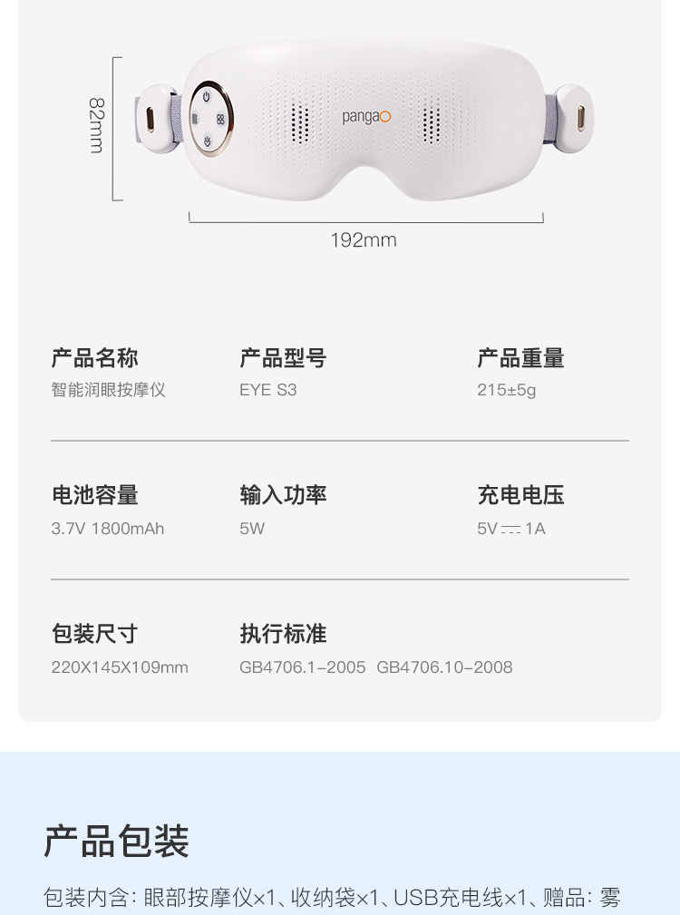攀高智能润眼按摩仪EYES3白色护眼舒缓疲劳