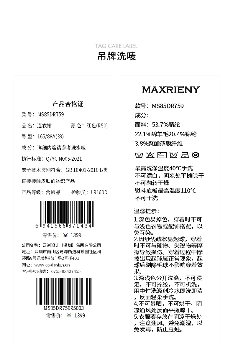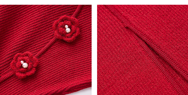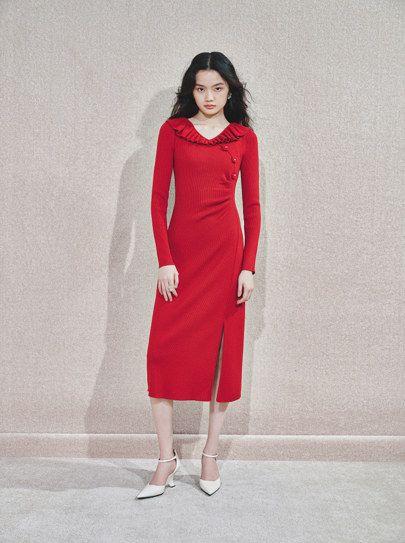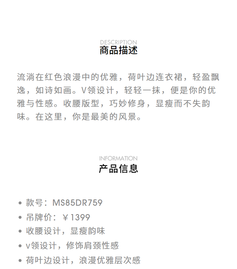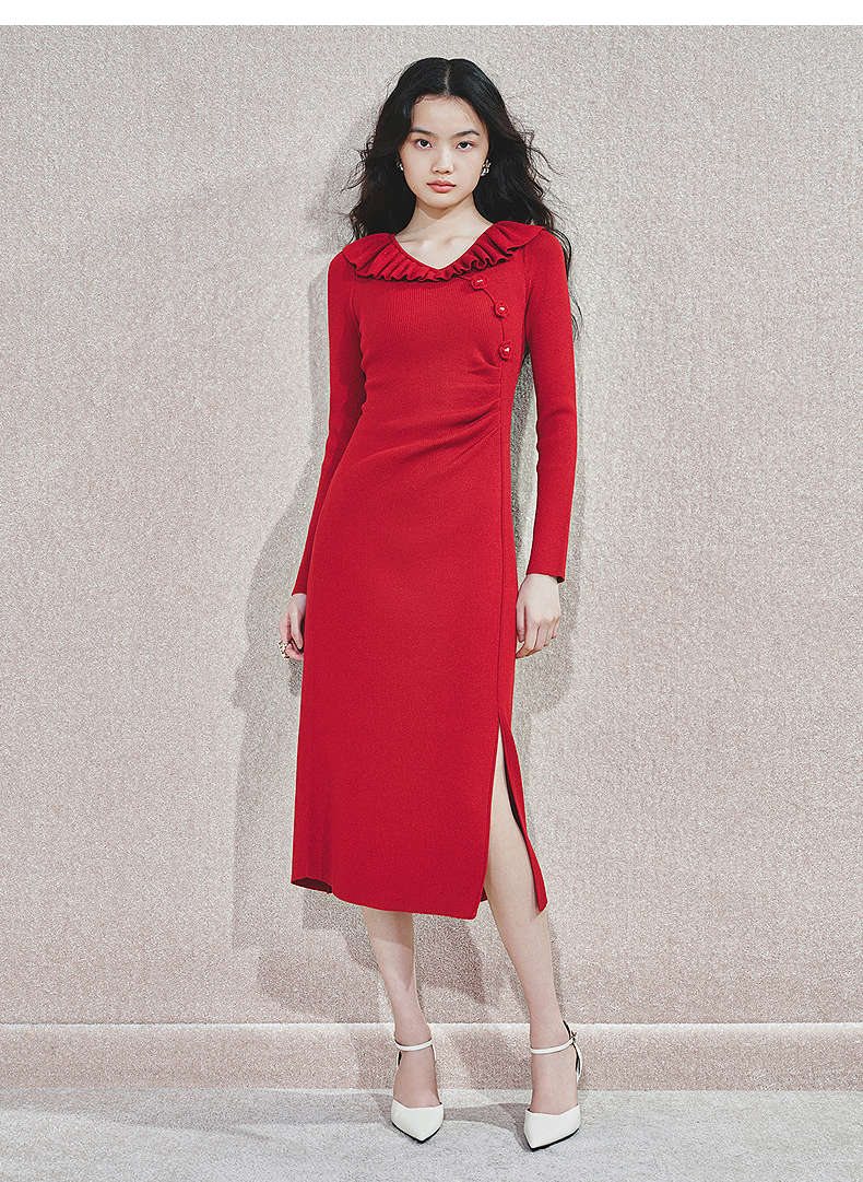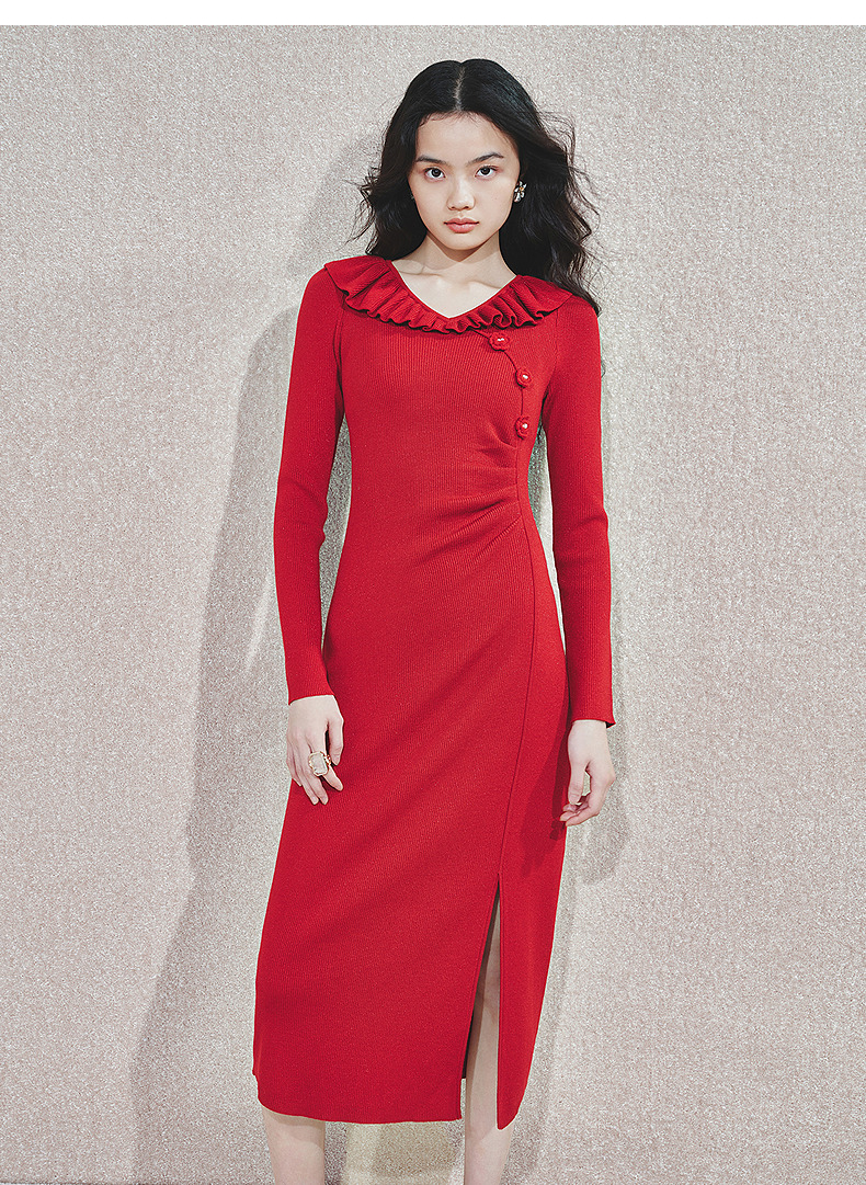 玛克门店发货:【商场同款-新年红系列】MAXRIENY优雅复古感连衣裙针织红色裙子(货号:MS85DR759)