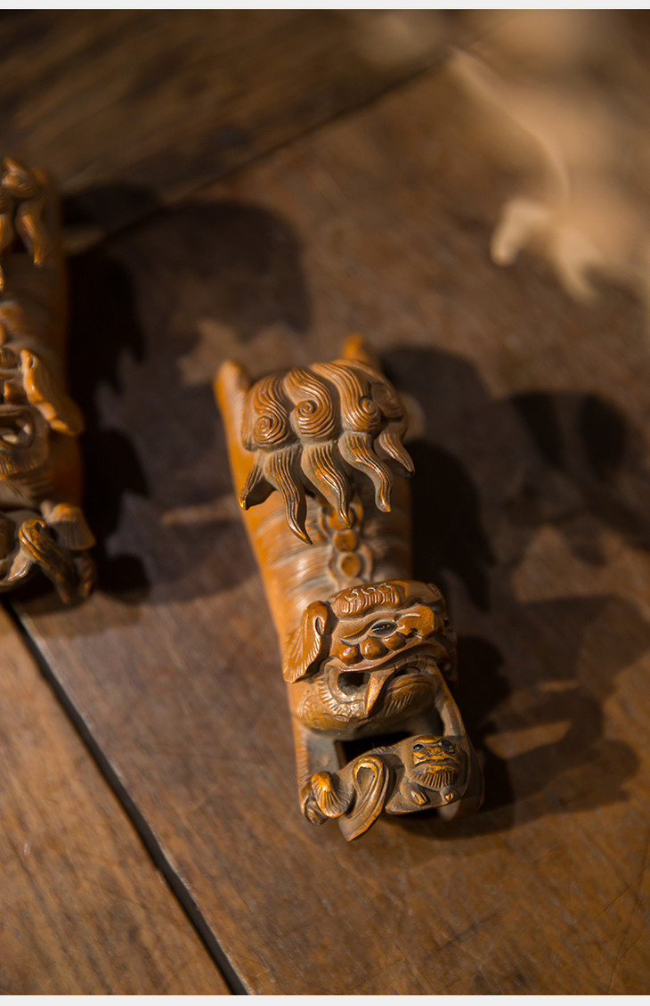 清代 黄杨木雕太师少师镇纸(一对)