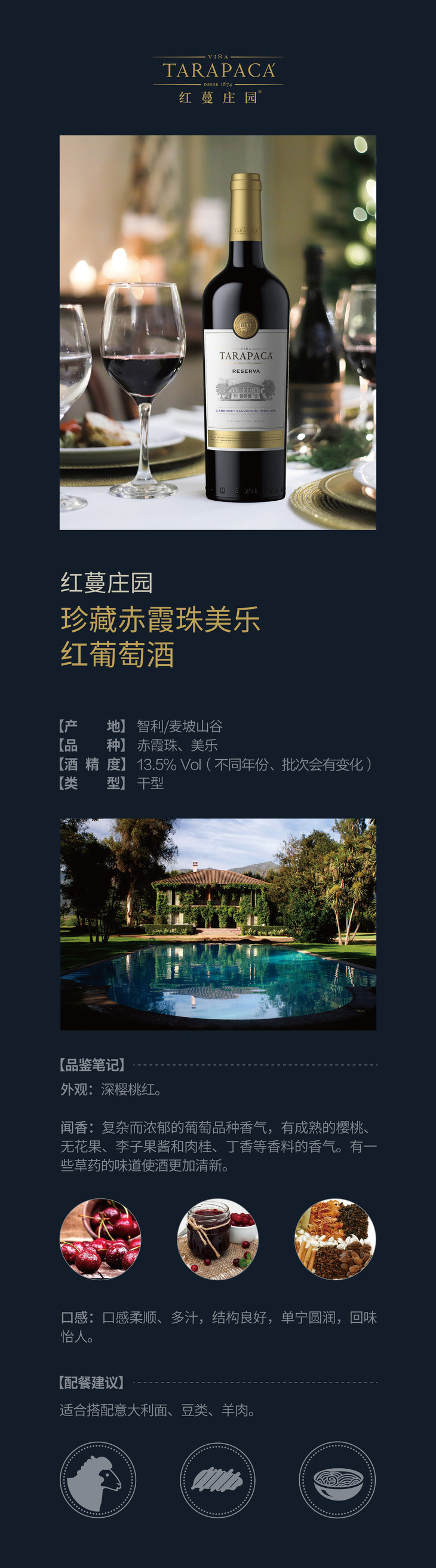 红蔓庄园珍藏赤霞珠美乐红葡萄酒6瓶装750ml(金标)