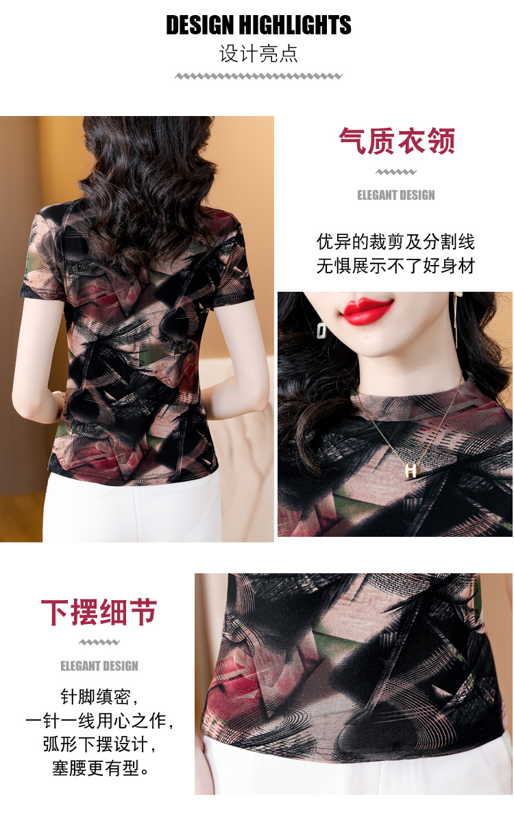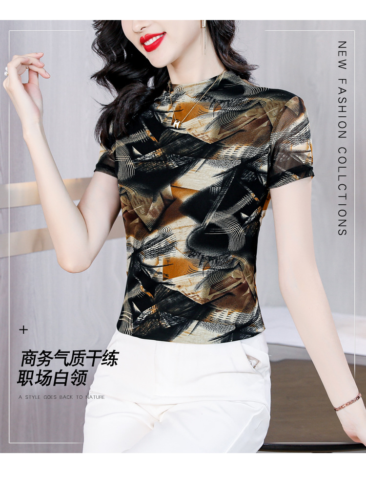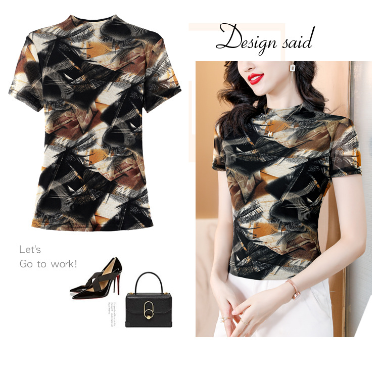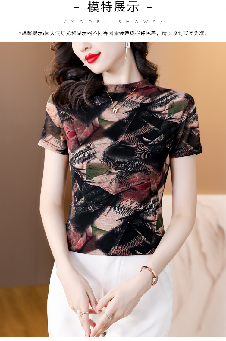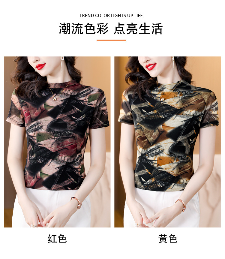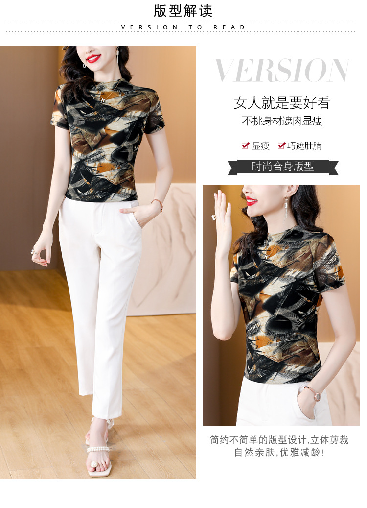 KQL-326H2193大码网纱肤双层打底衫2023夏新款短袖百搭t恤上衣女