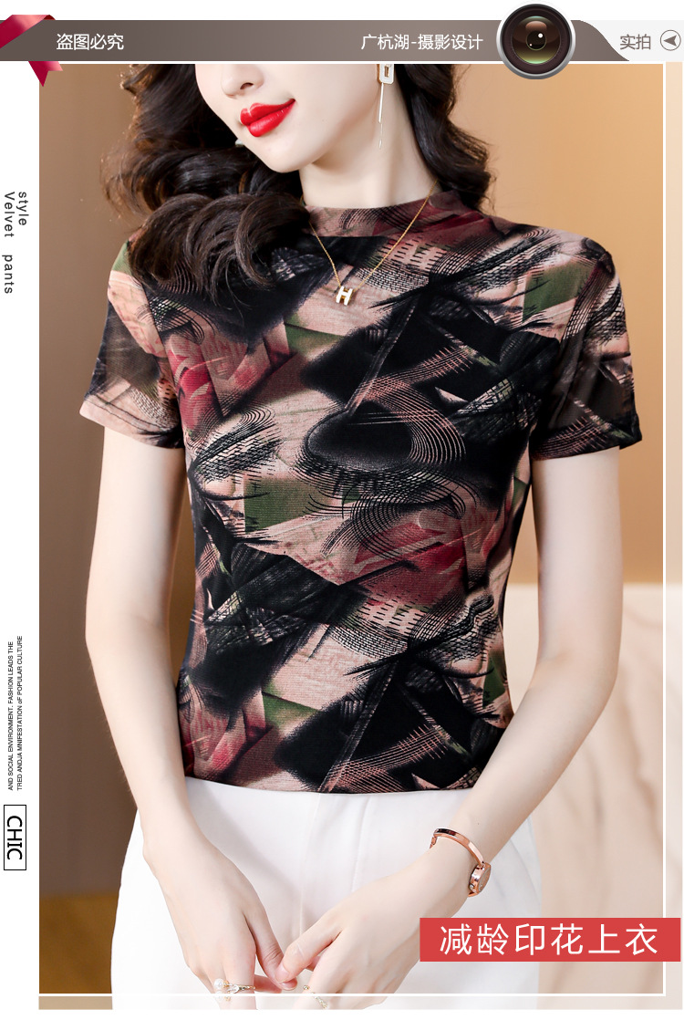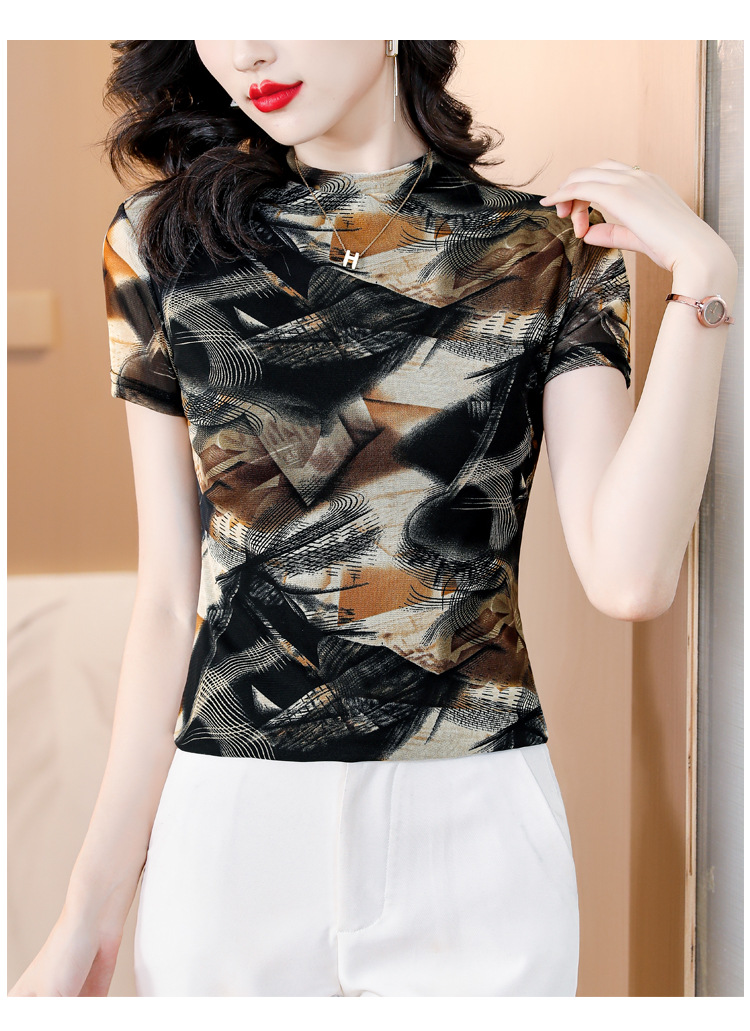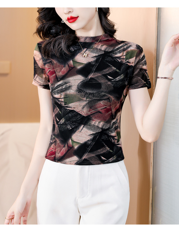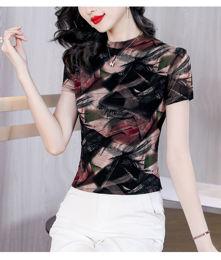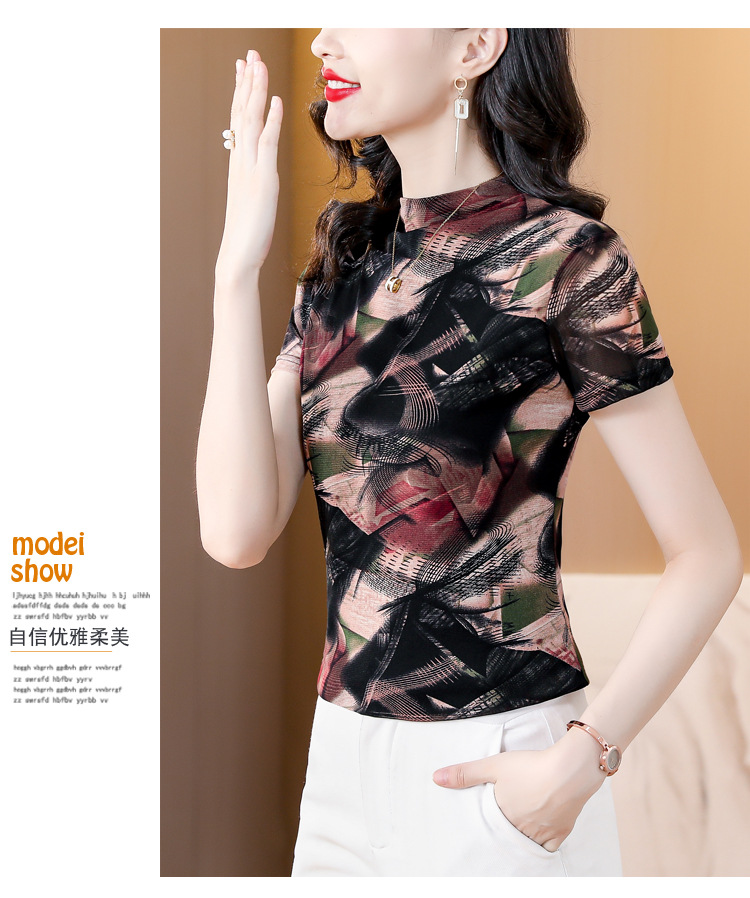 KQL-326H2193大码网纱肤双层打底衫2023夏新款短袖百搭t恤上衣女