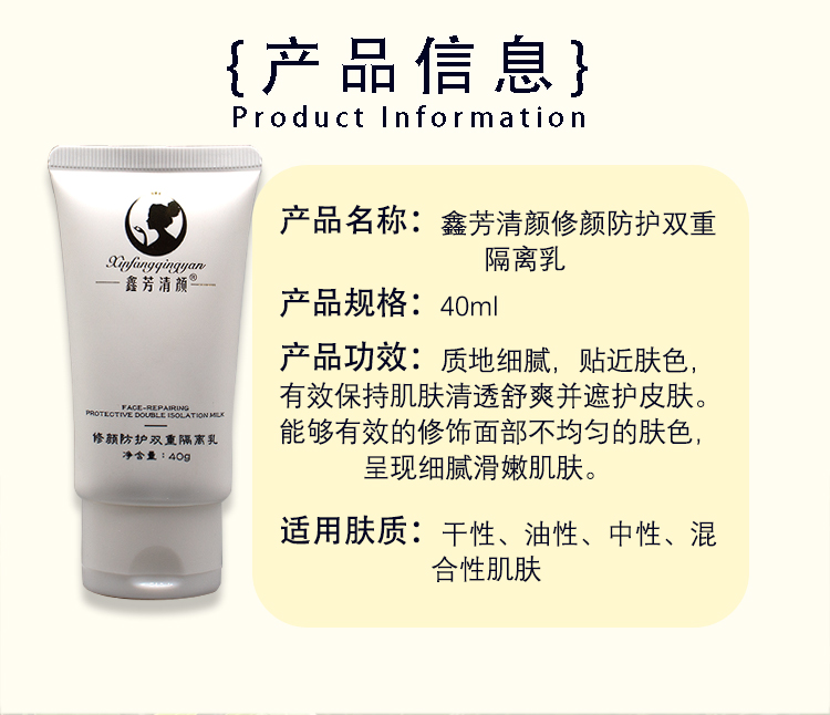 鑫芳清颜修颜防护双重隔离乳40ml美容院正品直发均匀肤色锁水保湿