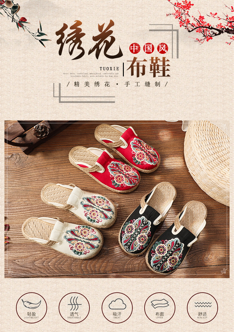 TC-5021创意民族风款 古风格绣花女鞋手工编织鞋子