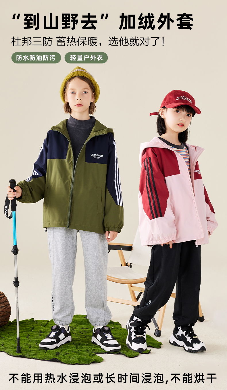 【2025反季抄底清仓】 龙之涵 亲子款“到山野去”加绒冲锋外套 防水防油防污防风 亲子款加绒保暖外套 婴幼儿A类标准