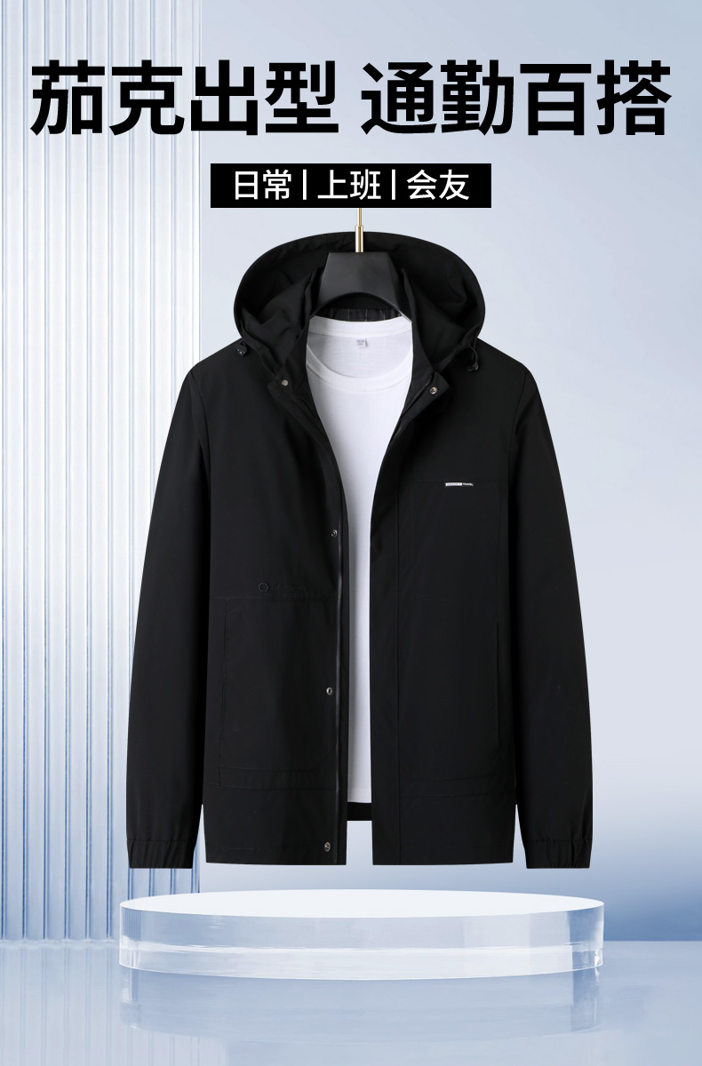 【可拆卸帽】【新款DSZ】大依优型大码男装连帽夹克加肥加大休闲夹克胖子宽松外套上衣户外
