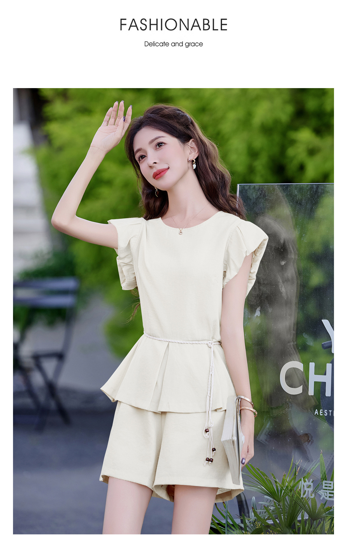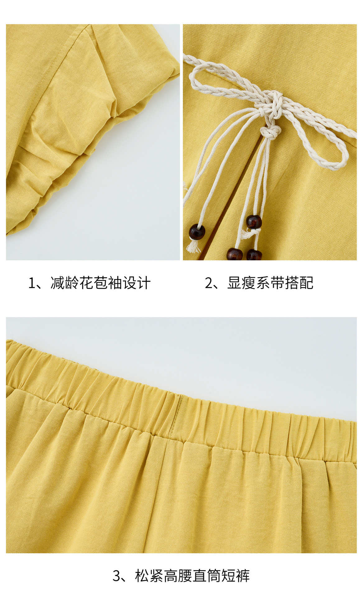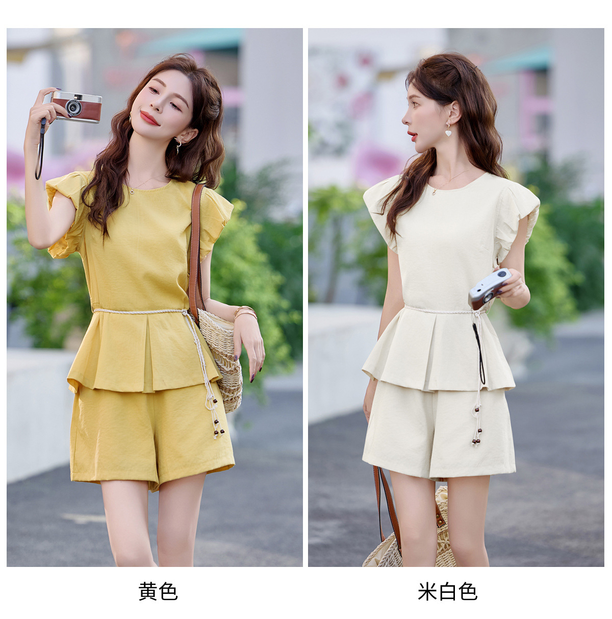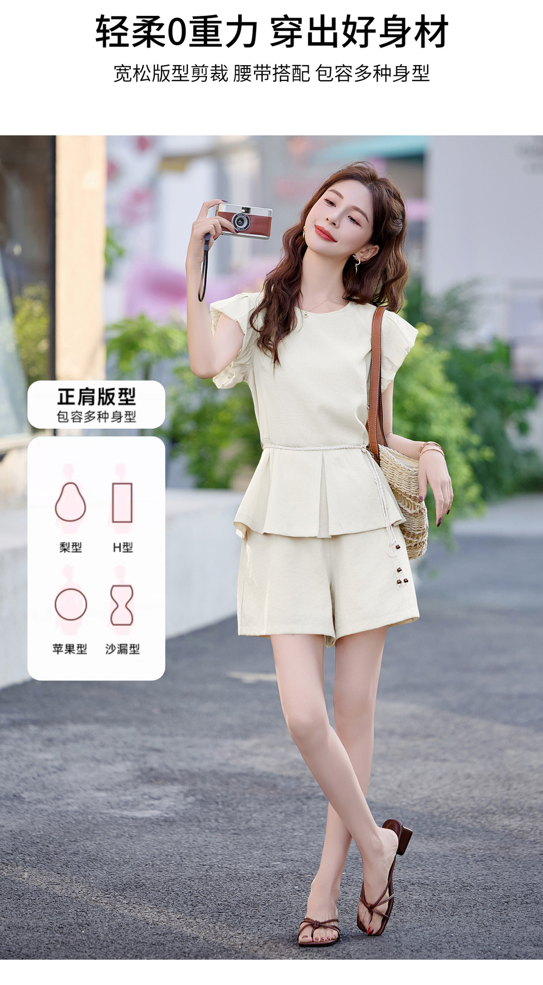 时尚棉质显瘦系带花苞袖,时尚短袖两件套装HR-987
