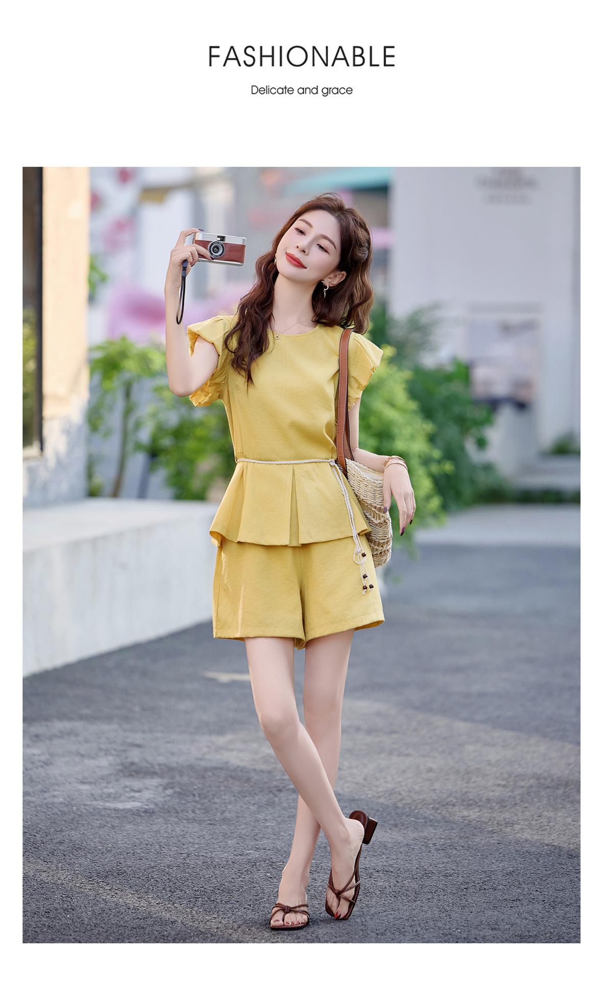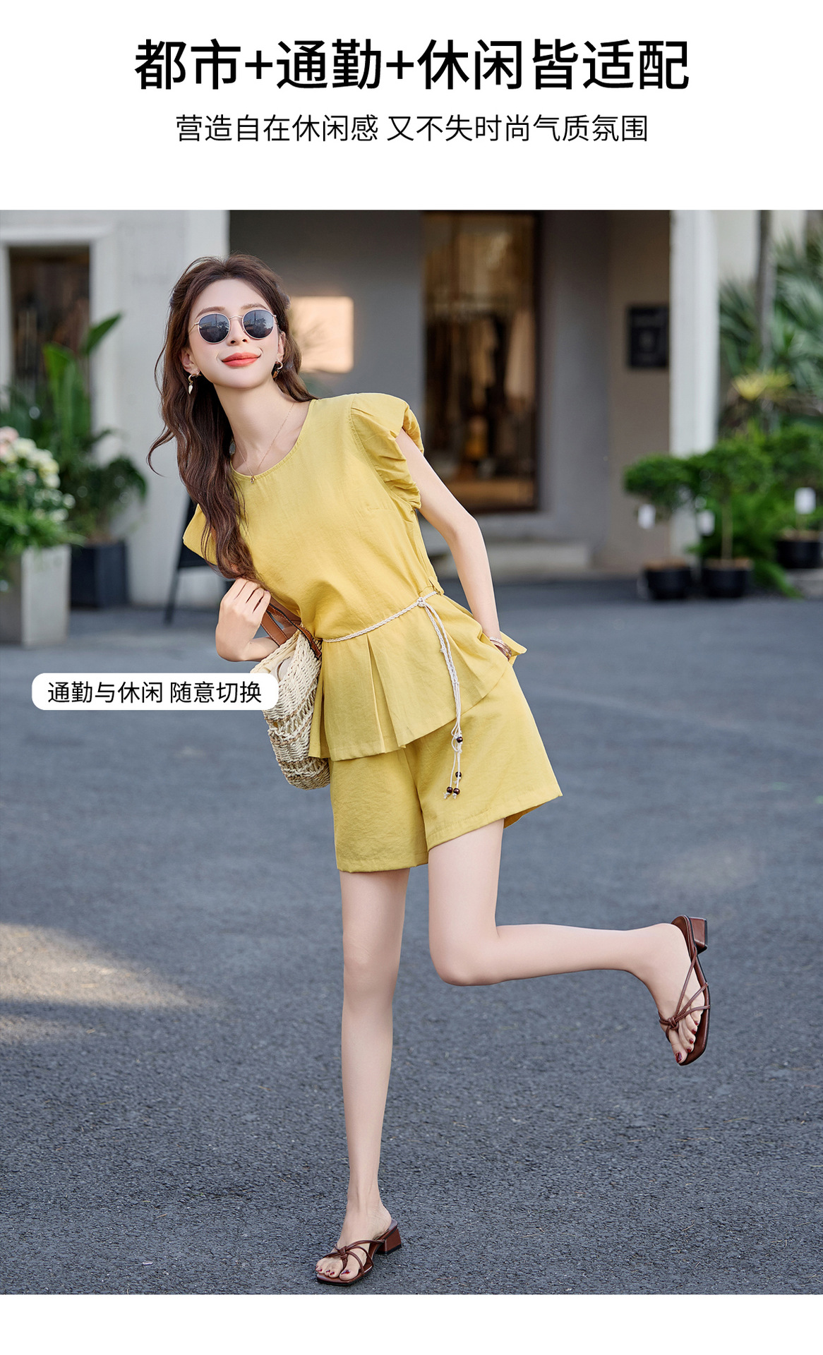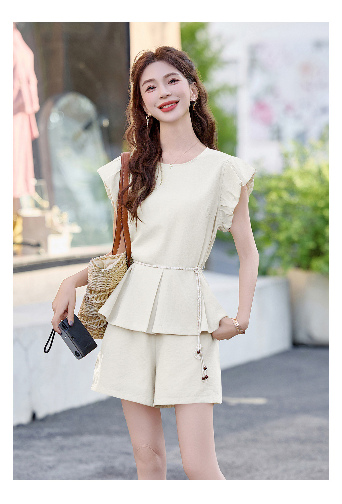时尚棉质显瘦系带花苞袖,时尚短袖两件套装HR-987