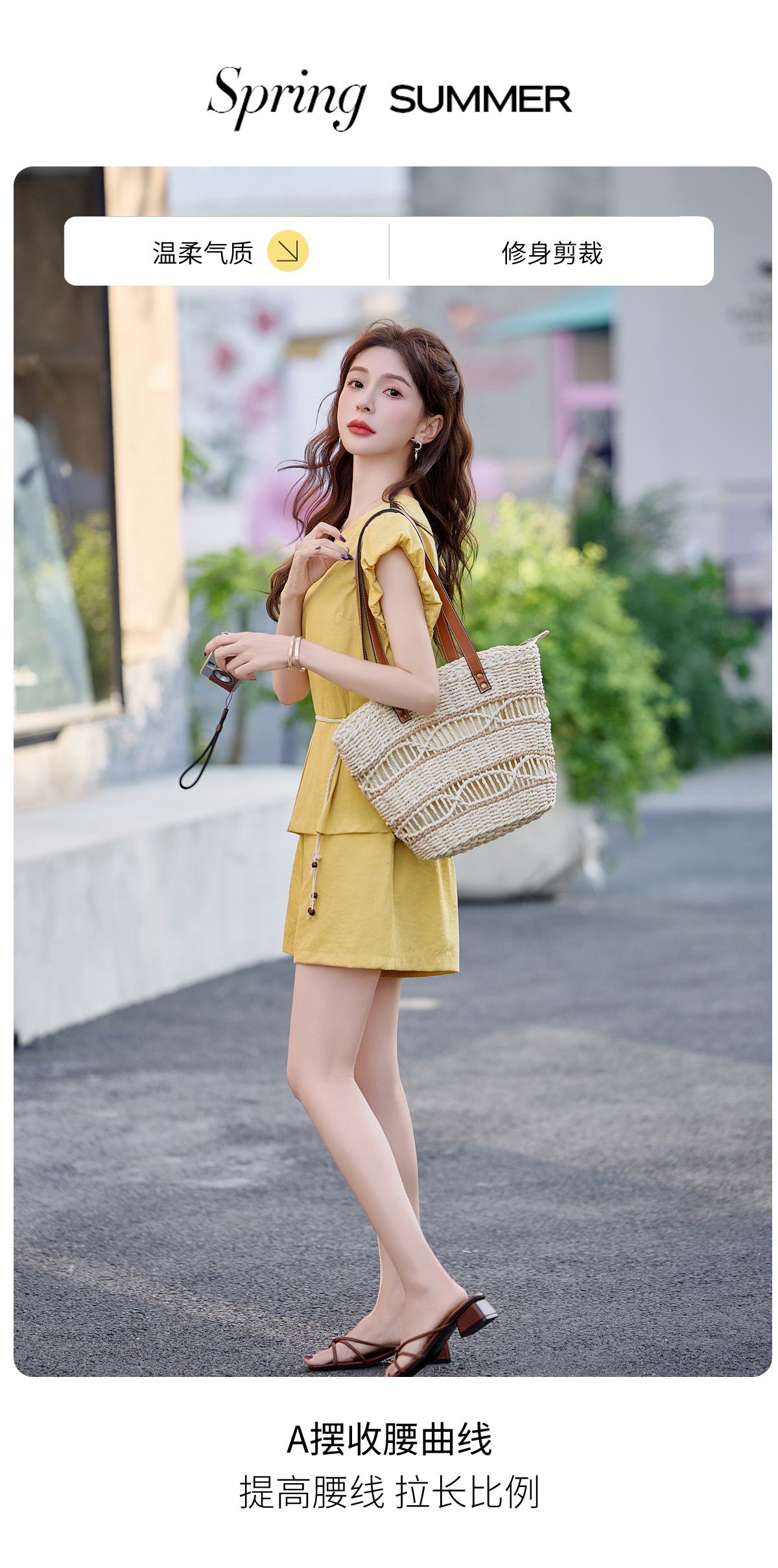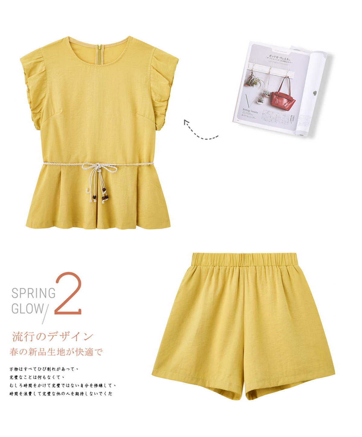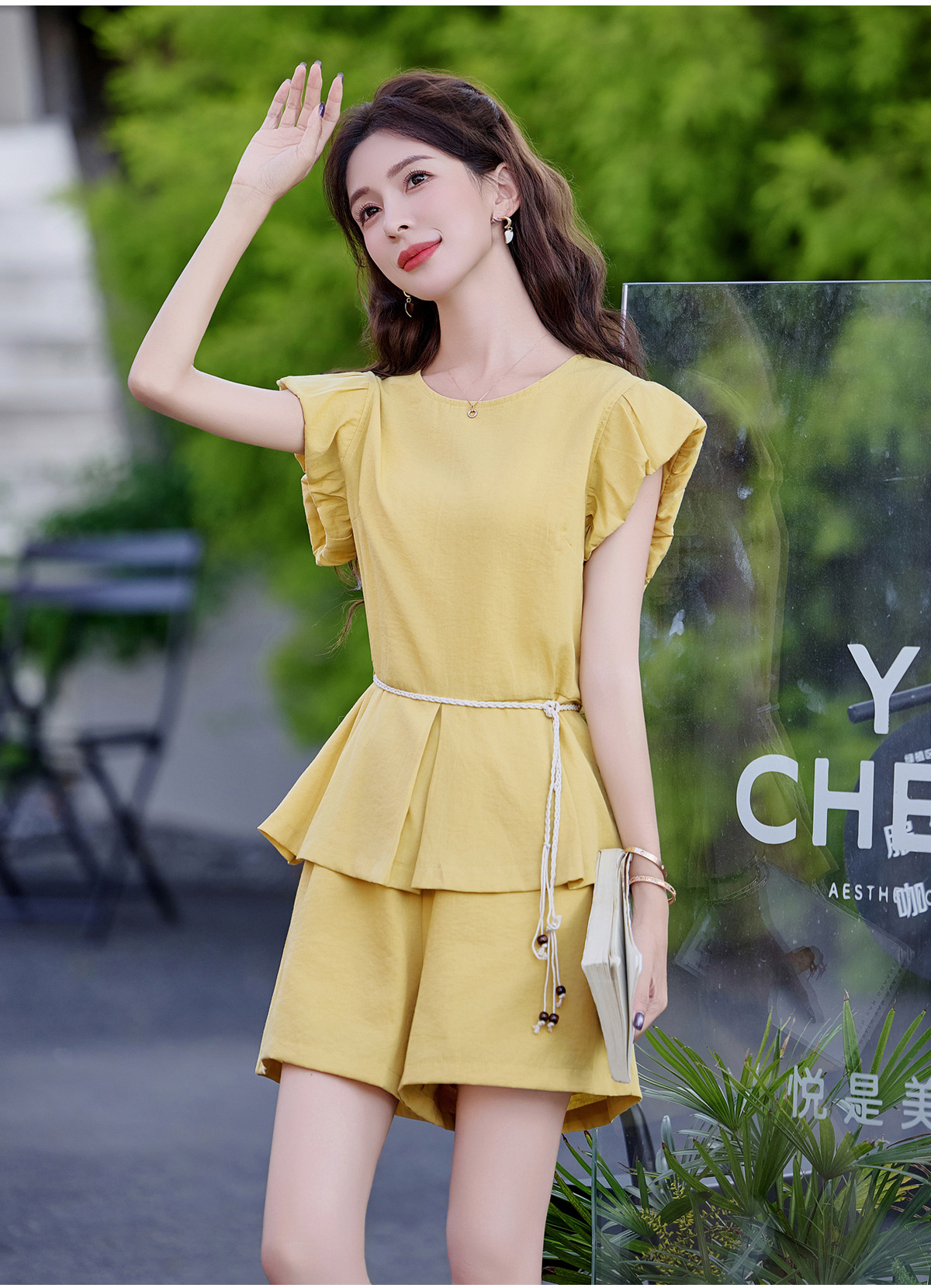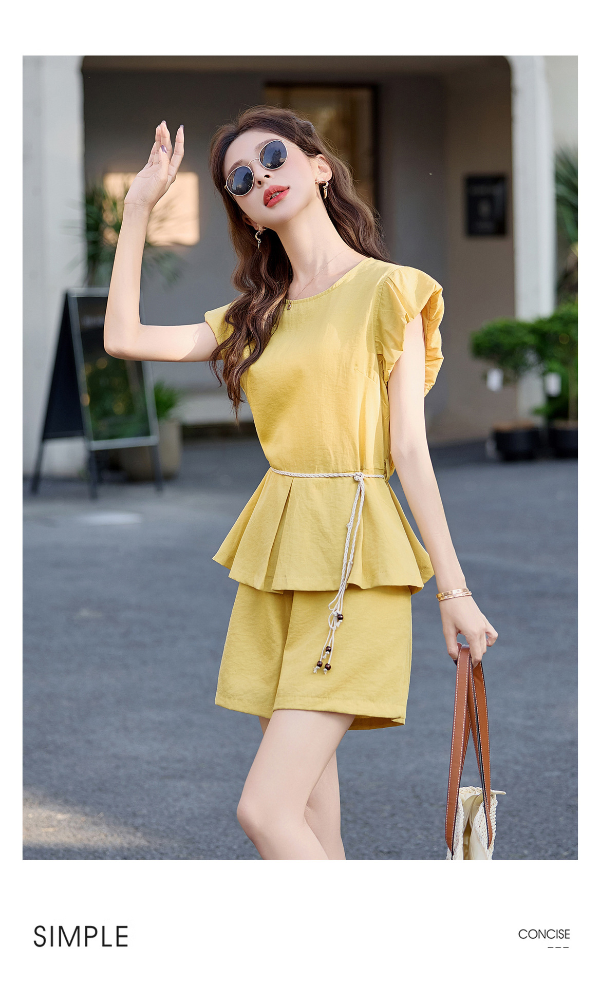 时尚棉质显瘦系带花苞袖,时尚短袖两件套装HR-987