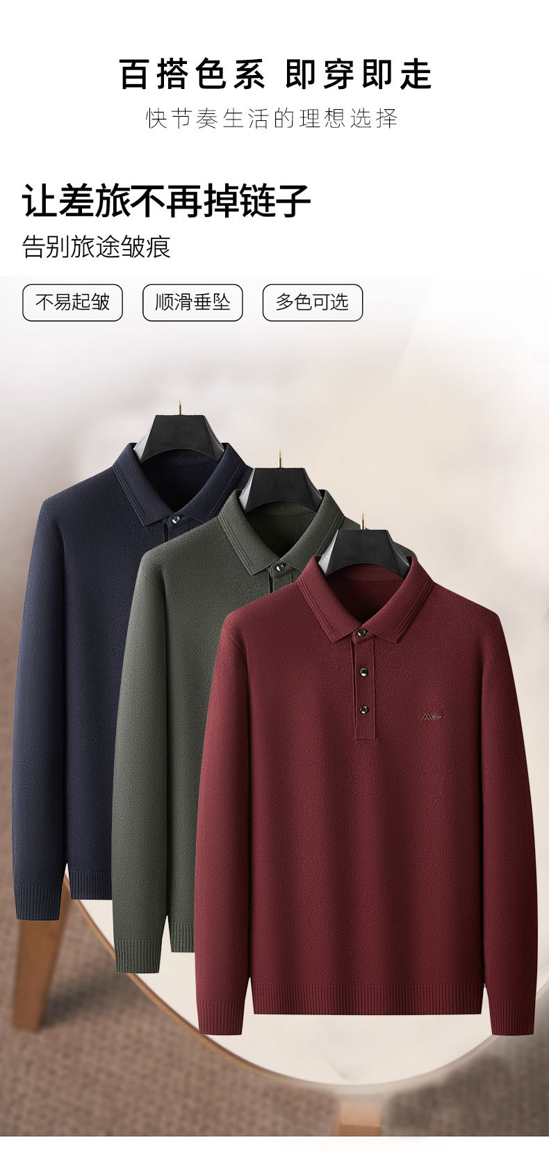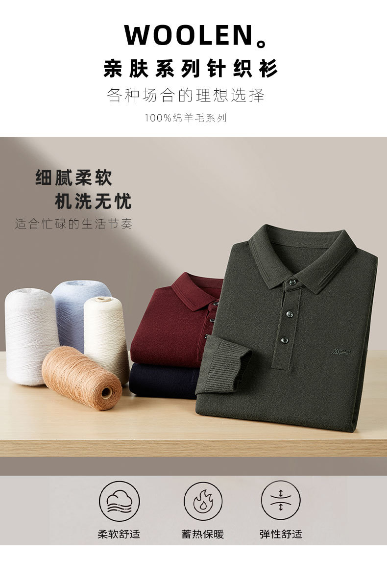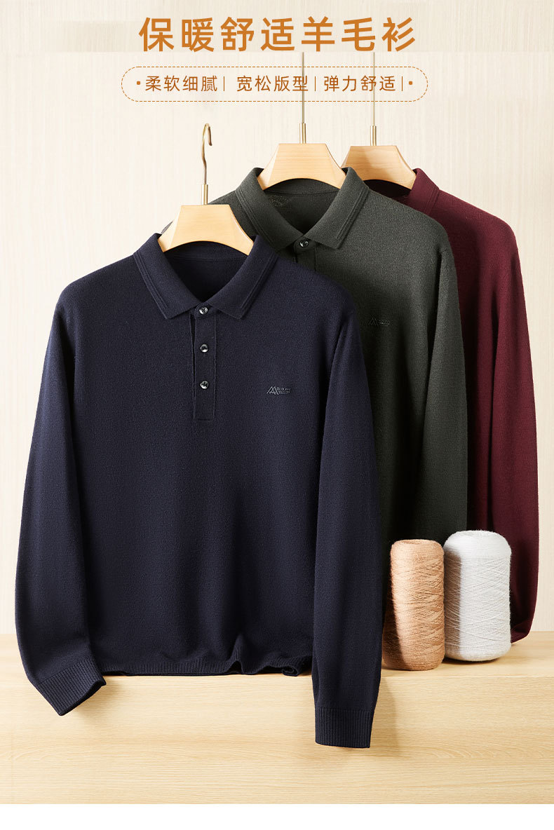 【DWP】【100%绵羊毛】大依优型秋季新款秋冬男士羊毛衫加肥加大码商务休闲宽松翻领针织打底衫毛衣