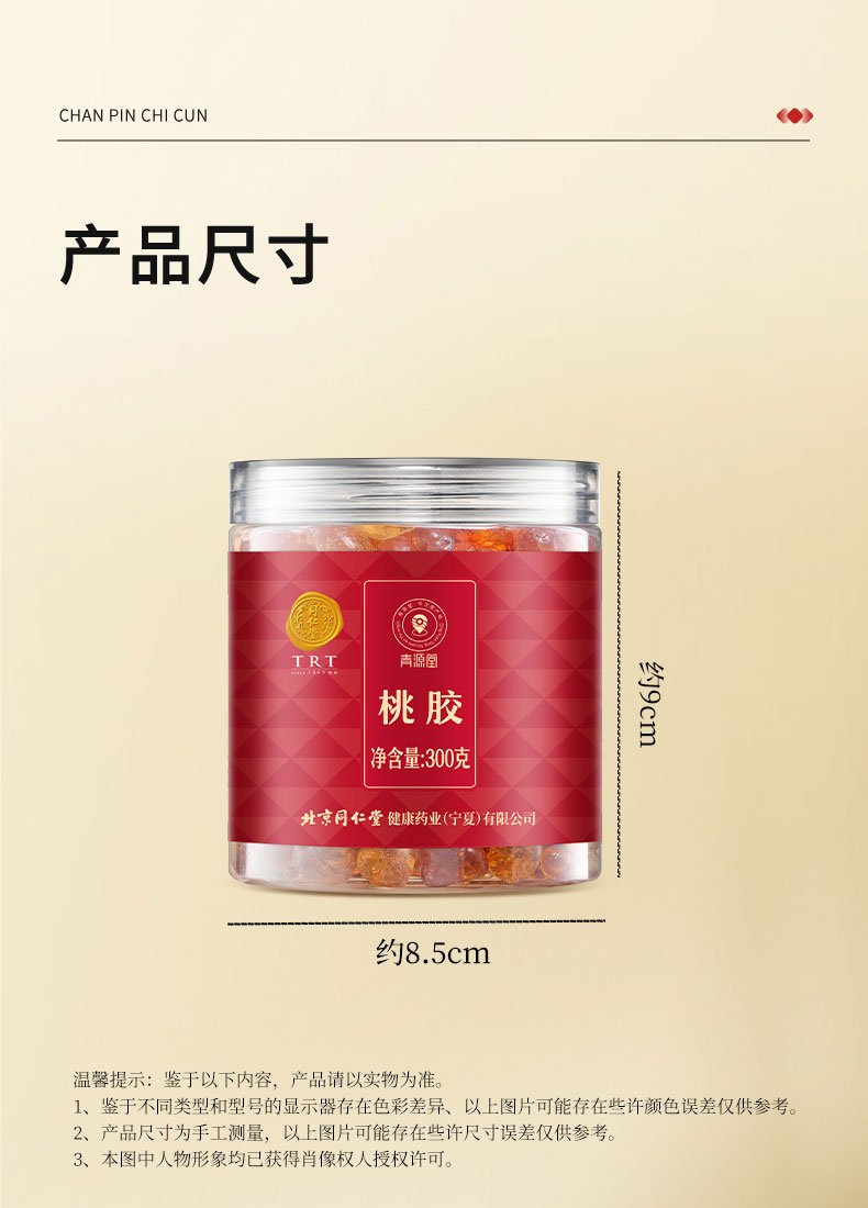 【正宗同仁堂品牌】北京同仁堂 青源堂 桃胶中颗粒300克 湖北老桃树桃胶 色泽自然杂质少 泡发率高SY
